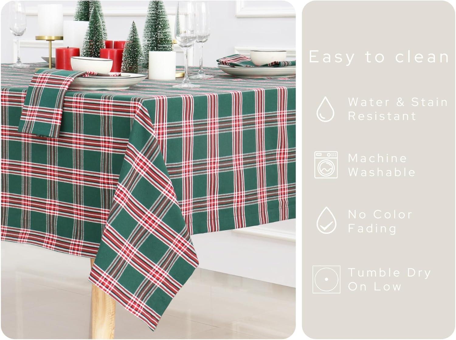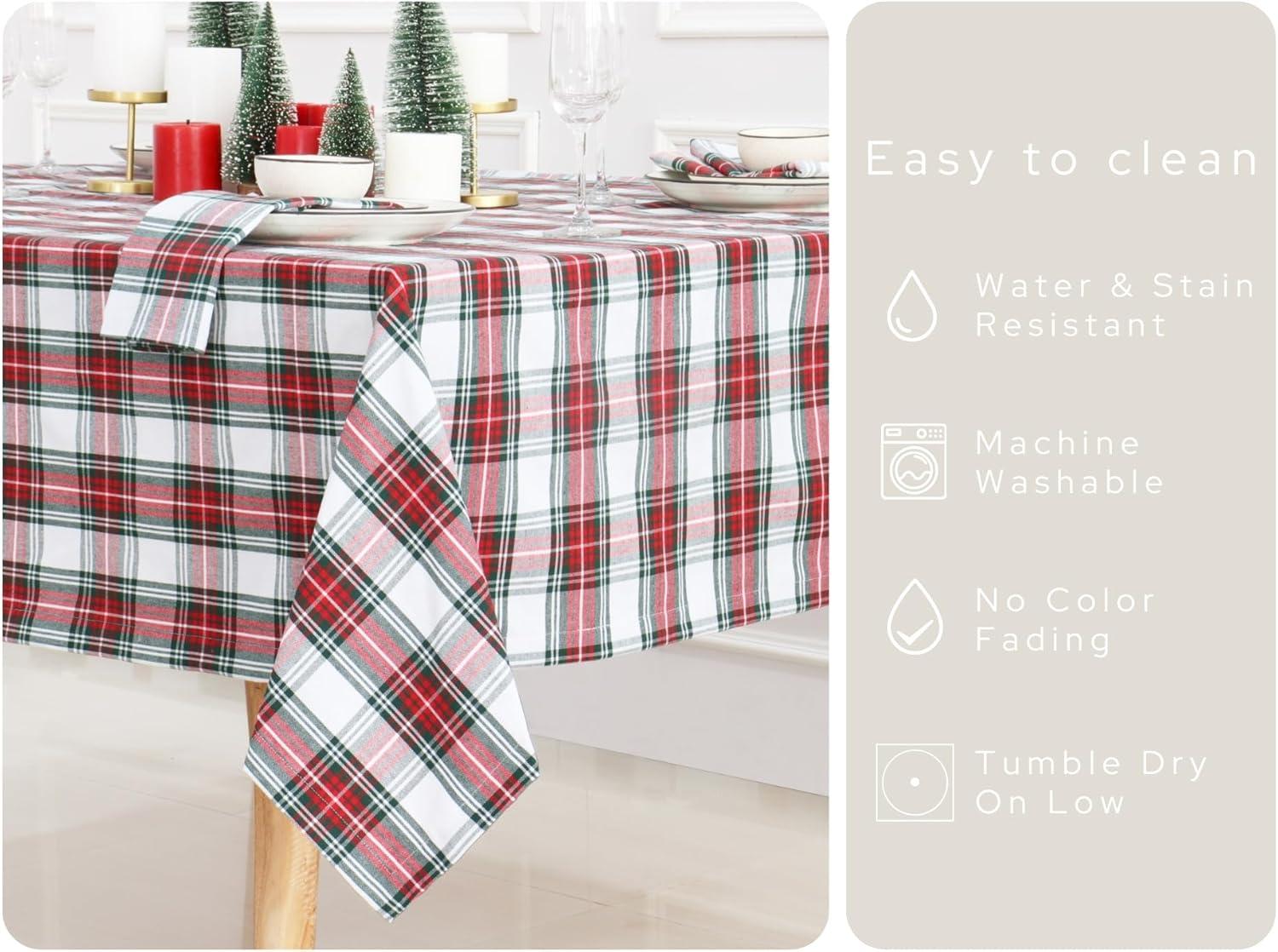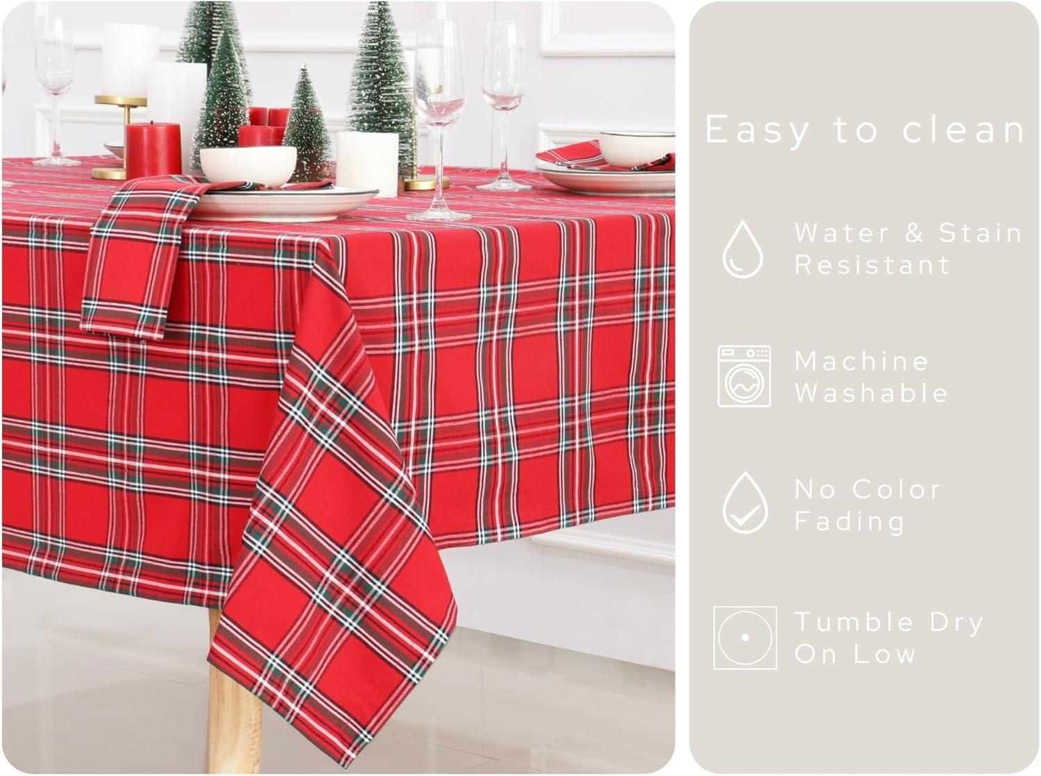 PurpleEssences 4th of July Buffalo Plaid Tablecloth – Water Resistant Wipeable Washable Checkered Table Cloth for Outdoor Picnic Dining – 52 x 52 Inch – Labor Day – Red Blue and White(Tartan Plaid – Red/Green)