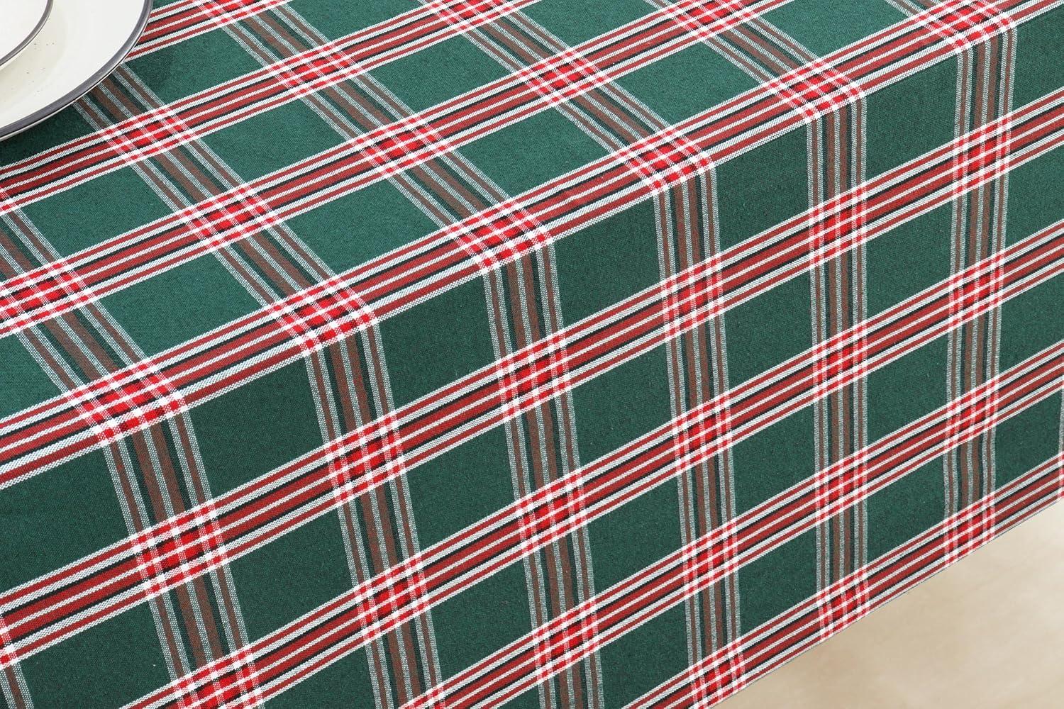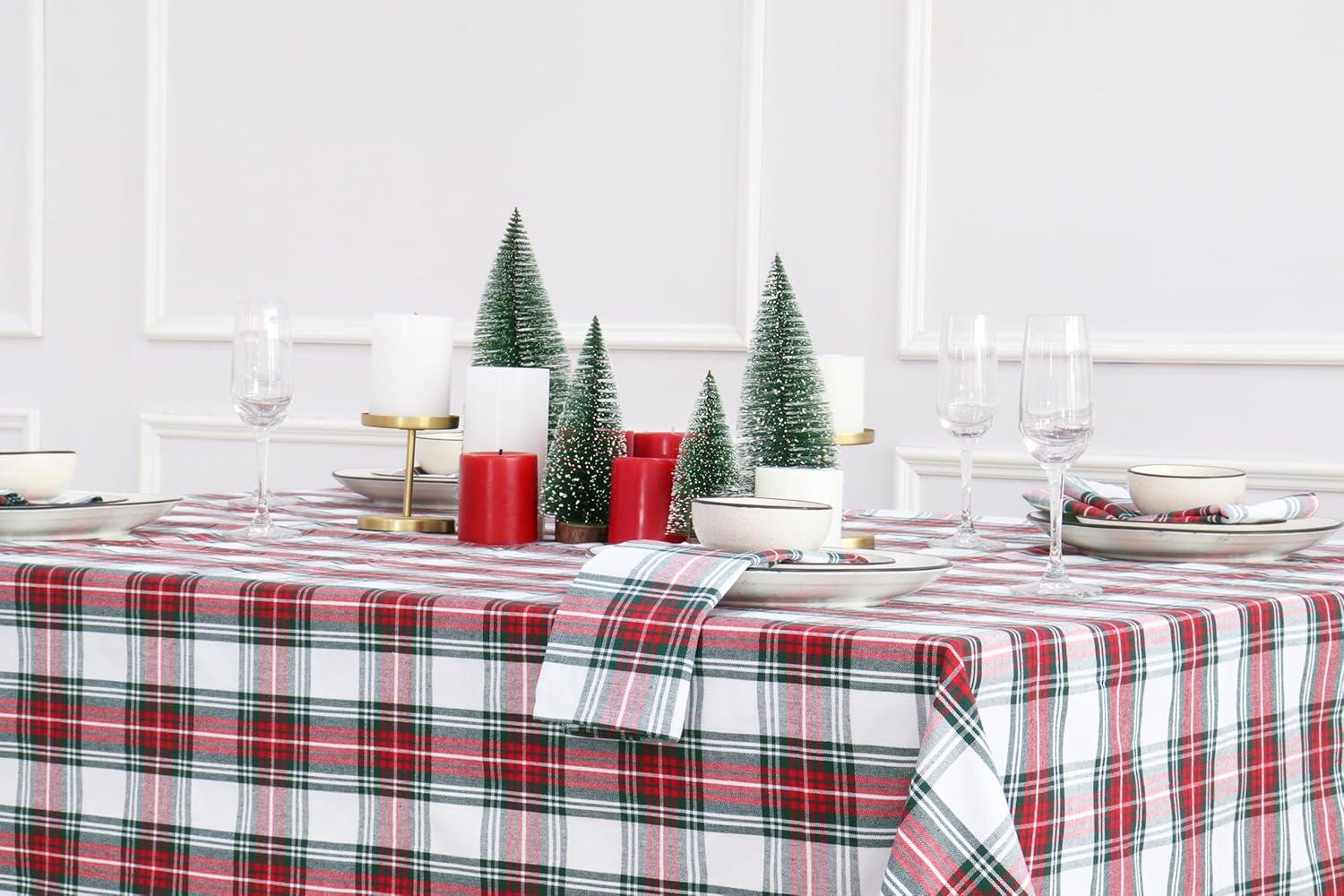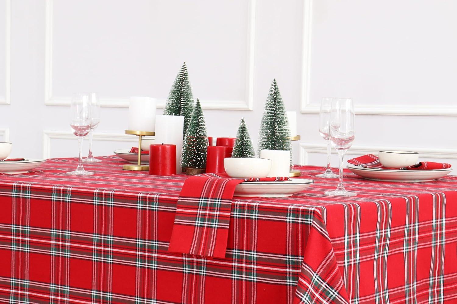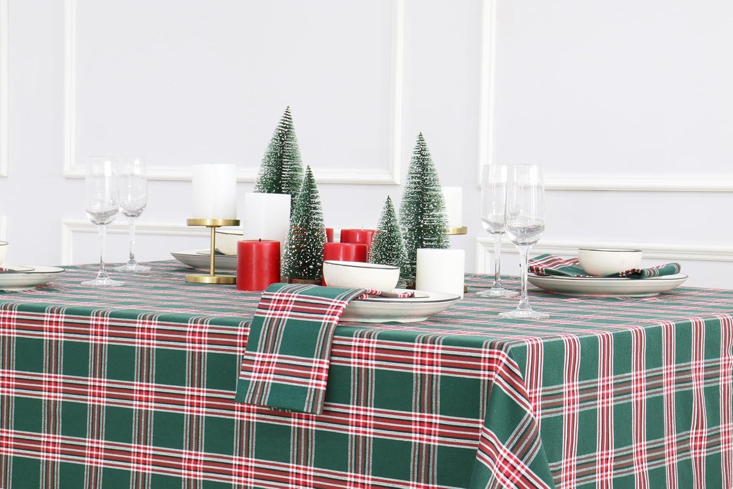 PurpleEssences 4th of July Buffalo Plaid Tablecloth – Water Resistant Wipeable Washable Checkered Table Cloth for Outdoor Picnic Dining – 52 x 52 Inch – Labor Day – Red Blue and White(Tartan Plaid – Red/Green)