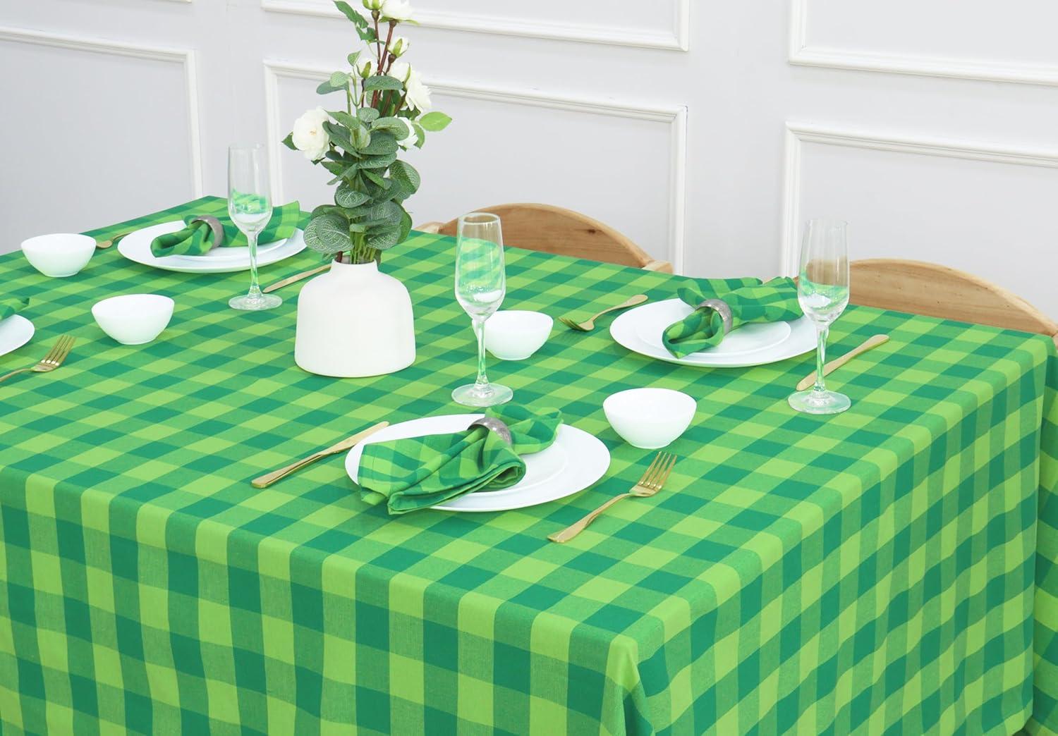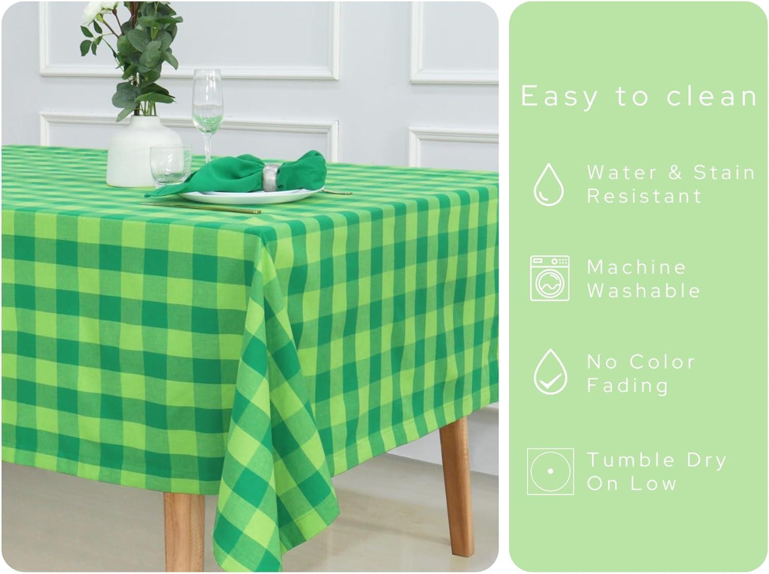 PurpleEssences 4th of July Buffalo Plaid Tablecloth – Water Resistant Wipeable Washable Checkered Table Cloth for Outdoor Picnic Dining – 52 x 52 Inch – Labor Day – Red Blue and White(Buffalo Plaid – St Patricks Green)