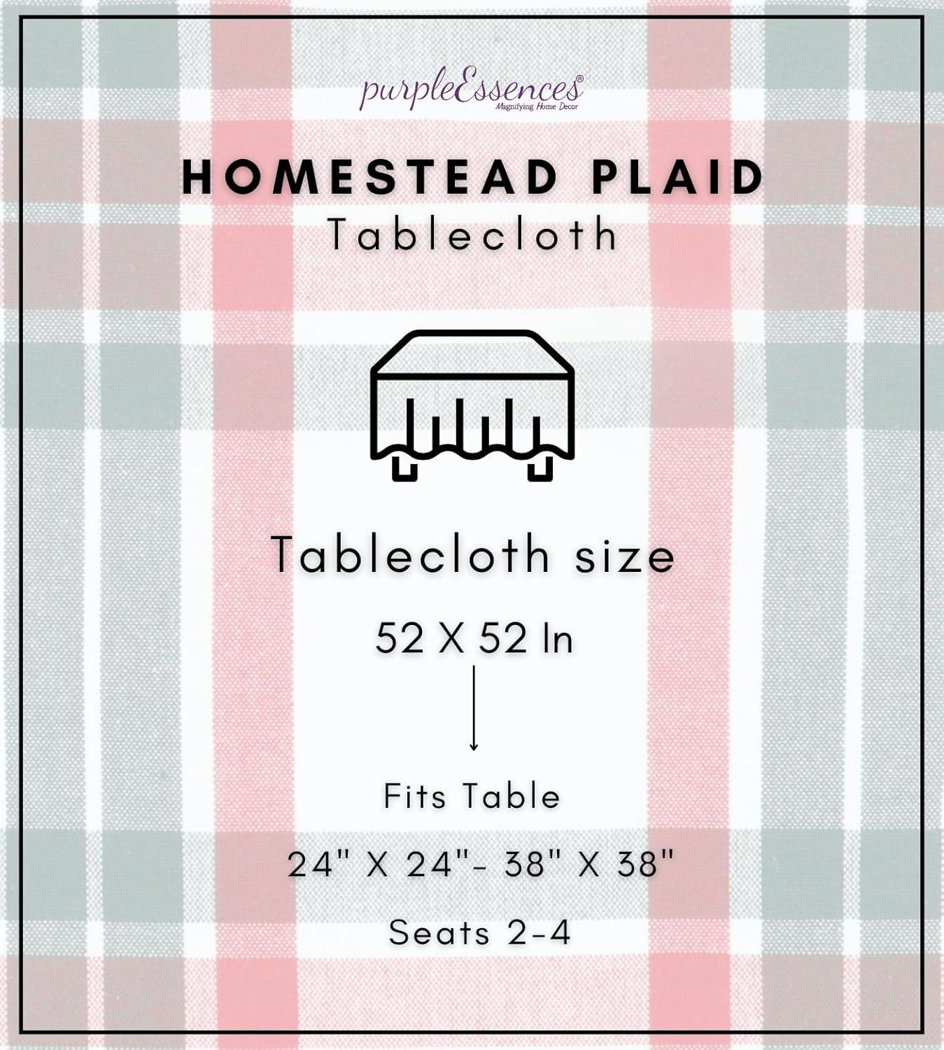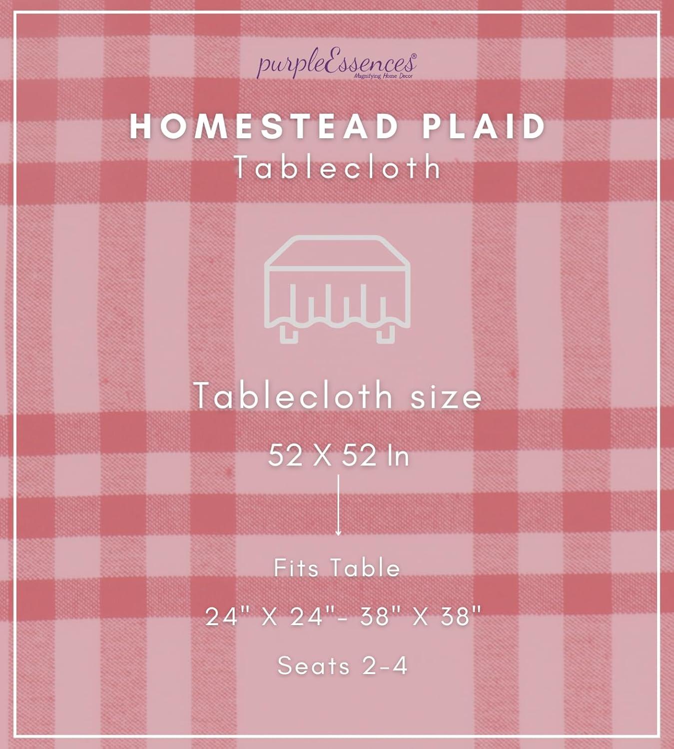 PurpleEssences 4th of July Buffalo Plaid Tablecloth – Water Resistant Wipeable Washable Checkered Table Cloth for Outdoor Picnic Dining – 52 x 52 Inch – Labor Day – Red Blue and White(Homestead Plaid – Red/Green/White)