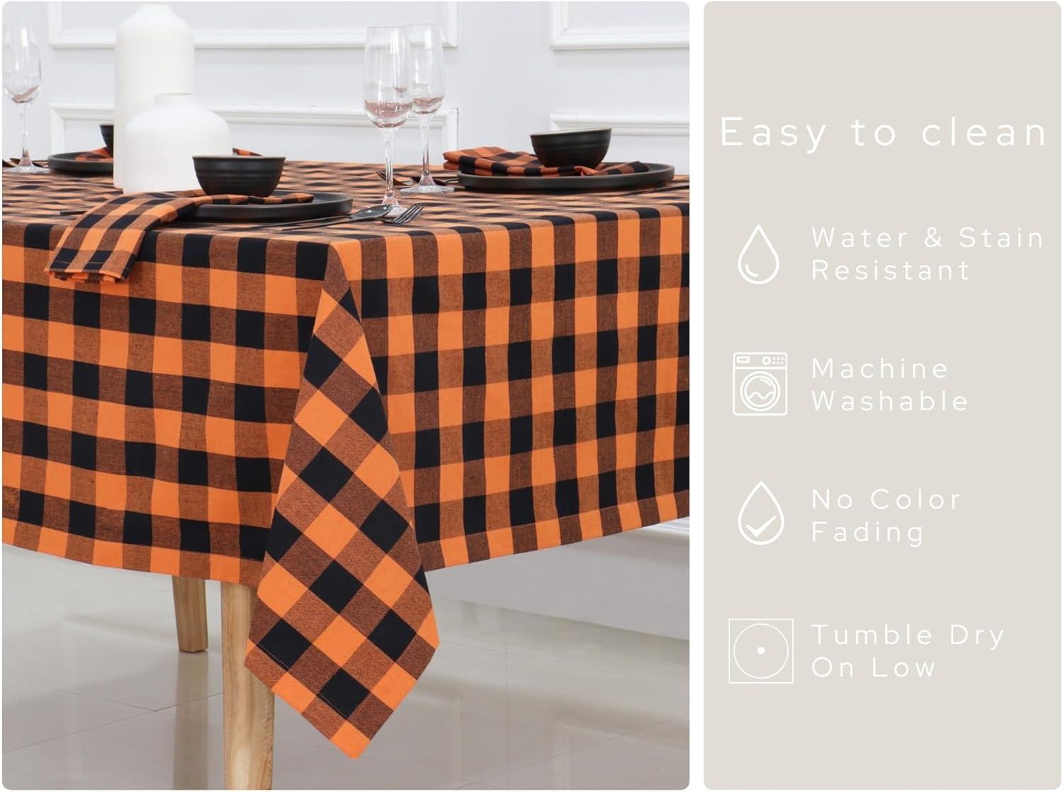 PurpleEssences 4th of July Buffalo Plaid Tablecloth – Water Resistant Wipeable Washable Checkered Table Cloth for Outdoor Picnic Dining – 60 x 120 Inch – Labor Day – Red Blue and White(Buffalo Plaid – Orange/Black)