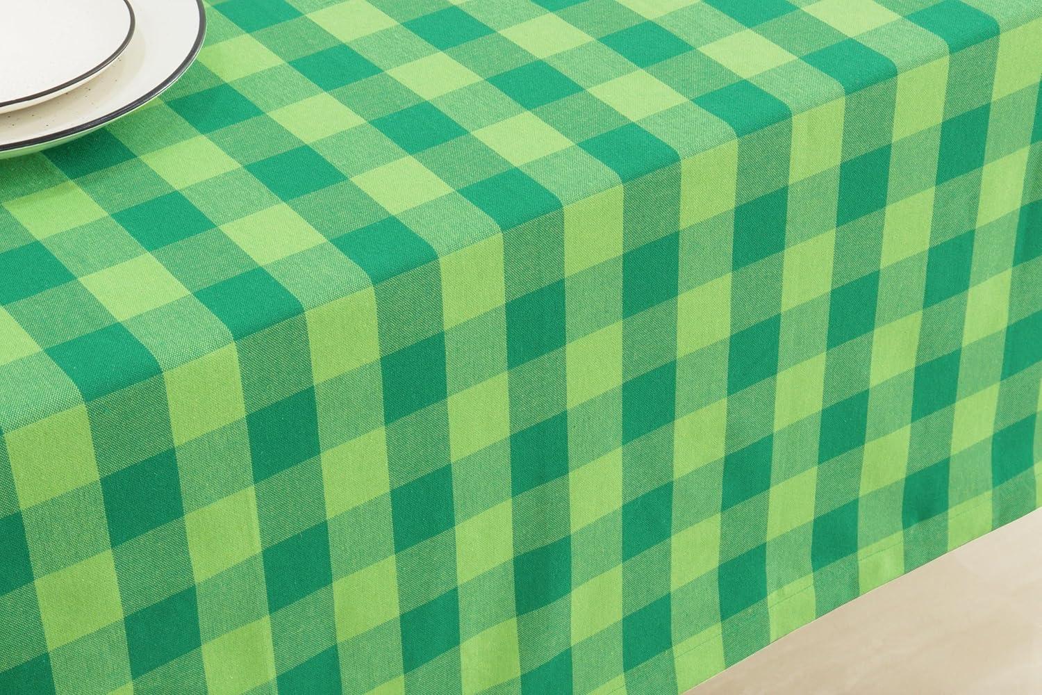 PurpleEssences 4th of July Buffalo Plaid Tablecloth – Water Resistant Wipeable Washable Checkered Table Cloth for Outdoor Picnic Dining – 52 x 52 Inch – Labor Day – Red Blue and White(Tartan Plaid – Green)