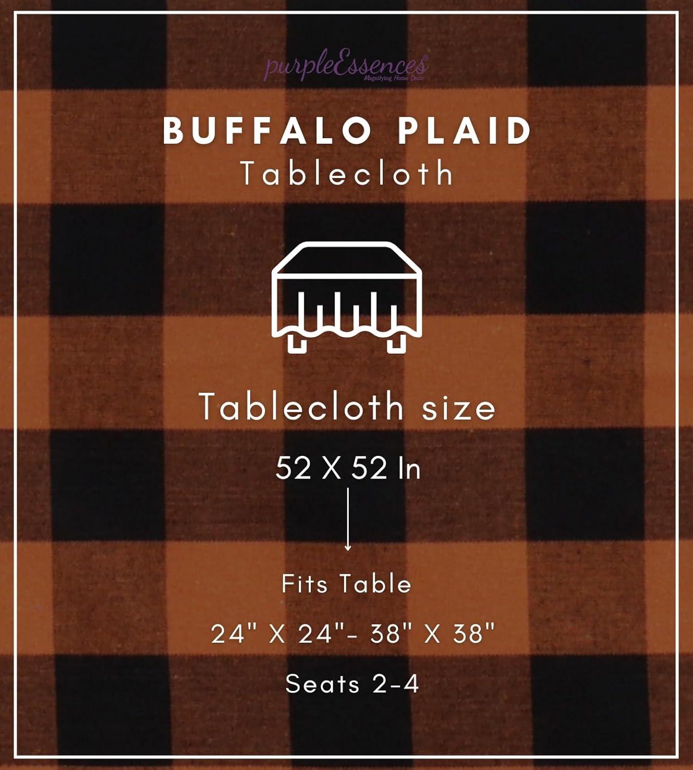 PurpleEssences 4th of July Buffalo Plaid Tablecloth – Water Resistant Wipeable Washable Checkered Table Cloth for Outdoor Picnic Dining – 52 x 52 Inch – Labor Day – Red Blue and White(Buffalo Plaid – Orange/Black)