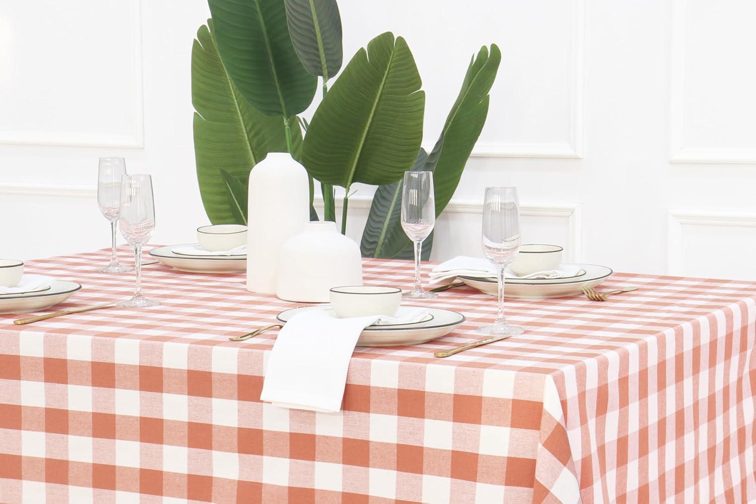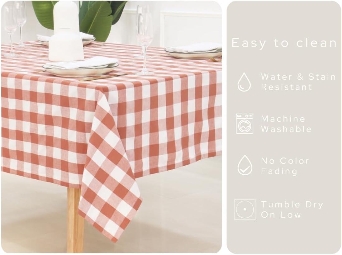 PurpleEssences 4th of July Buffalo Plaid Tablecloth – Water Resistant Wipeable Washable Checkered Table Cloth for Outdoor Picnic Dining – 52 x 52 Inch – Labor Day – Red Blue and White(Buffalo Plaid – Rust/Ivory)