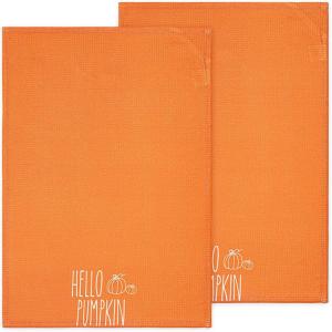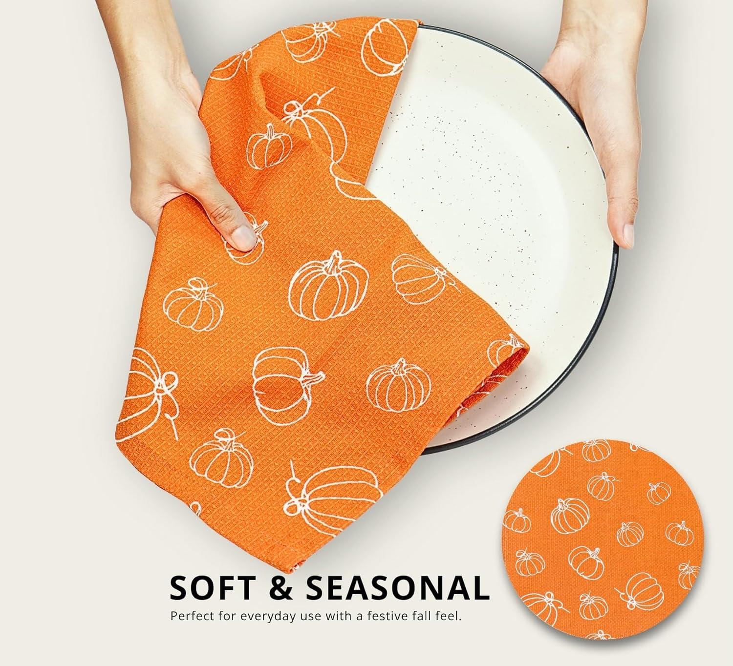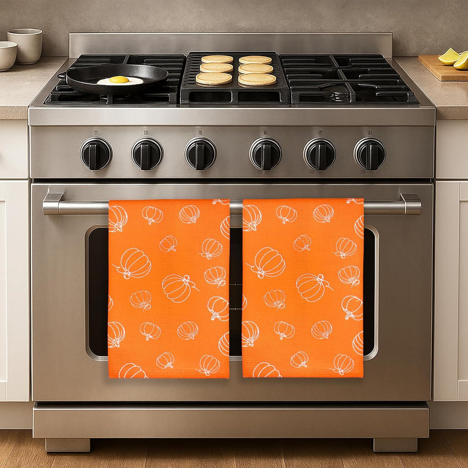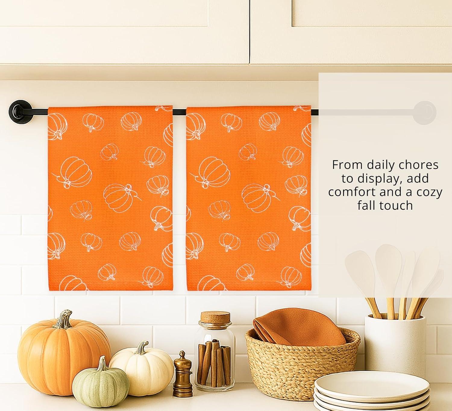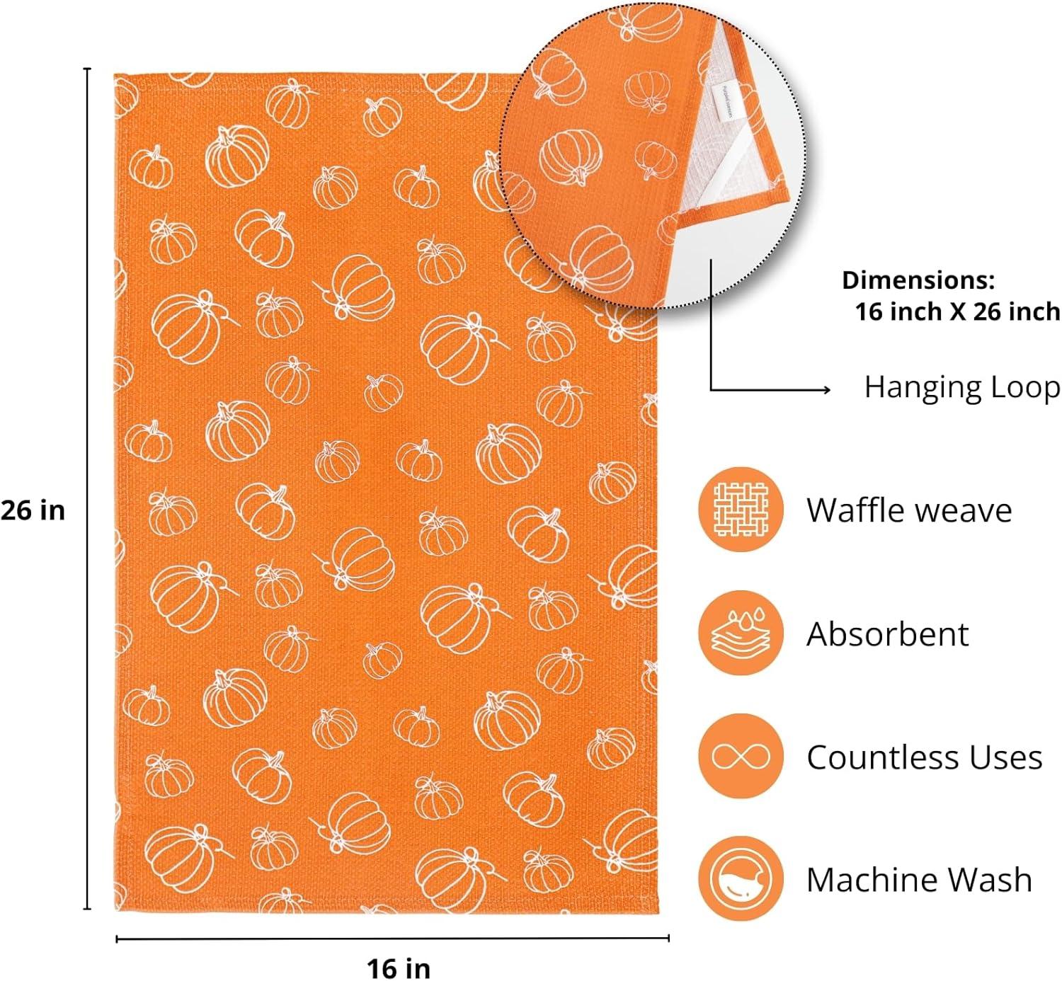 PurpleEssences Pumpkin Cotton Kitchen Towels Set of 2 – Absorbent Dish Towels Set Tea Towels Bar Towels Multi Purpose Kitchen Linen, Drying Dish Hand Towels 16 x 26 Inch – Pumpkin Patch(Pumpkin Patch)