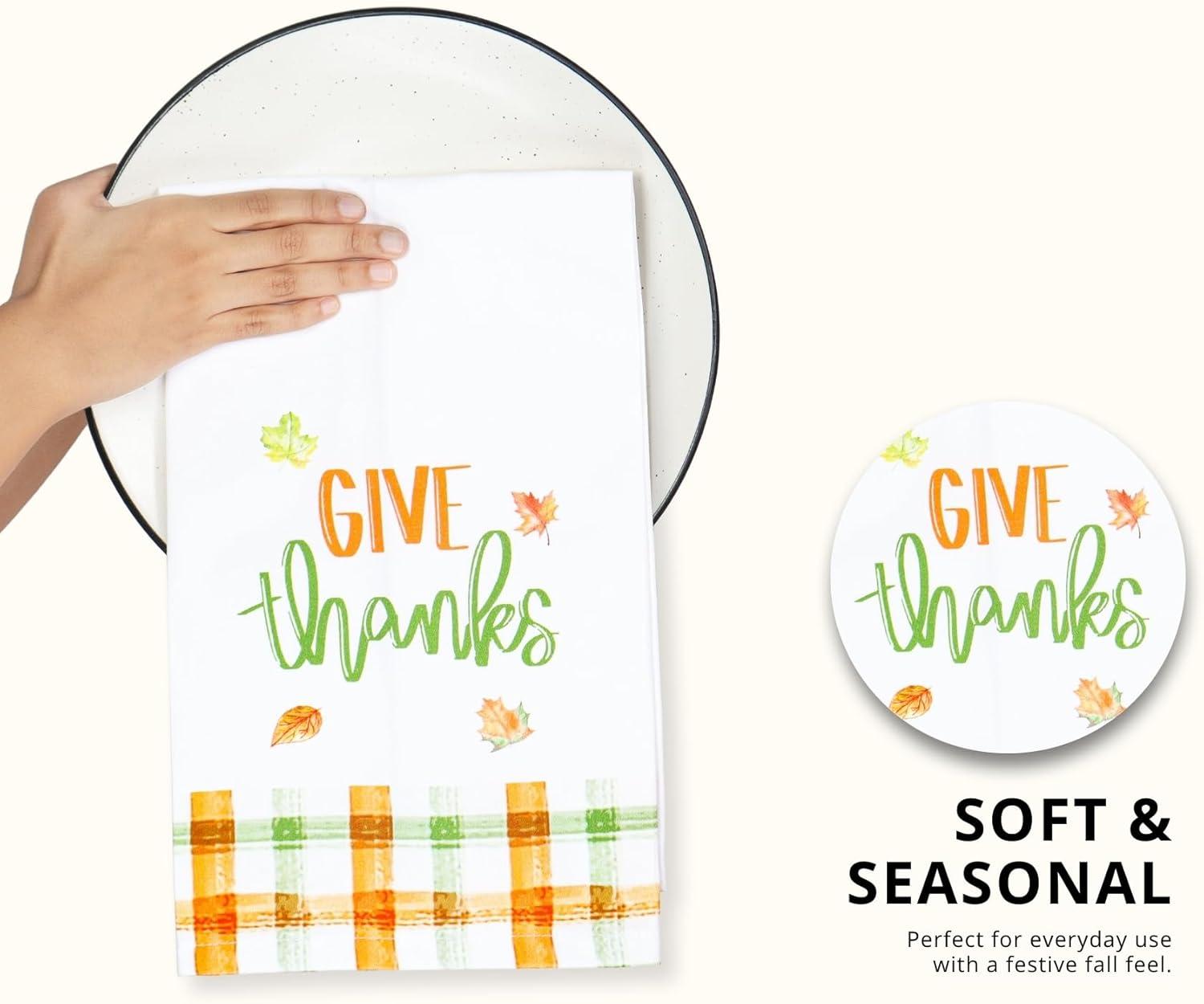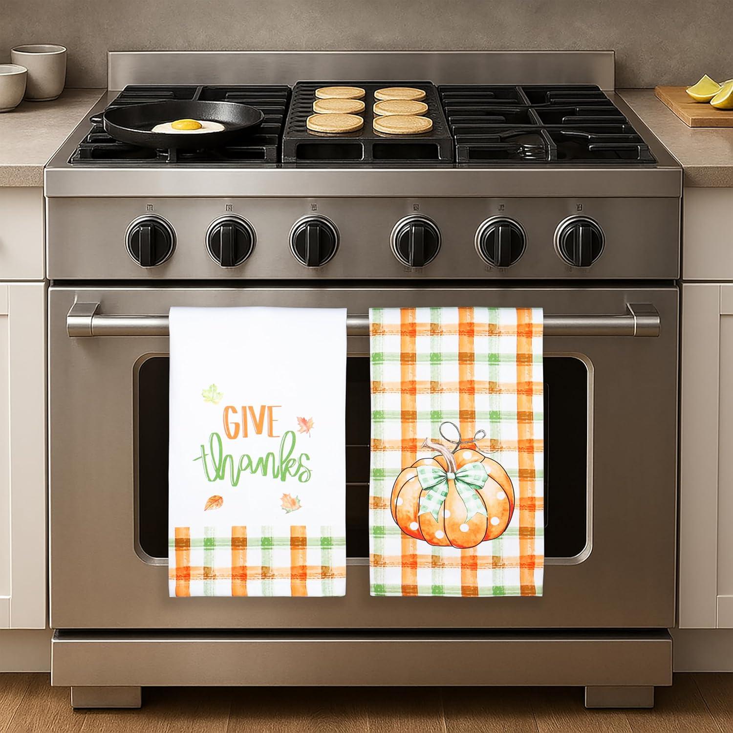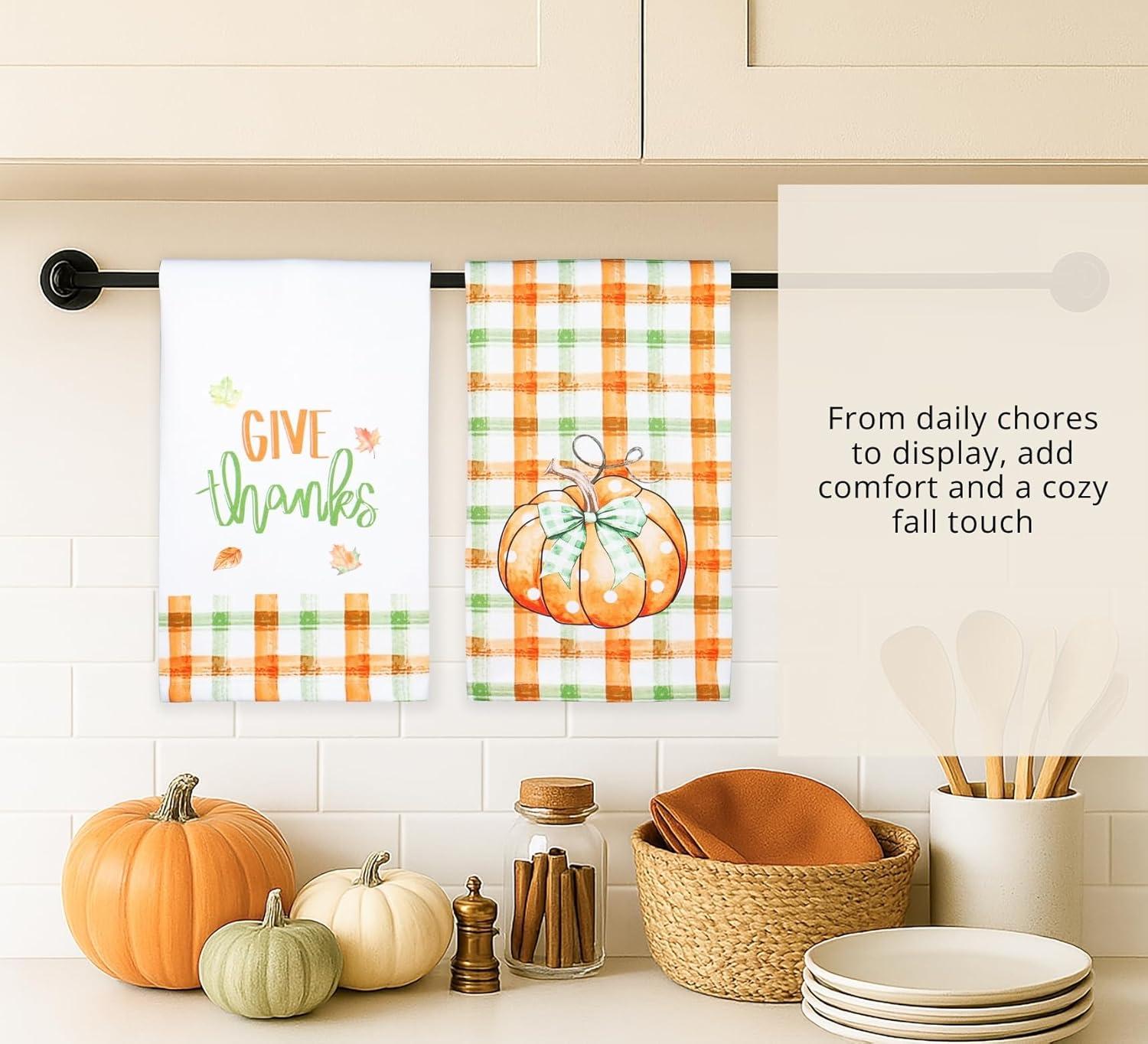 PurpleEssences Pumpkin Cotton Kitchen Towels Set of 2 – Absorbent Dish Towels Set Tea Towels Bar Towels Multi Purpose Kitchen Linen, Drying Dish Hand Towels 16 x 26 Inch – Vibrant Give Thanks(Vibrant Give Thanks)