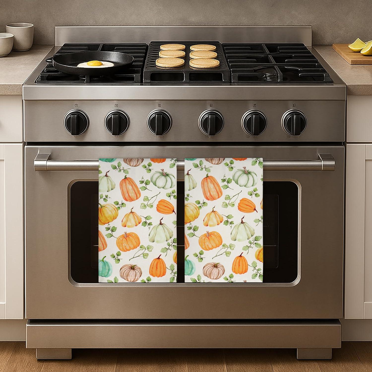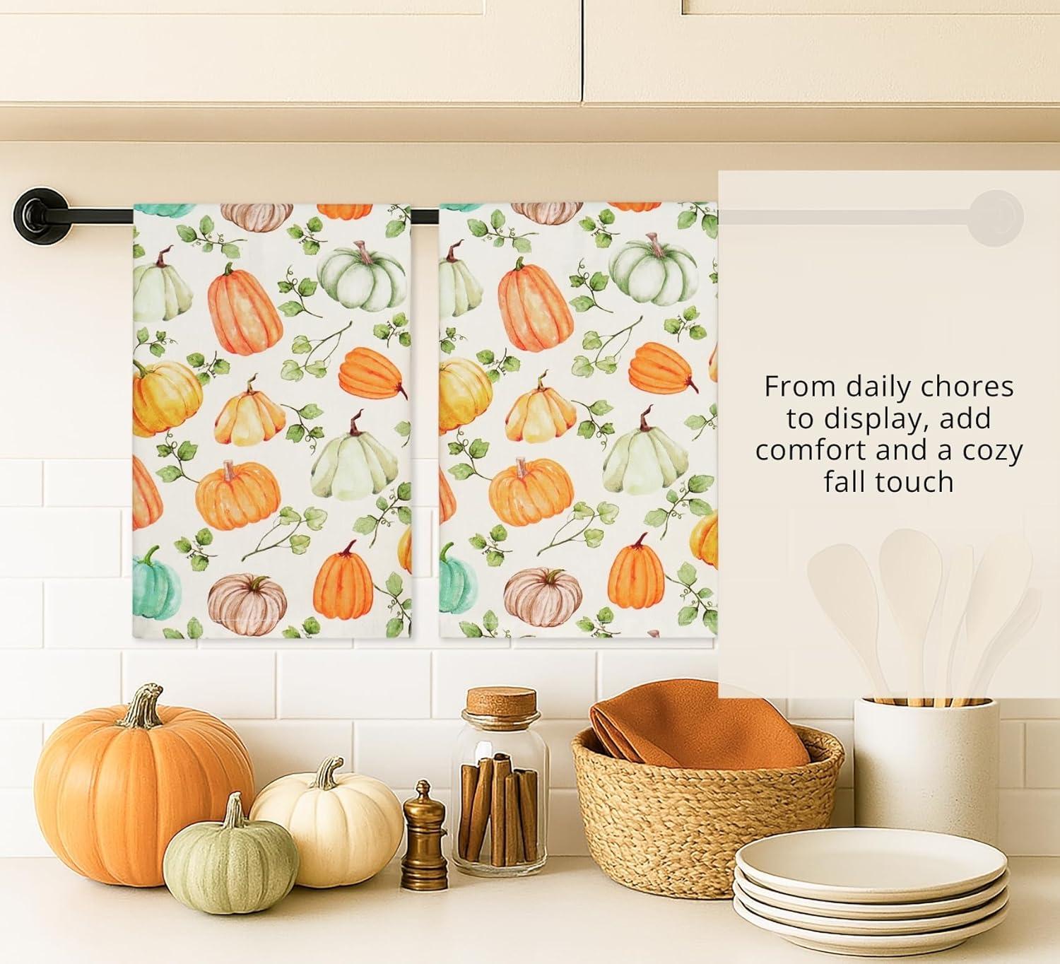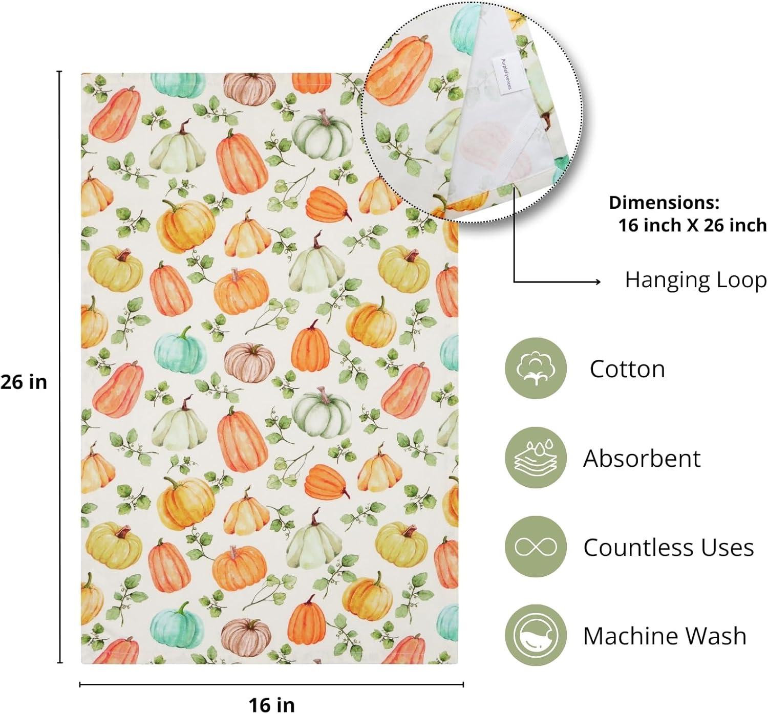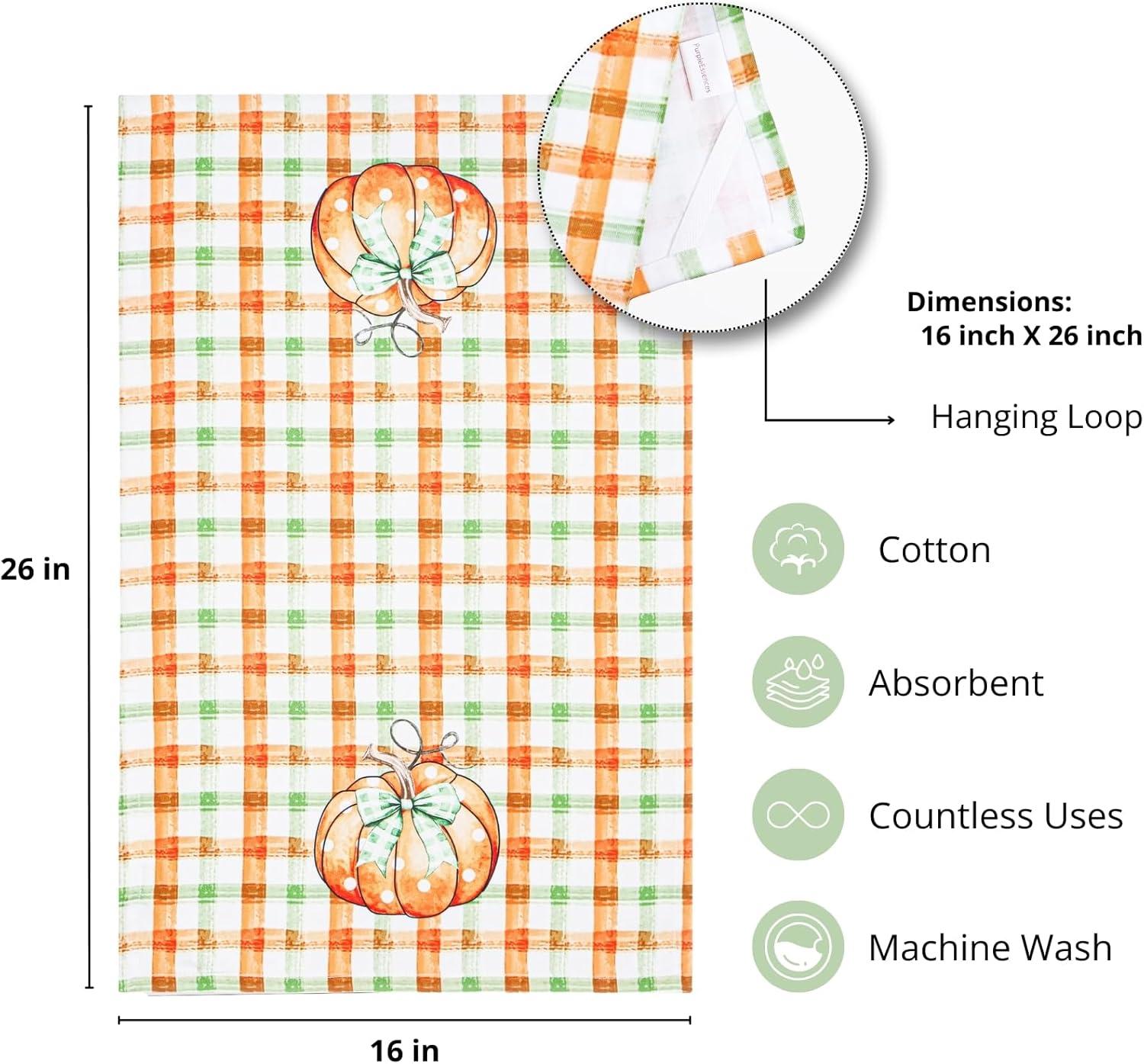 PurpleEssences Pumpkin Cotton Kitchen Towels Set of 2 – Absorbent Dish Towels Set Tea Towels Bar Towels Multi Purpose Kitchen Linen, Drying Dish Hand Towels 16 x 26 Inch – Pumpkin Patch(Vibrant Give Thanks)