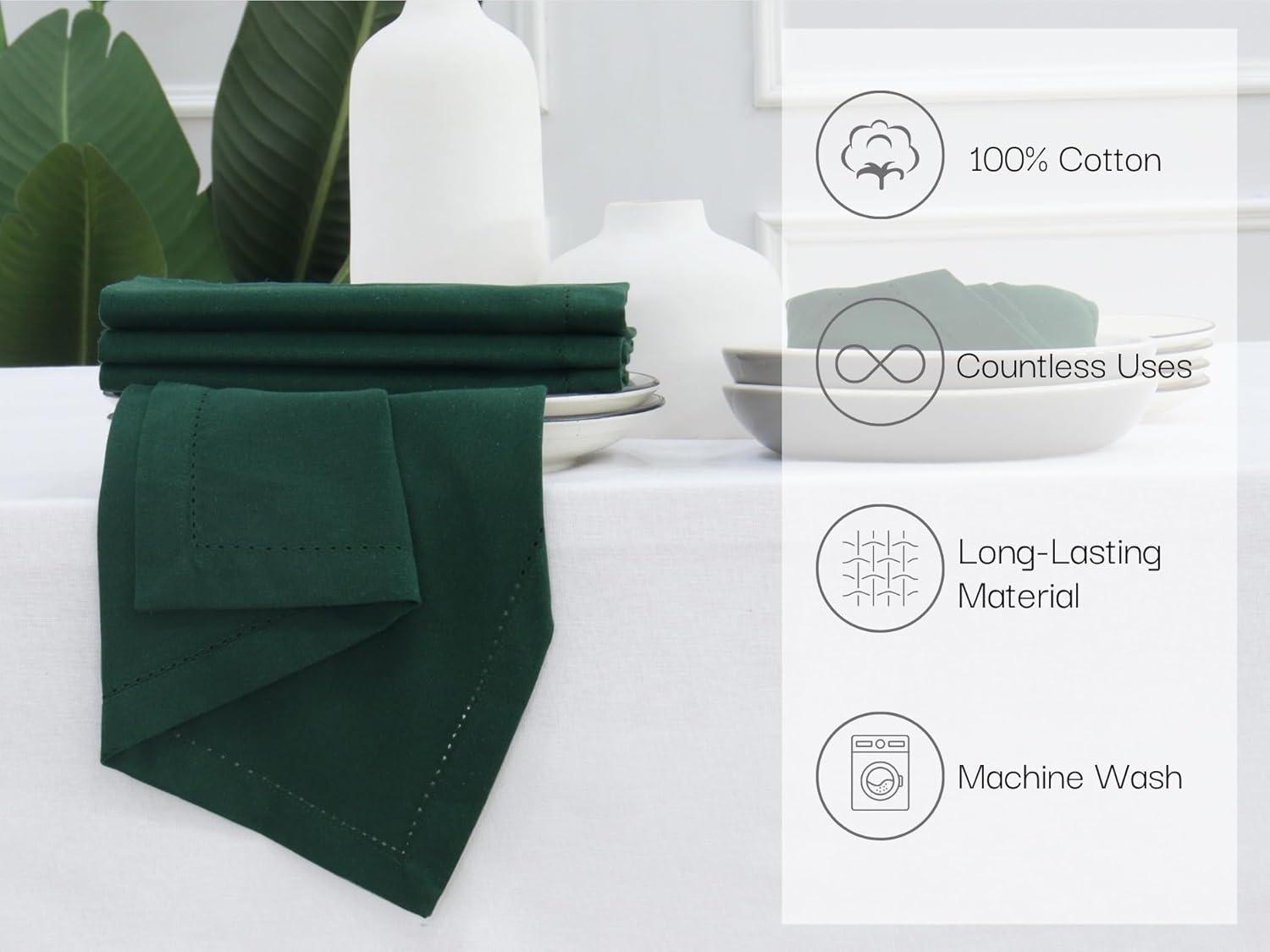 PurpleEssences Hemstitch Cloth Napkins 18 x 18 Inch – Set of 12 and Scalloped Embroidered Edge Napkin – 18″x18″ Set of 4 – Forest Green