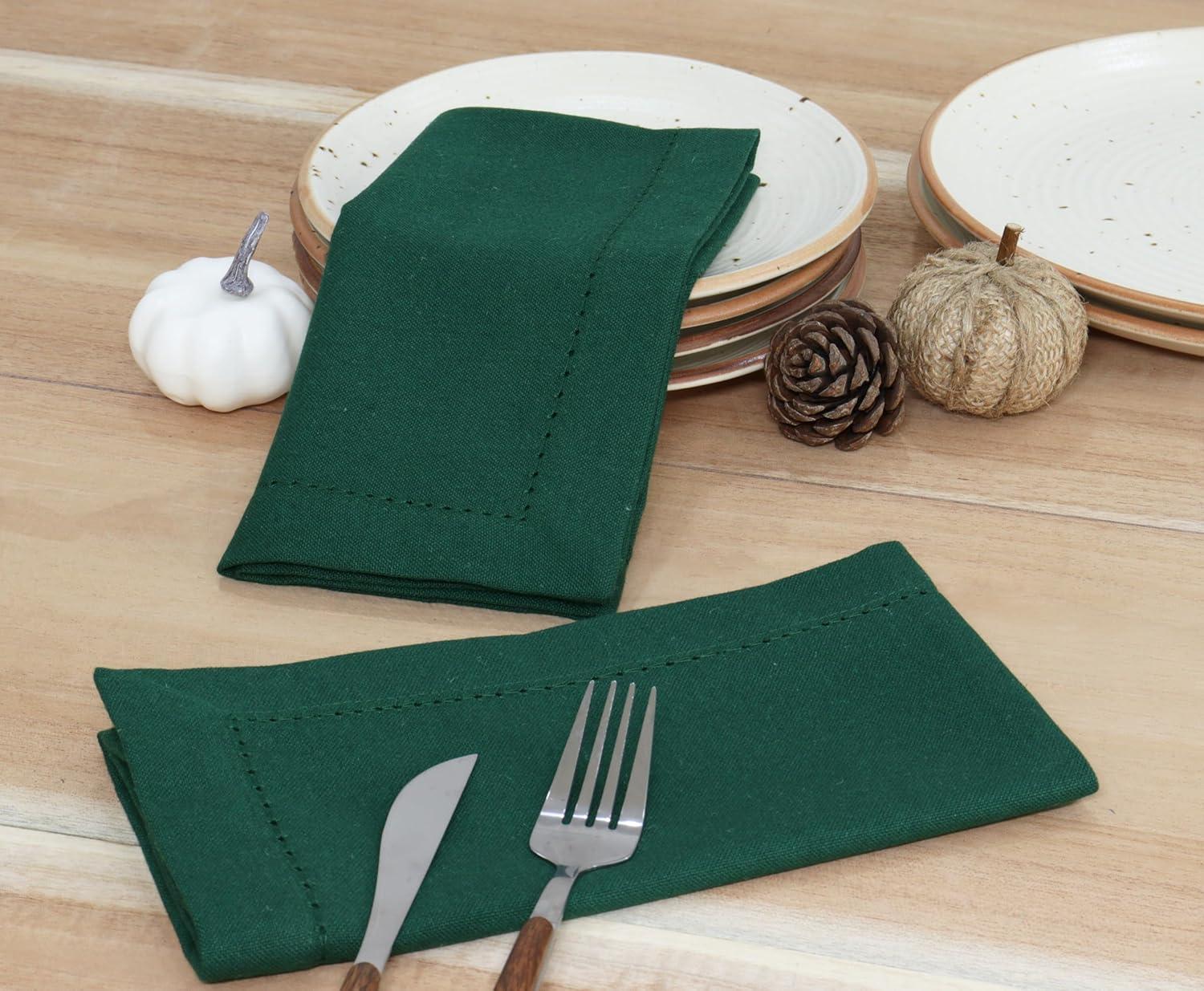 PurpleEssences Hemstitch Napkin 18 x 18 Inch Set of 12, Throw Pillow Cover 18 x 18 inch Set of 2-100% Cotton – Forest Green