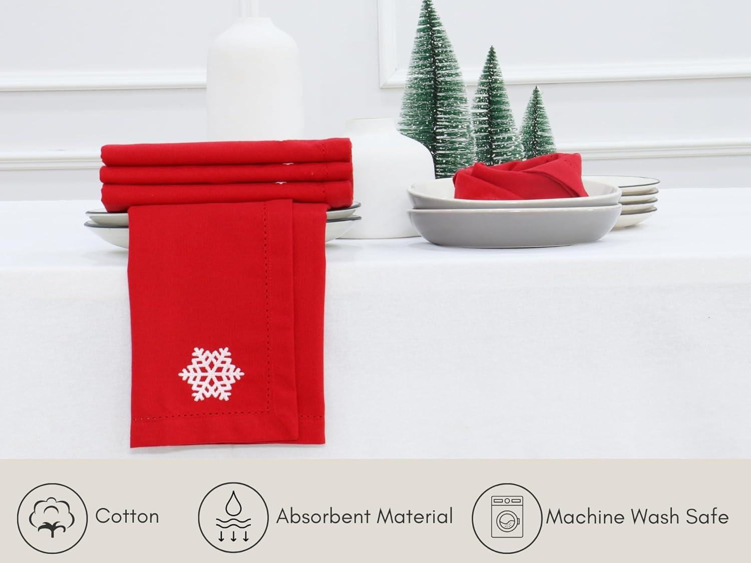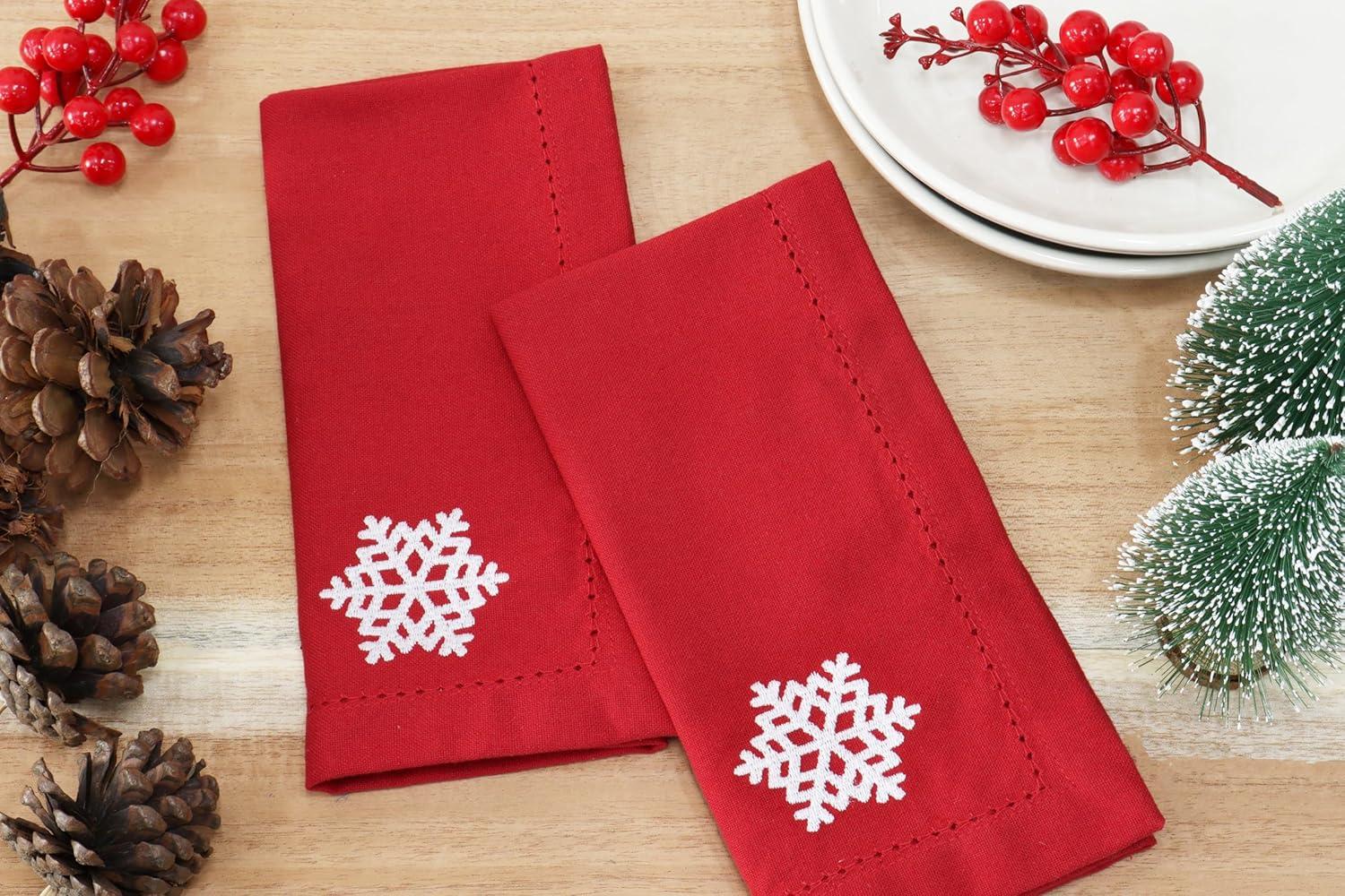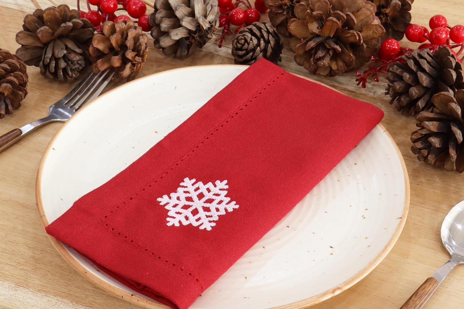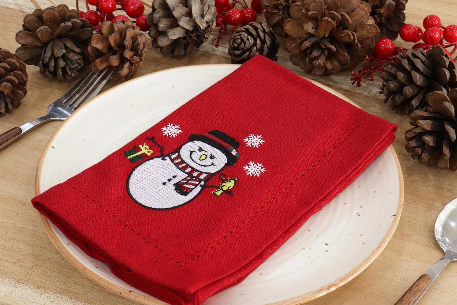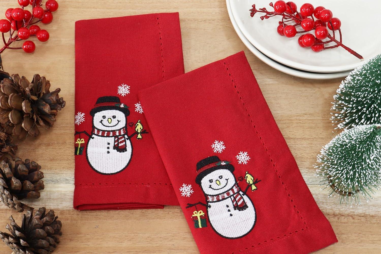 - Save big on PurpleEssences Christmas Embroidered Hemstitch 100% Cotton Napkin for Holidays, Family Gatherings & Dinner - Set of 6-18x18 inch - Red - Snowflakes(White - Snowman) and accessories during our BOGO sale. Buy one, get one 50% off!