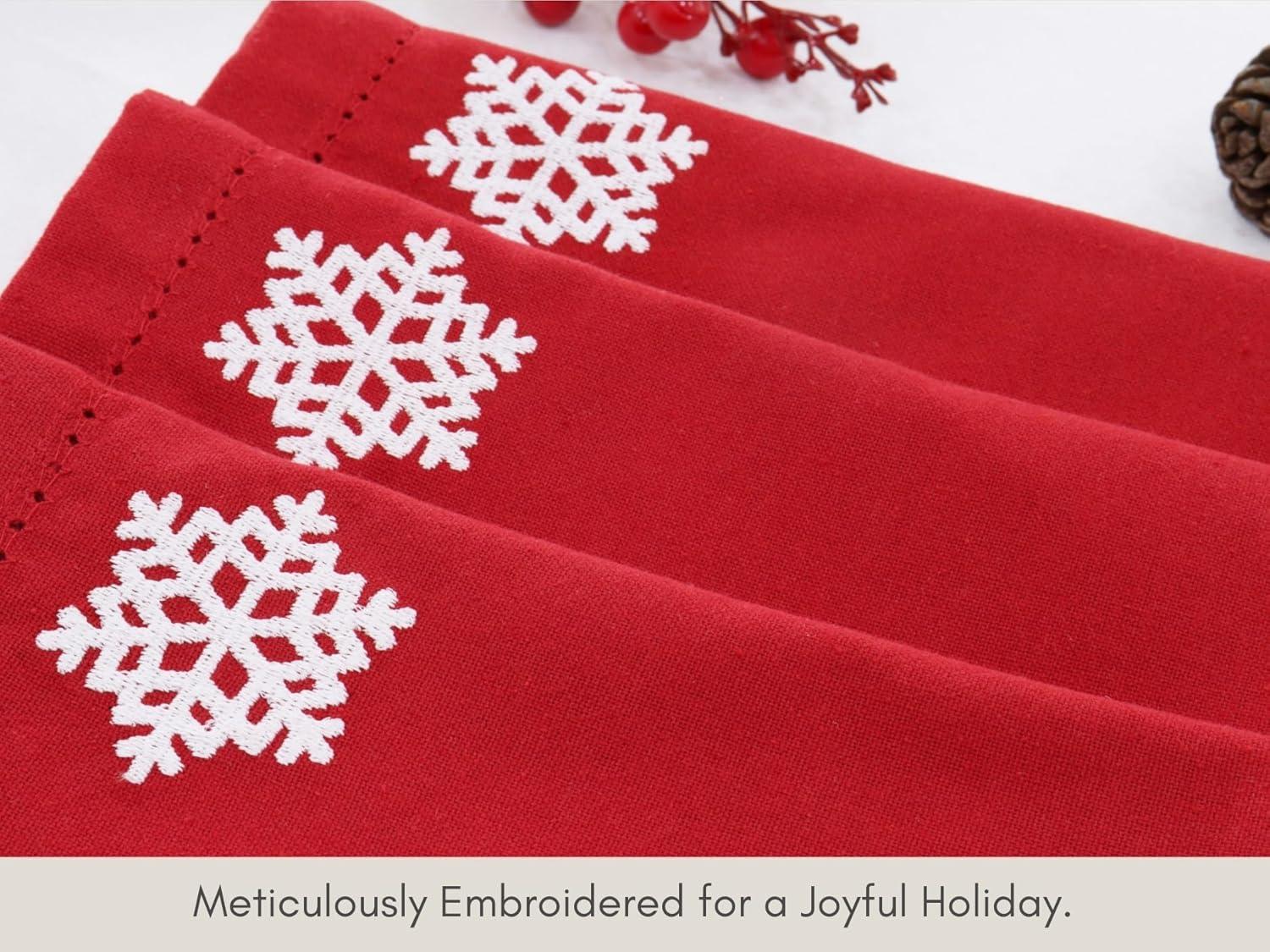 PurpleEssences Christmas Embroidered Hemstitch 100% Cotton Napkin for Holidays, Family Gatherings & Dinner – Set of 6-18×18 inch – Red – Snowflakes(Red – Snowflakes)