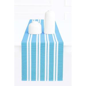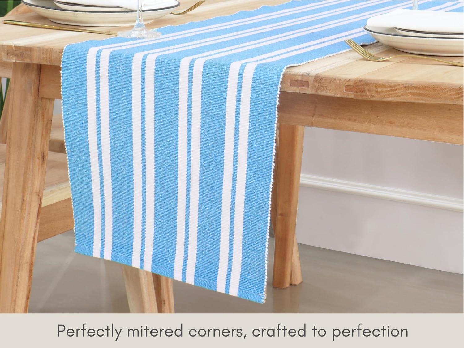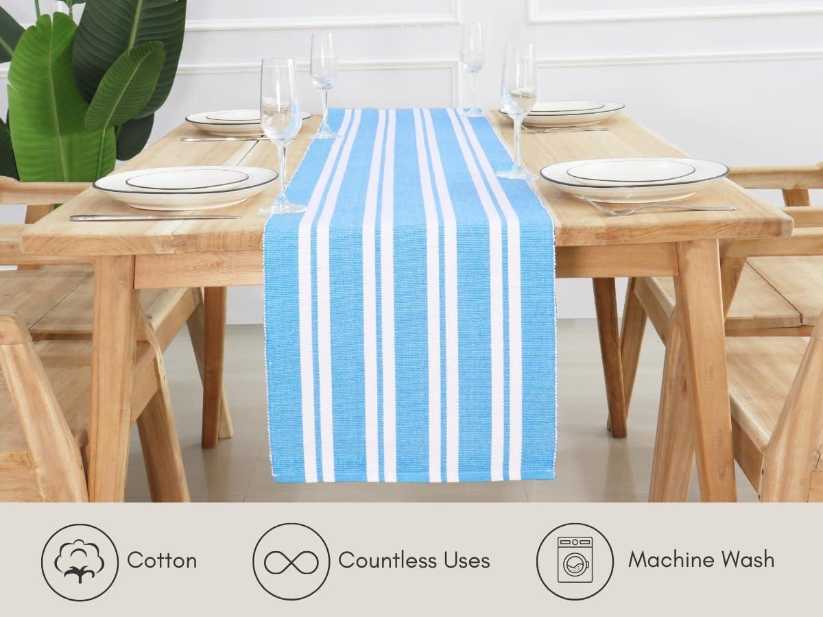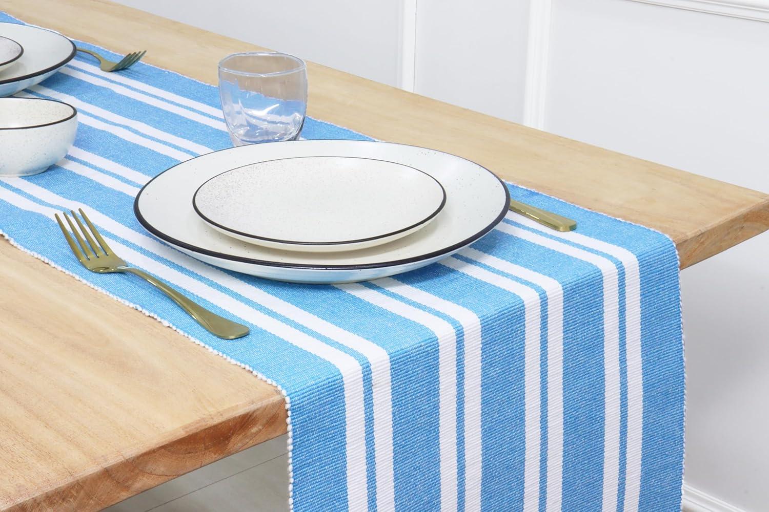 PurpleEssences Double Stripe Ribbed Woven Table Runner Dining Room Boho Farmhouse Decor – Fall Thanksgiving – 14 x 72 Inch – Biscuit and H.White(Aqua Blue and White)
