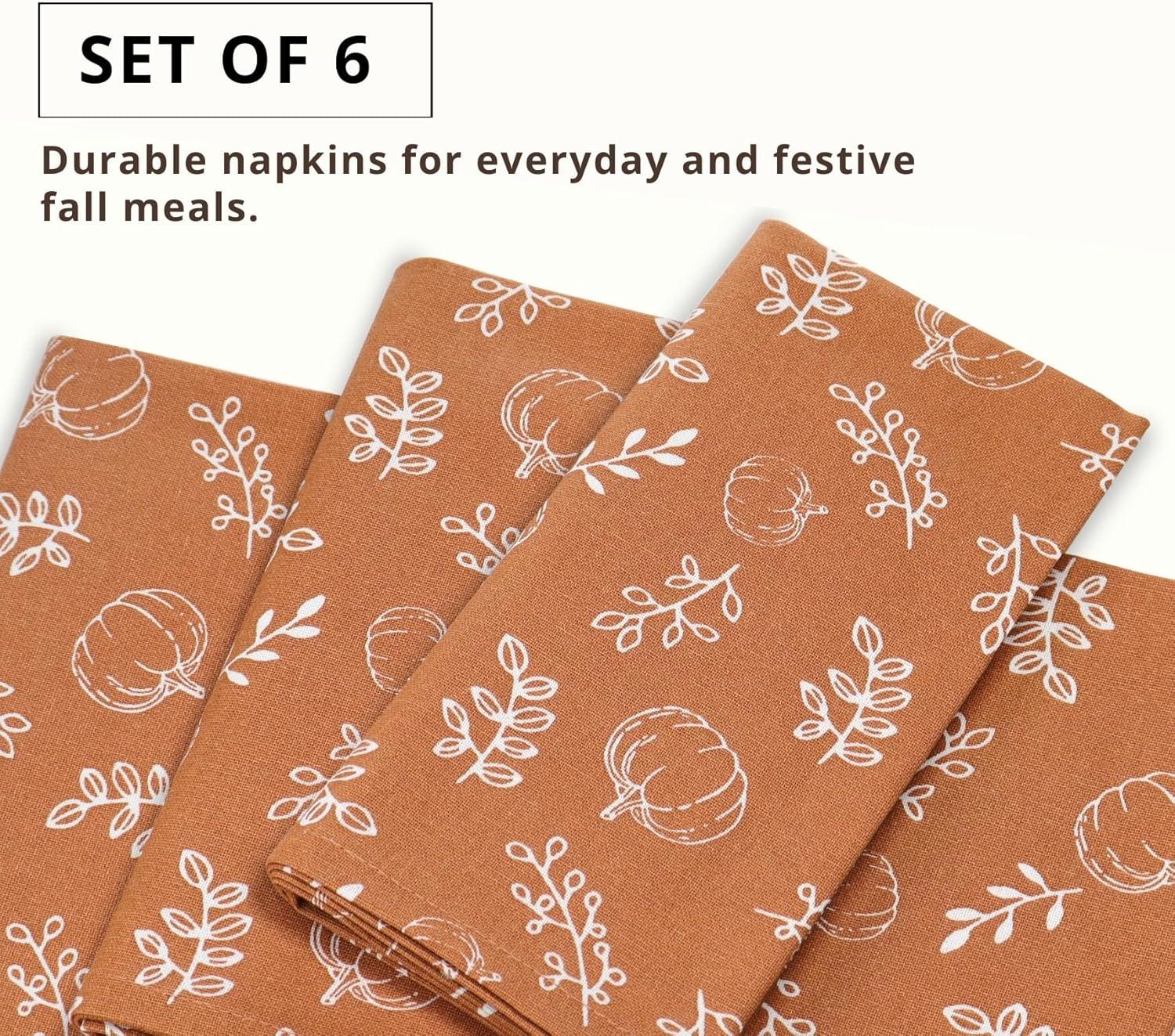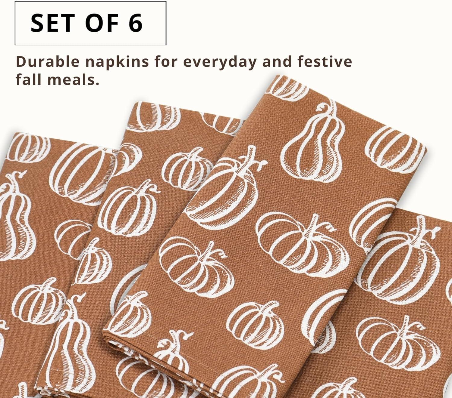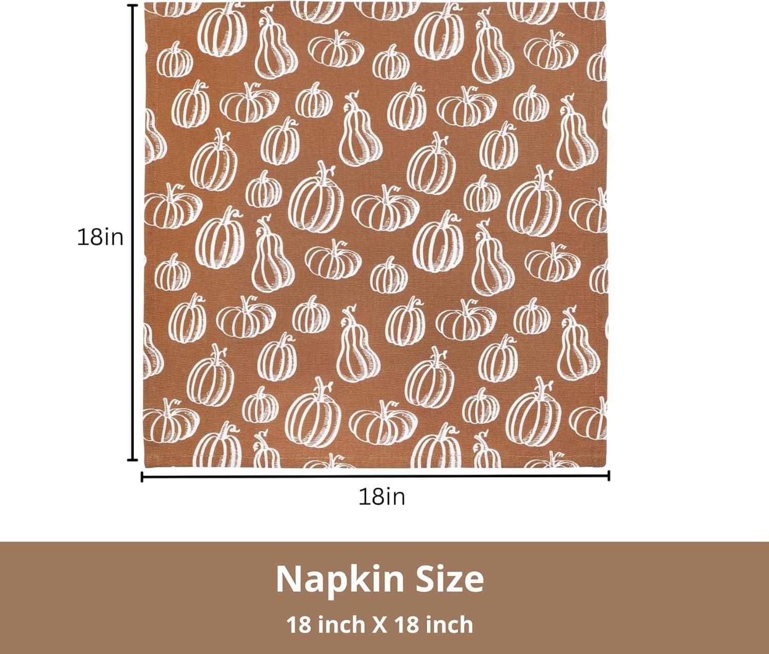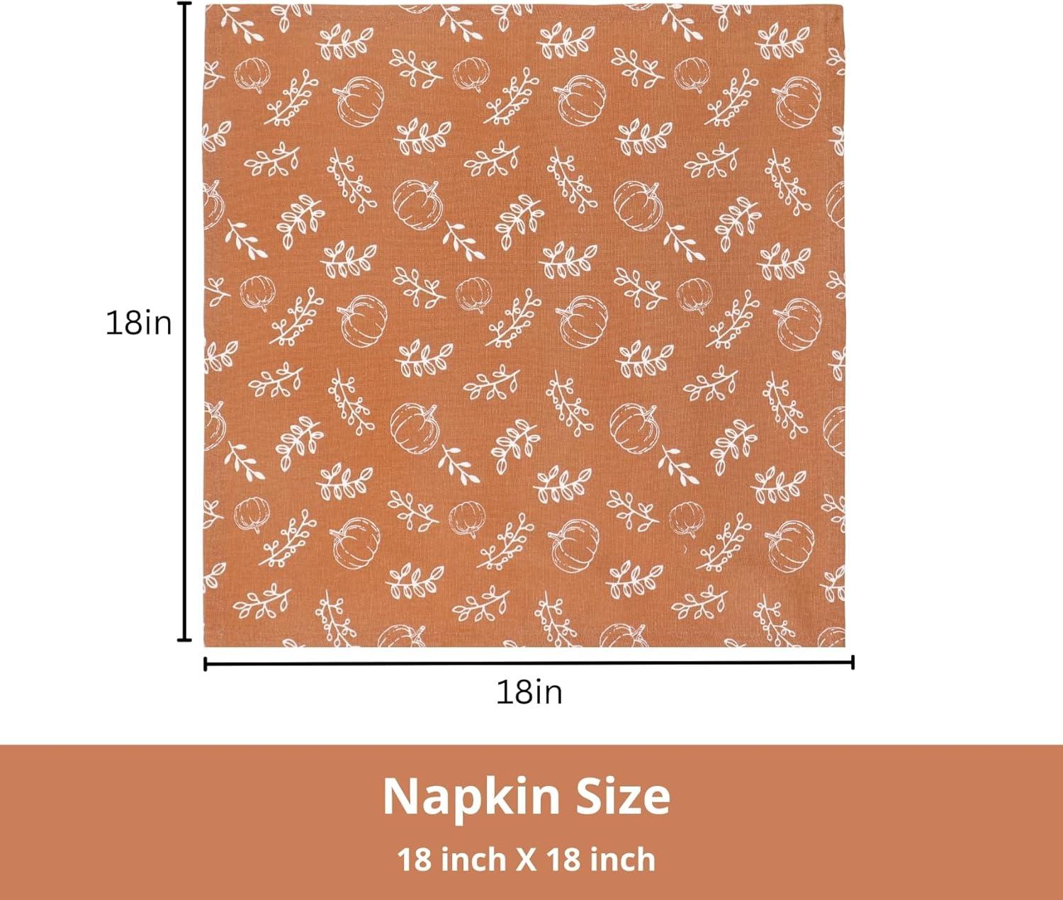 PurpleEssences Fall Pumpkin Harvest Thanksgiving Cloth Napkins 18×18 Inch, Set of 6 – Reusable, Washable Dinner Napkins for Home, Kitchen & Parties – Pumpkin Spice(Pumpkin Spice)
