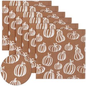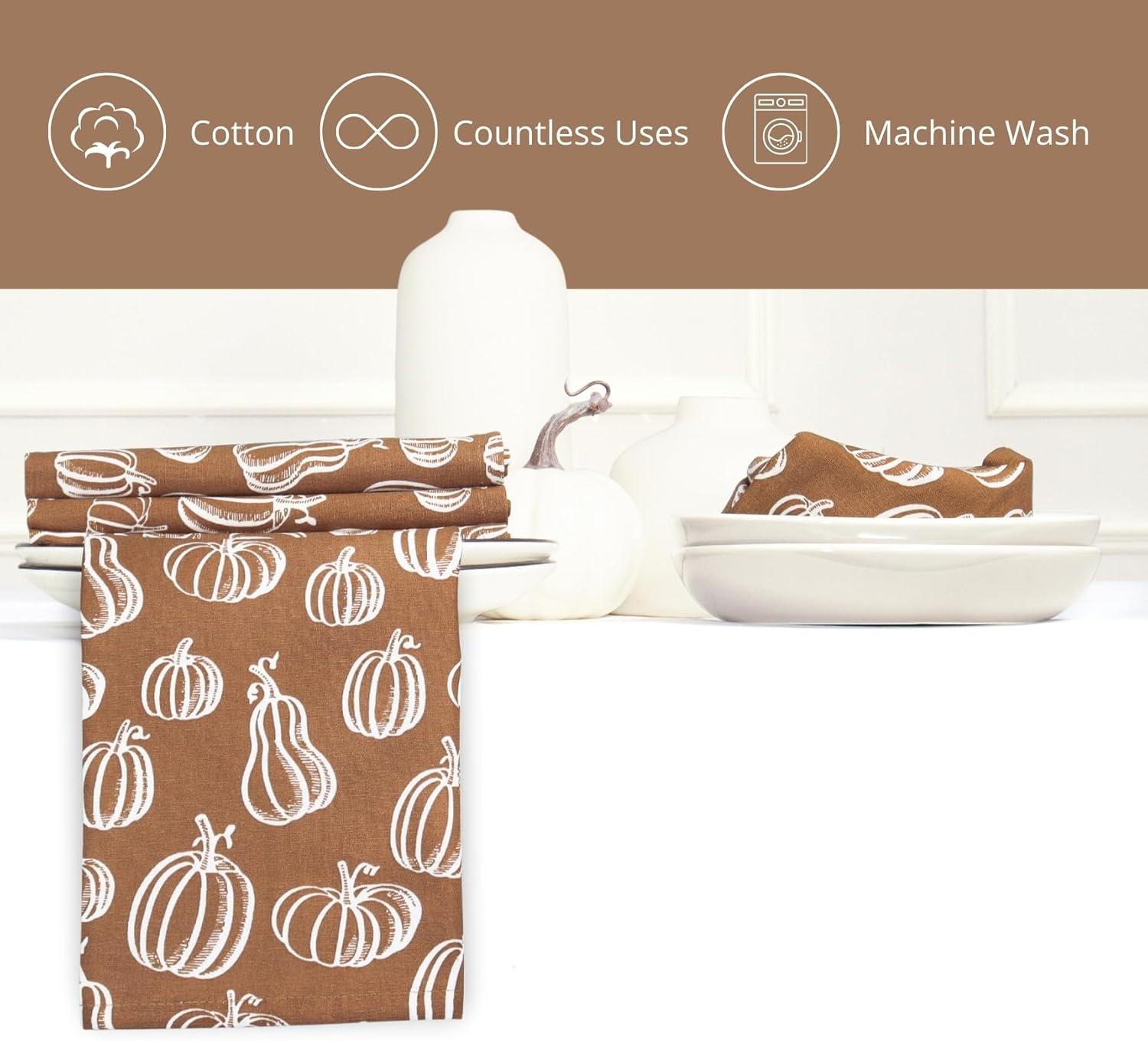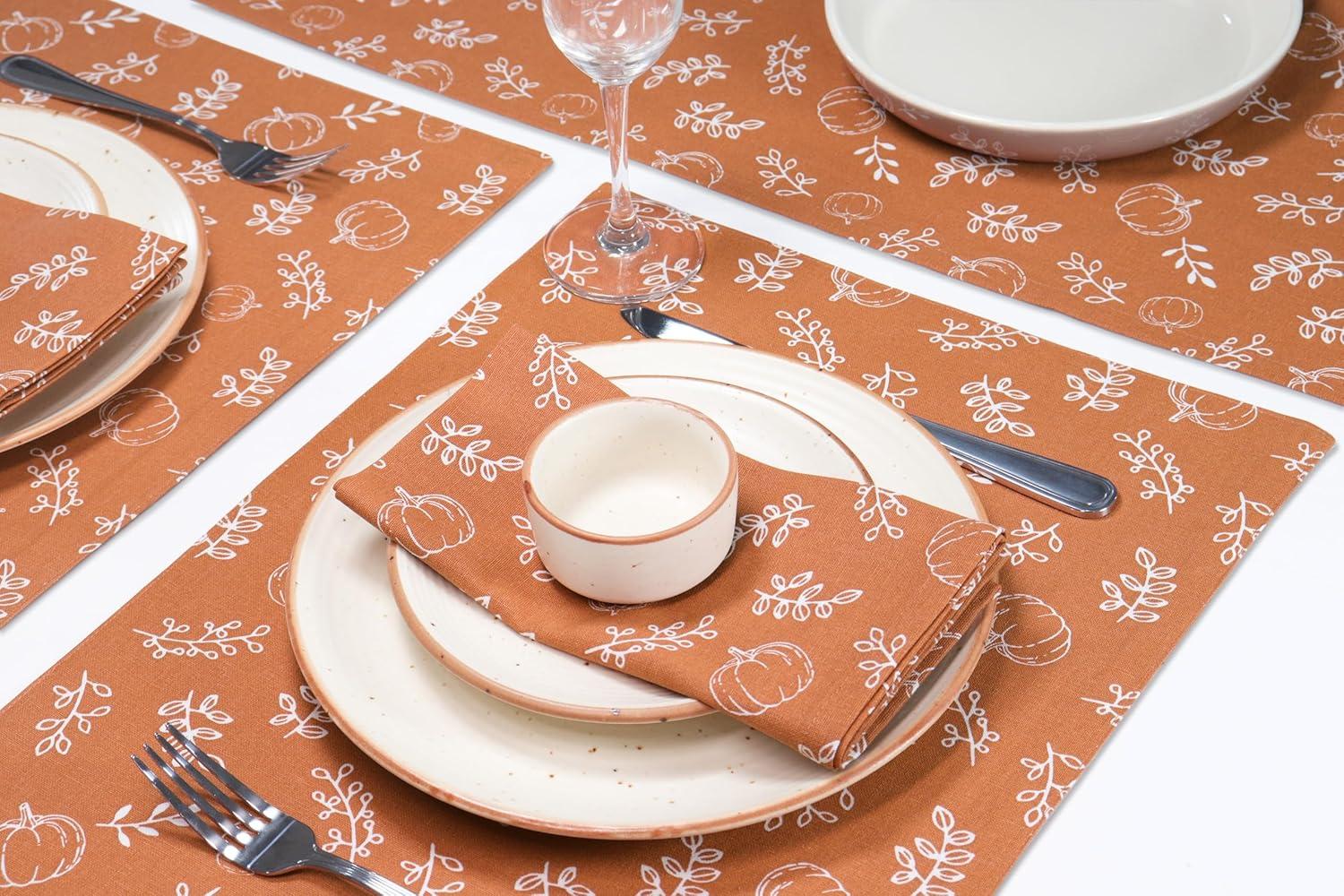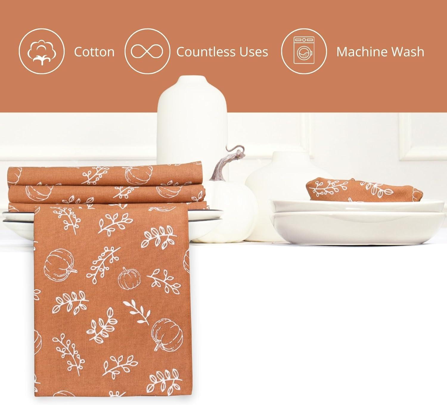 PurpleEssences Fall Pumpkin Harvest Thanksgiving Cloth Napkins 18×18 Inch, Set of 6 – Reusable, Washable Dinner Napkins for Home, Kitchen & Parties – Pumpkin Spice(Pumpkin Spice)