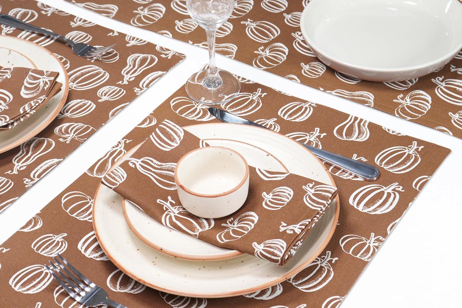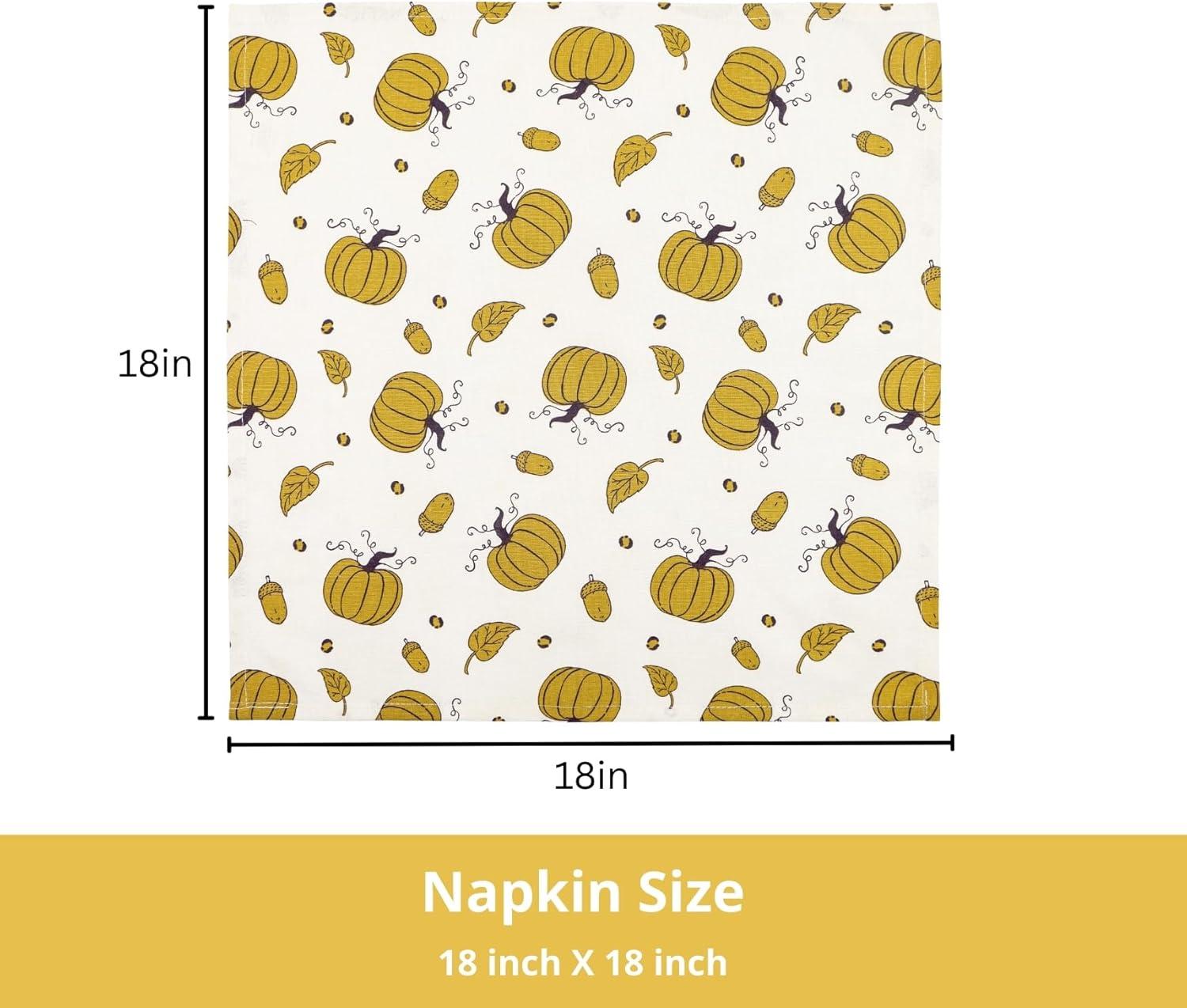 PurpleEssences Fall Pumpkin Harvest Thanksgiving Cloth Napkins 18×18 Inch, Set of 6 – Reusable, Washable Dinner Napkins for Home, Kitchen & Parties – Pumpkin Spice(Acorn)