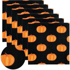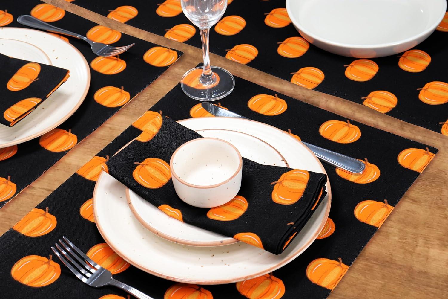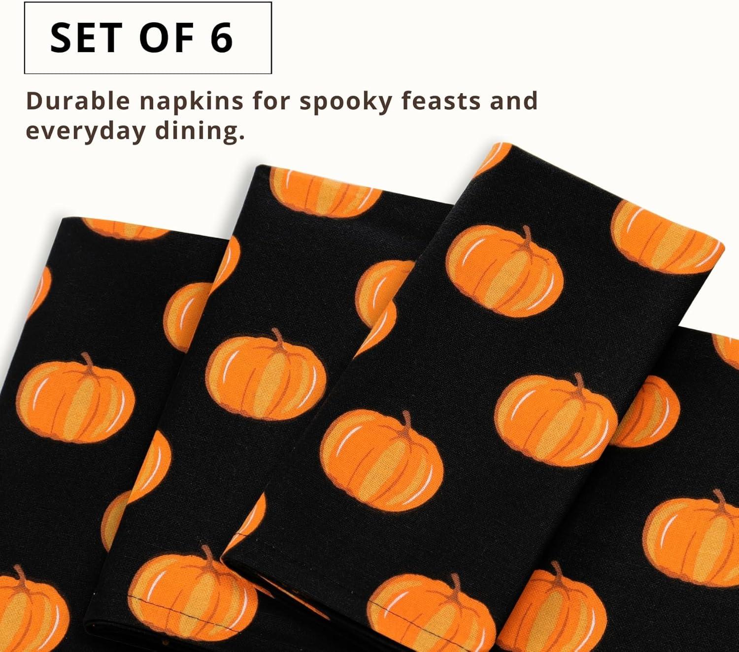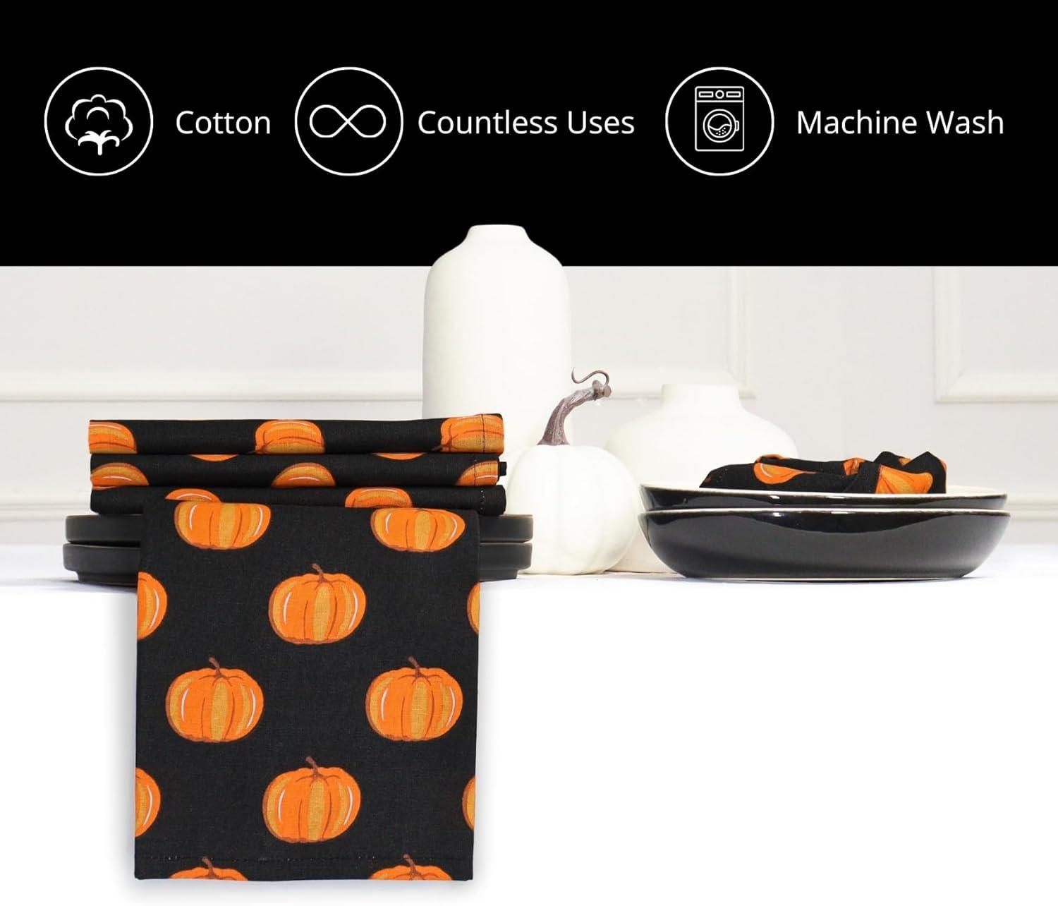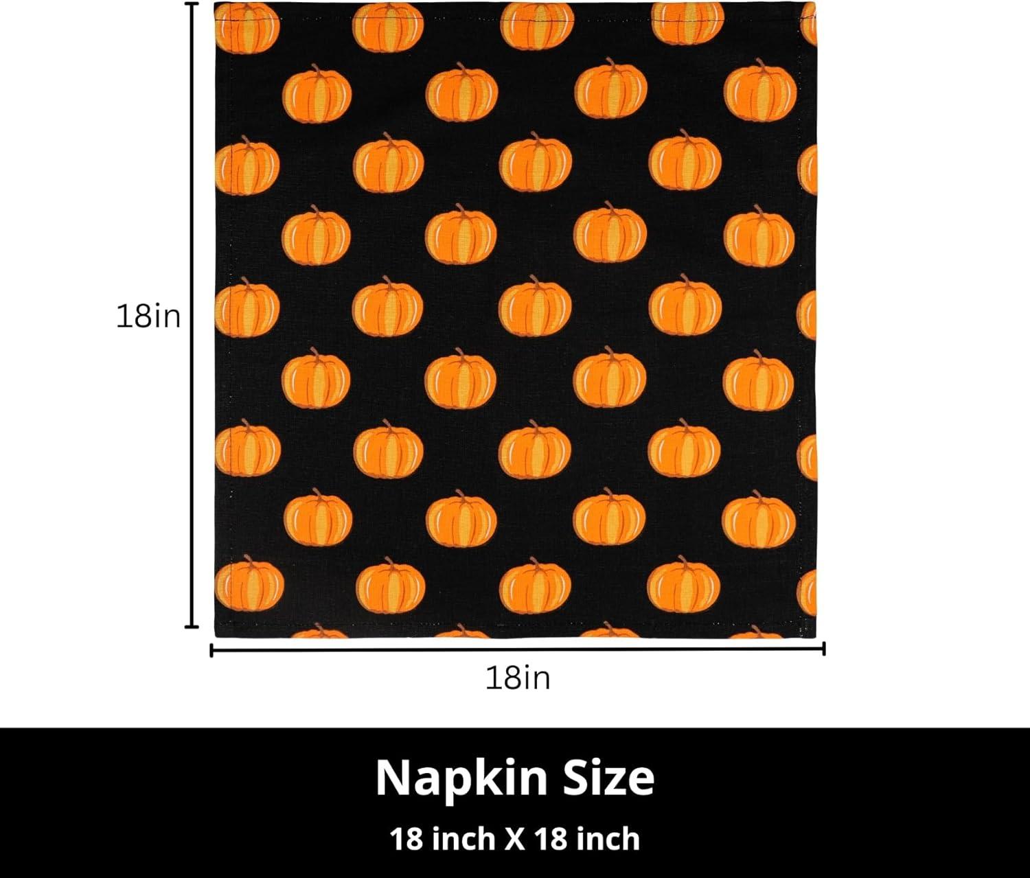PurpleEssences Fall Pumpkin Harvest Thanksgiving Cloth Napkins 18×18 Inch, Set of 6 – Reusable, Washable Dinner Napkins for Home, Kitchen & Parties – Pumpkin Spice(Halloween Pumpkin)