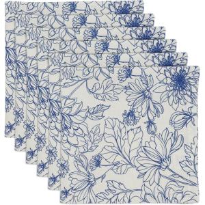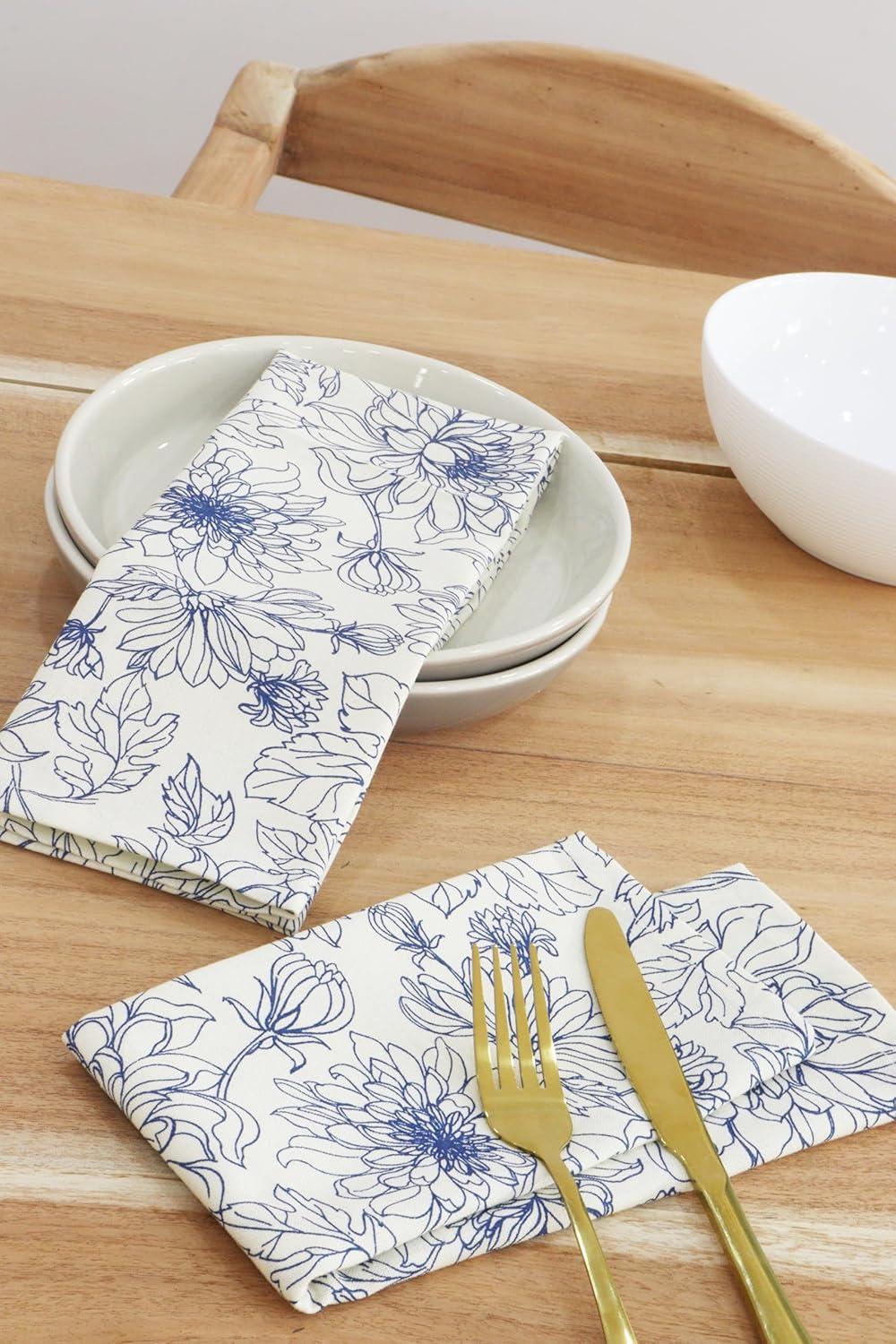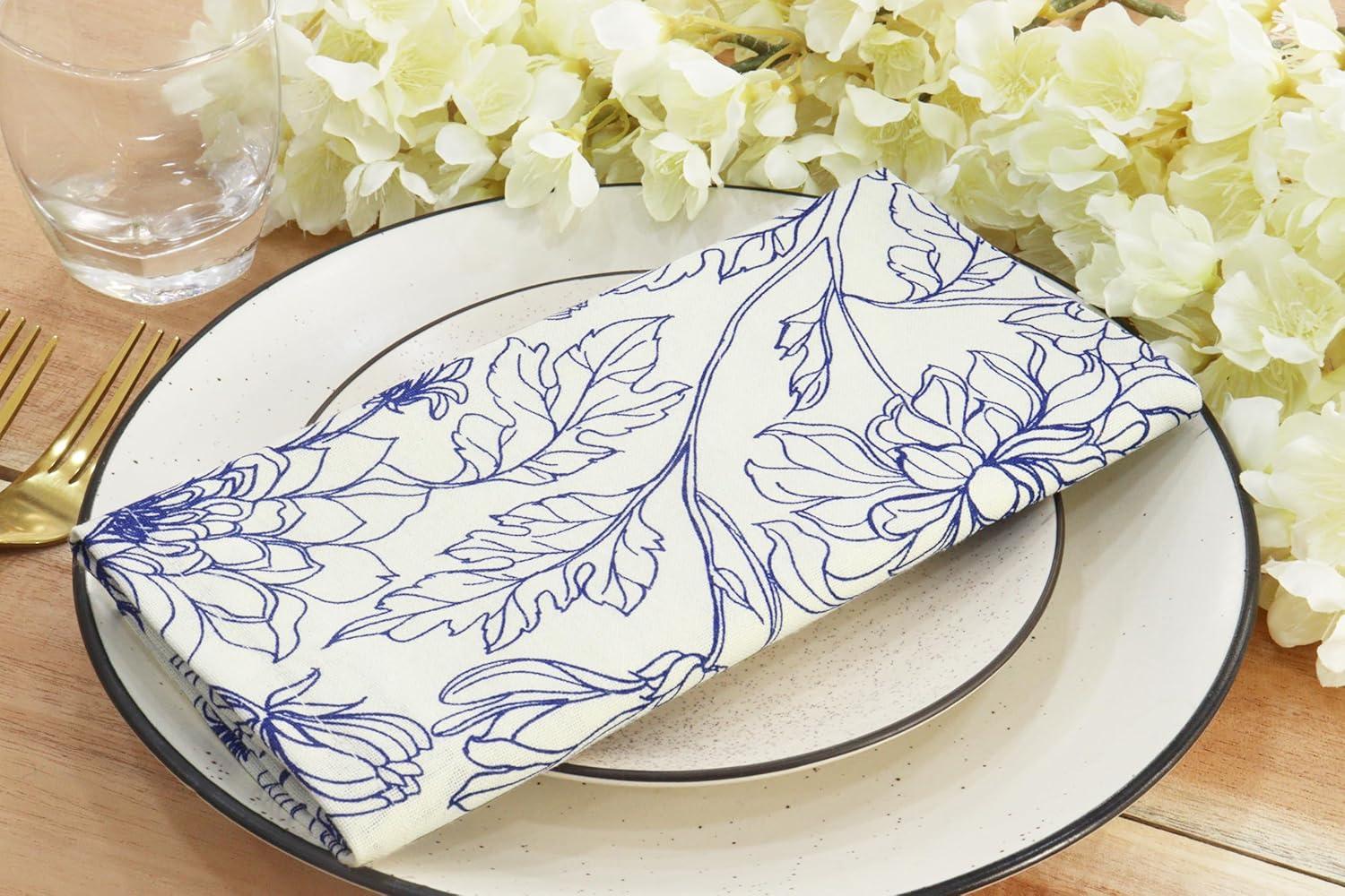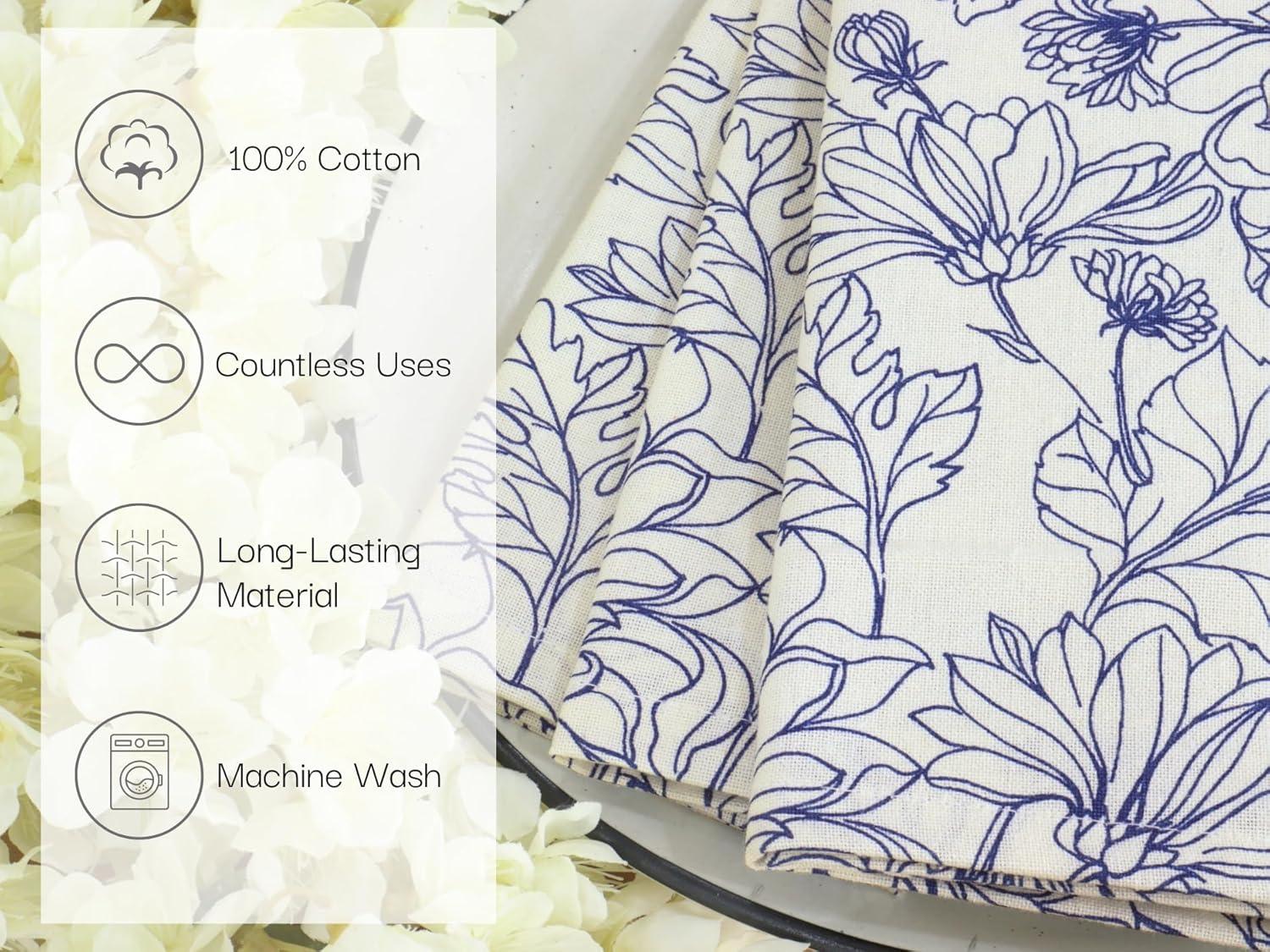 PurpleEssences Floral Cloth Napkins – Set of 6, 18×18 Inch – 100% Cotton, Soft, Durable & Washable – Perfect for Everyday Dining – Fall Thanksgiving – Blue Floral(Blue Floral)