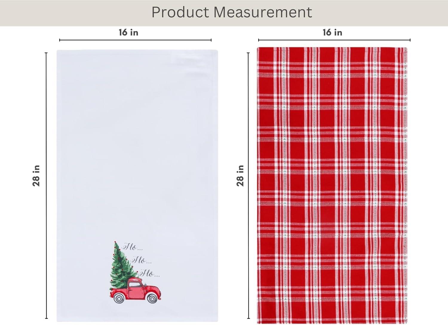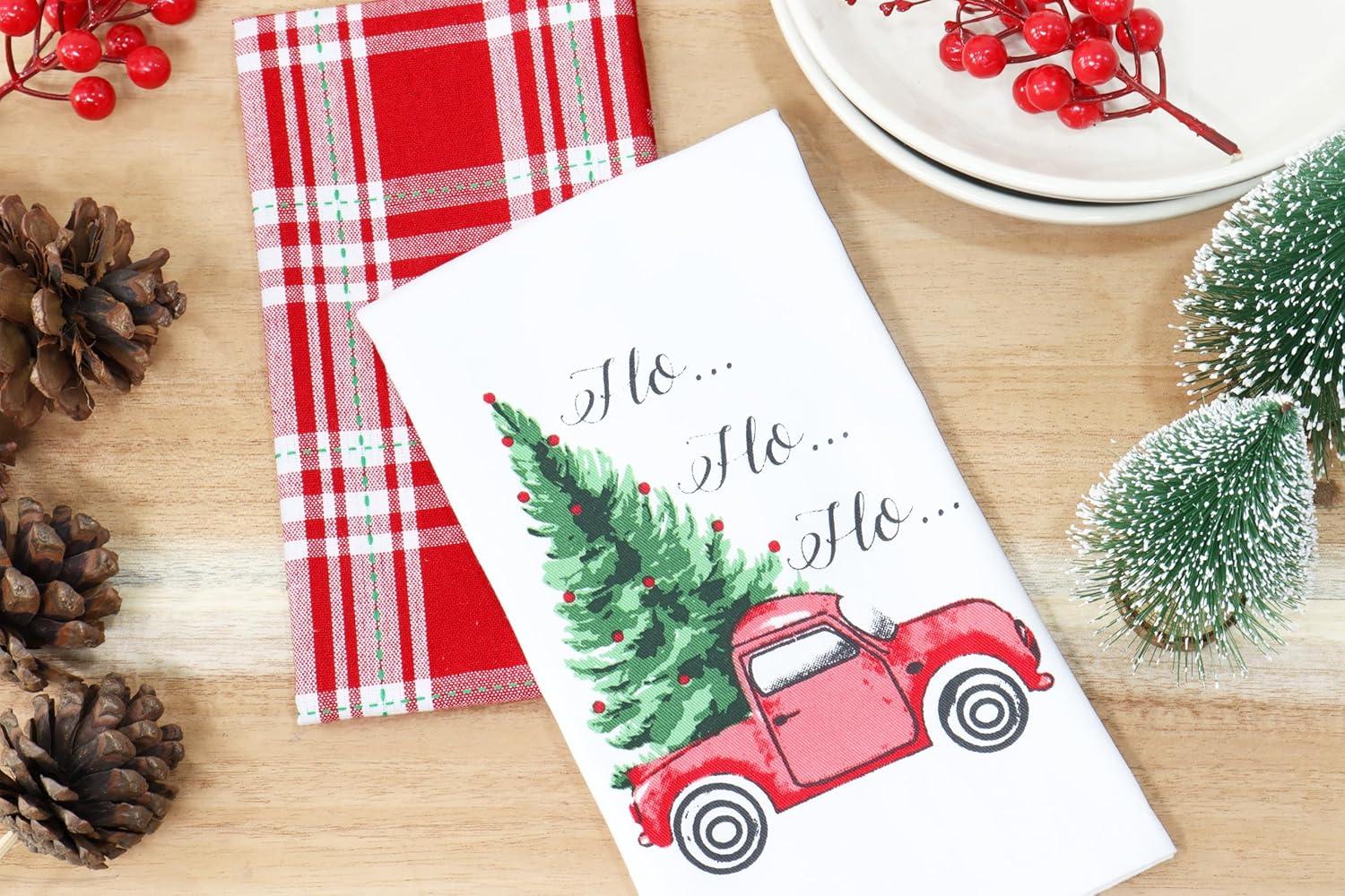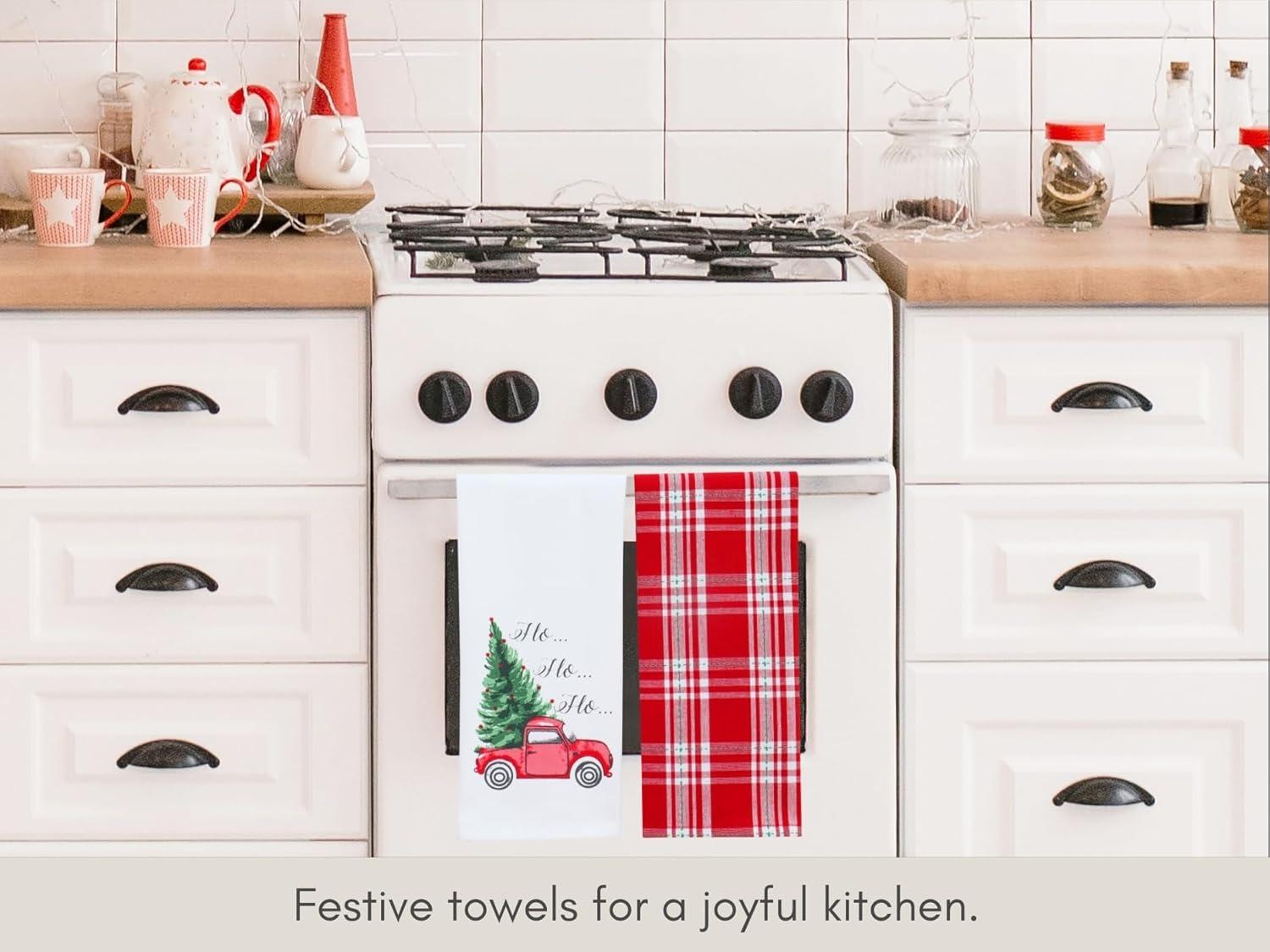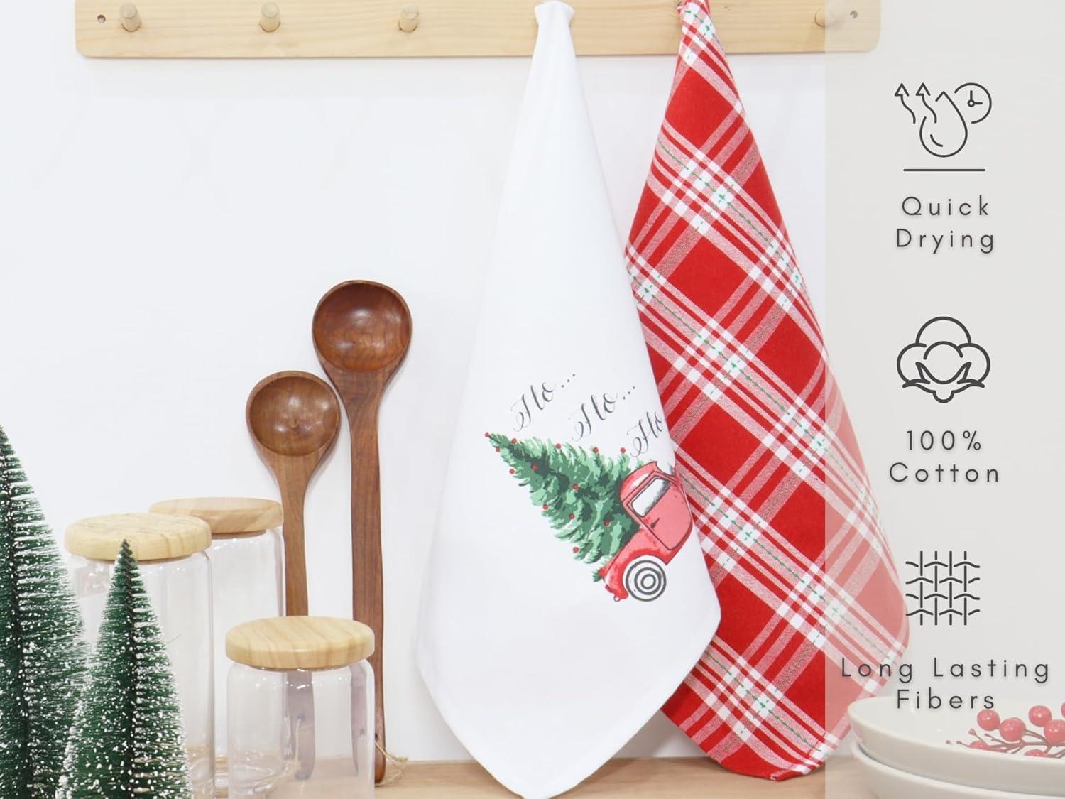 PurpleEssences Christmas Kitchen Towel Set of 2-100% Cotton Tea Towels for Baking, Cleaning, Entertainment & Cooking, Holiday – Snowman and Plaid(Christmas Truck and Plaid)