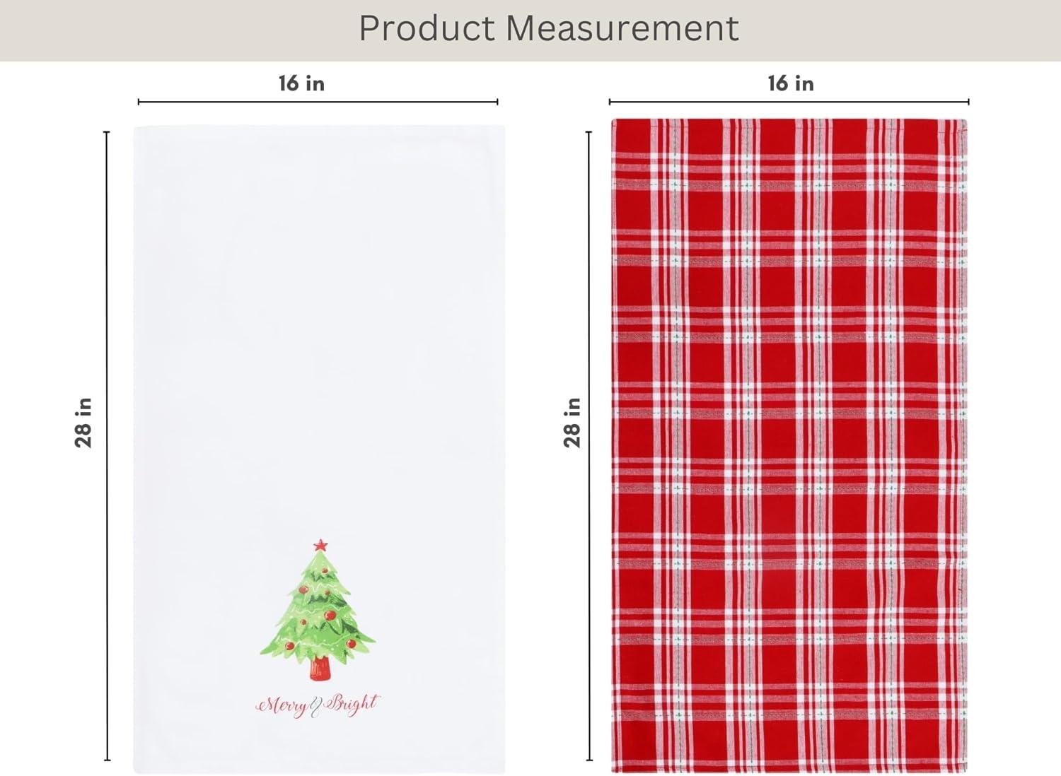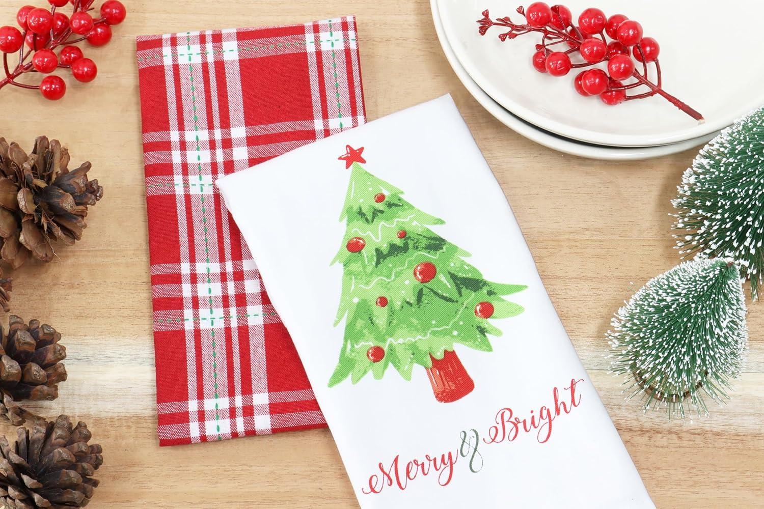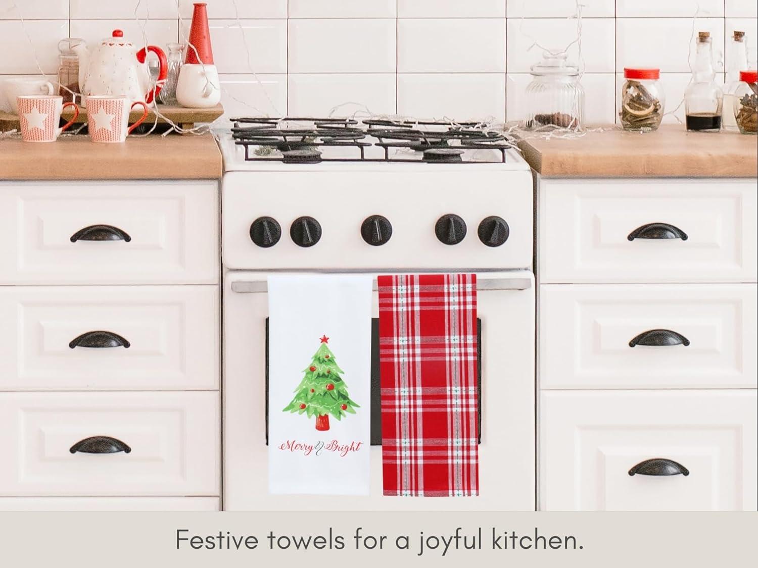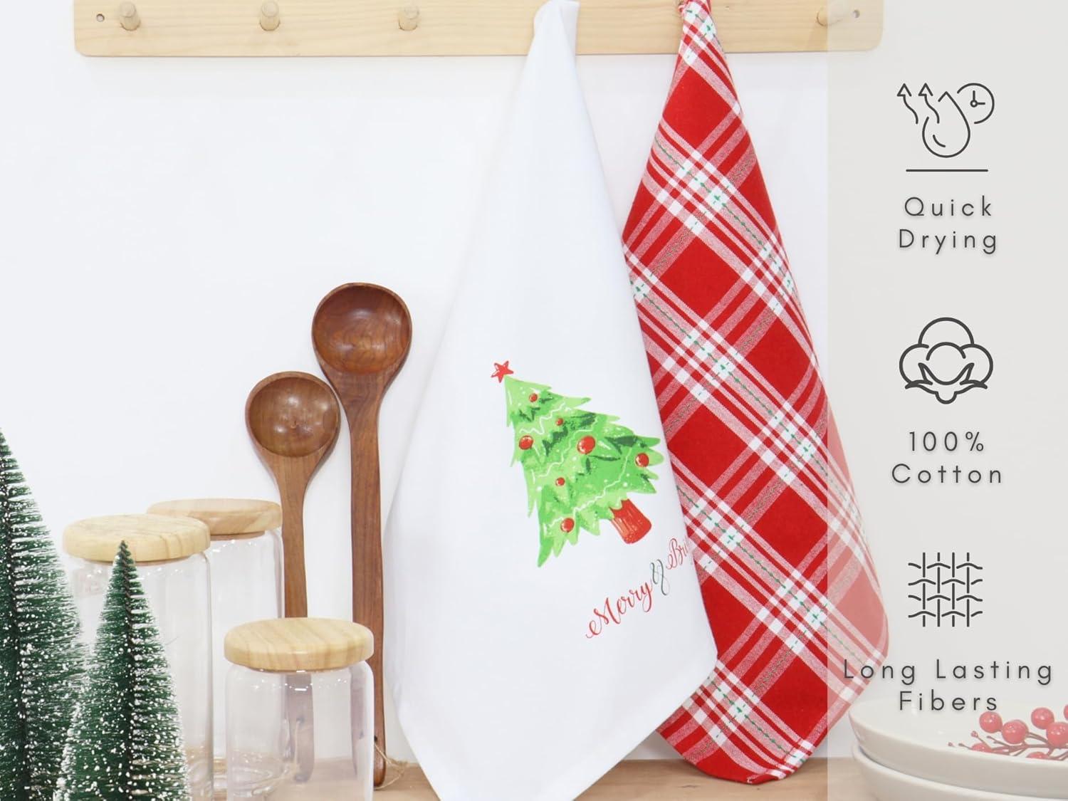 PurpleEssences Christmas Kitchen Towel Set of 2-100% Cotton Tea Towels for Baking, Cleaning, Entertainment & Cooking, Holiday – Snowman and Plaid(Christmas Tree and Plaid)