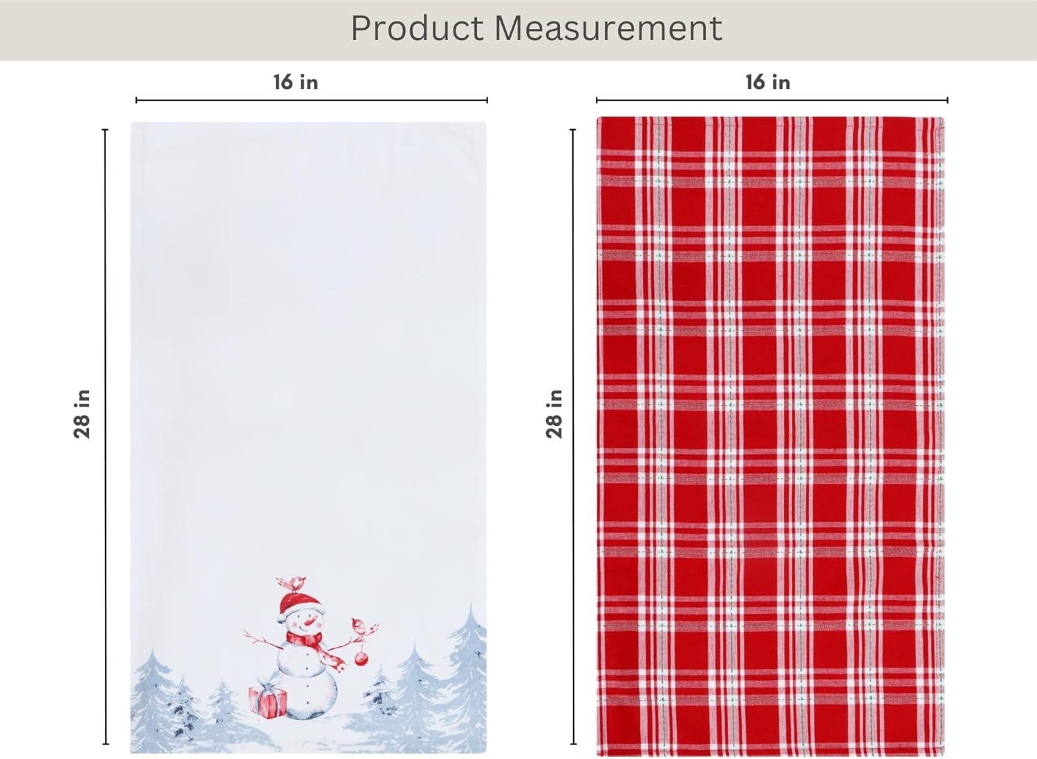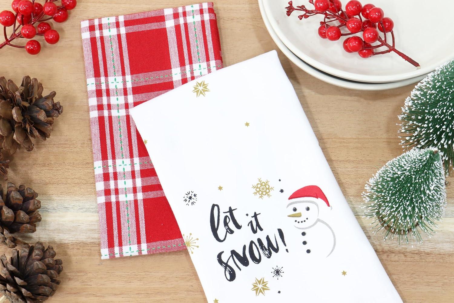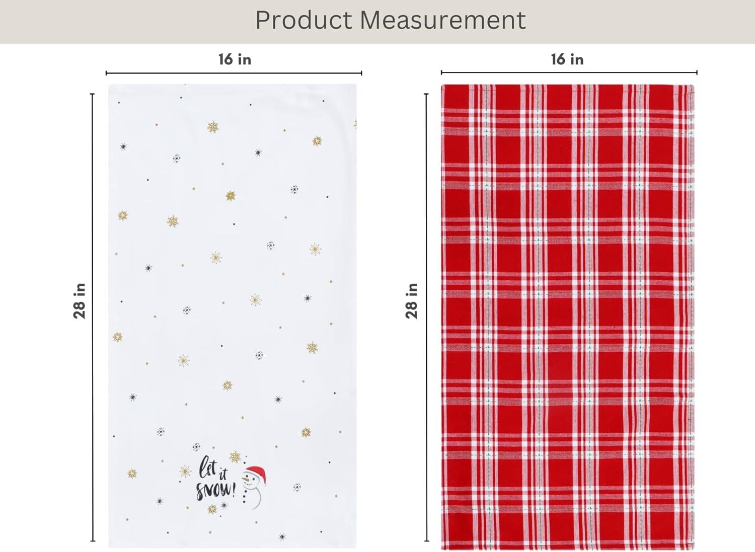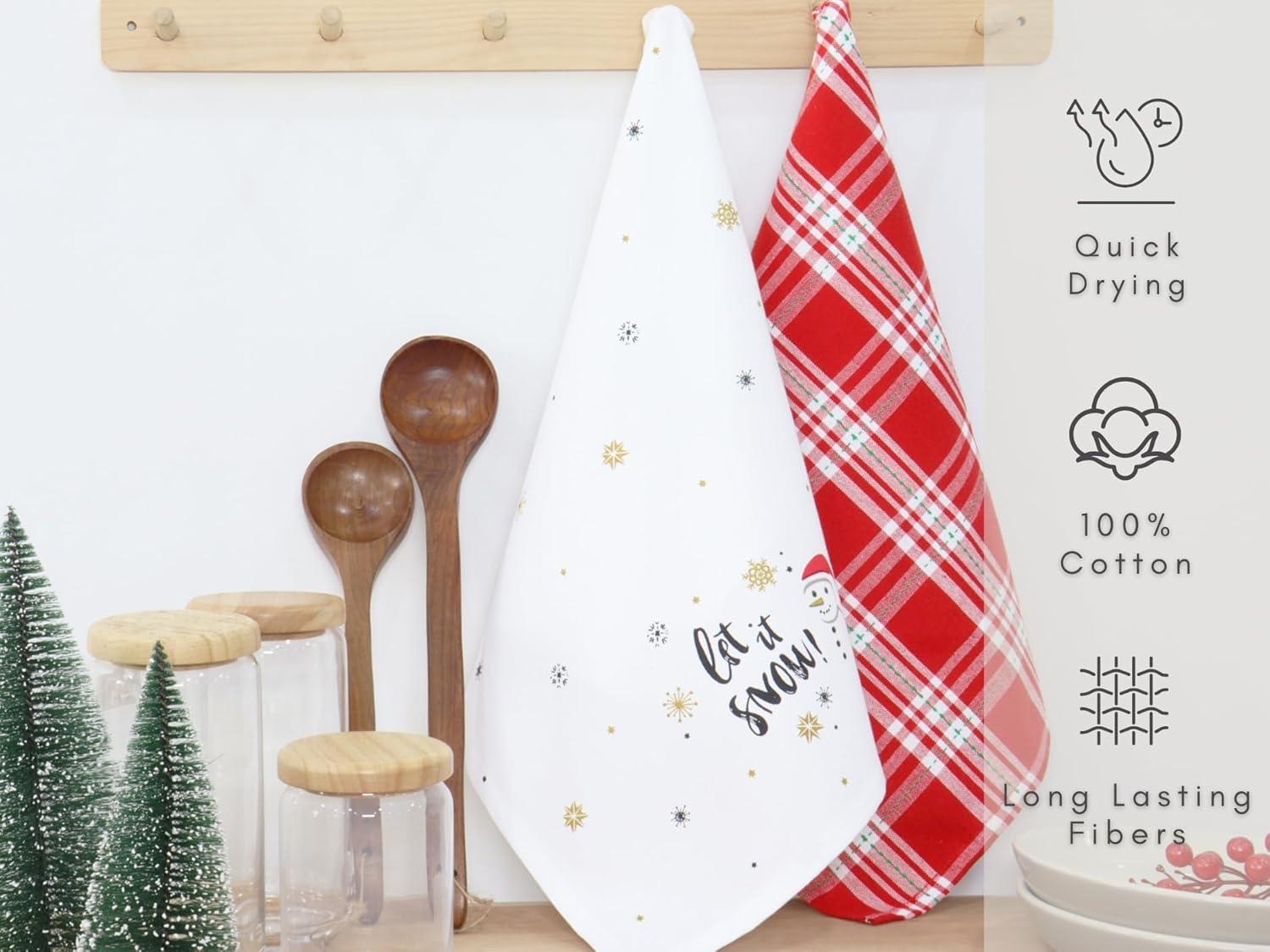 PurpleEssences Christmas Kitchen Towel Set of 2-100% Cotton Tea Towels for Baking, Cleaning, Entertainment & Cooking, Holiday – Snowman and Plaid(Let It Snow and Plaid)