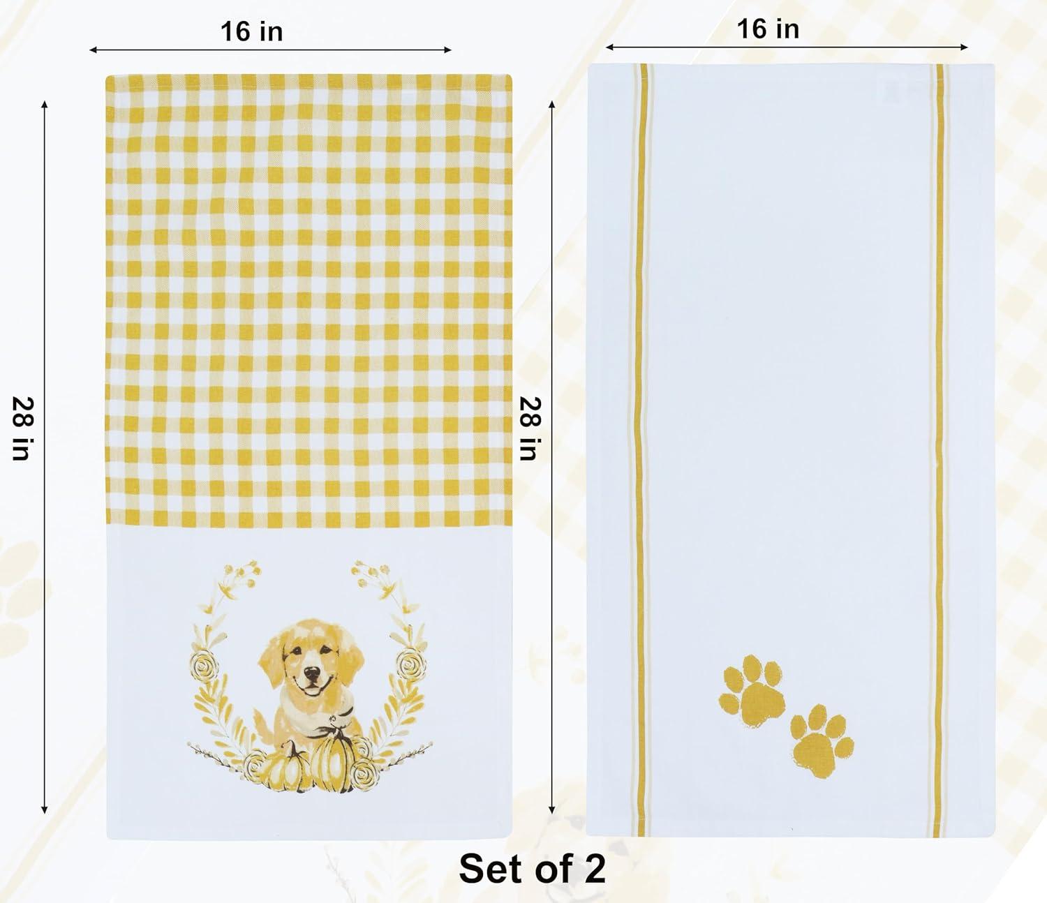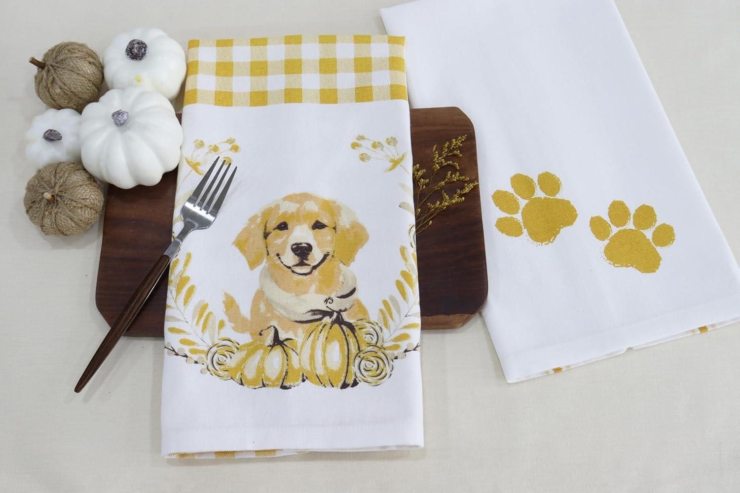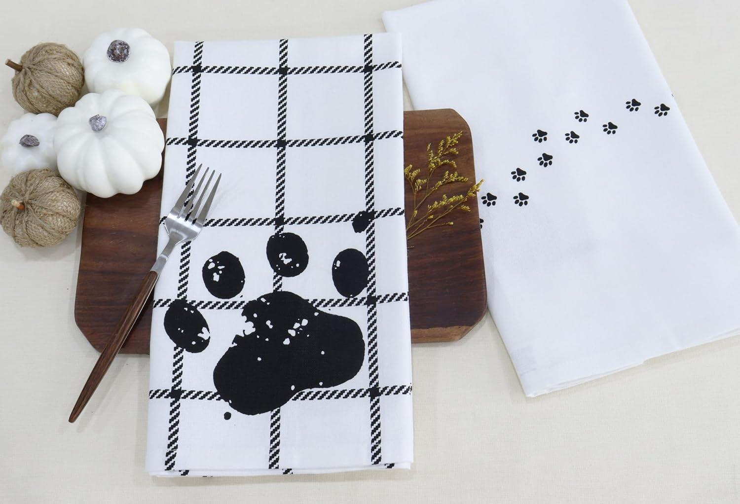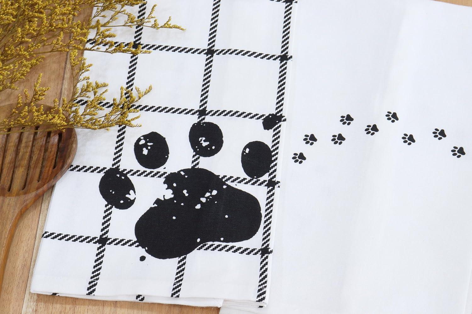 PurpleEssences Cotton Kitchen Towels Set of 2 – Absorbent Dish Towels Set Tea Towels Bar Towels Multipurpose Kitchen Linen, Drying Dish Hand Towels 16 x 28 Inch (Puppy & Paw)(Puppy & Paw)