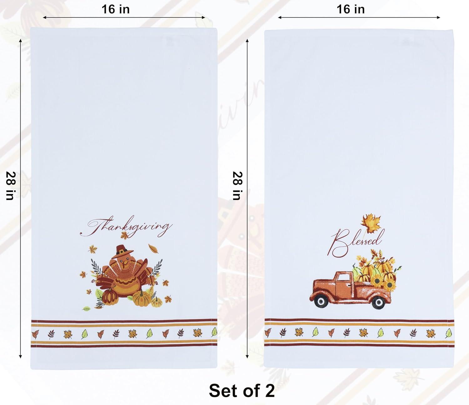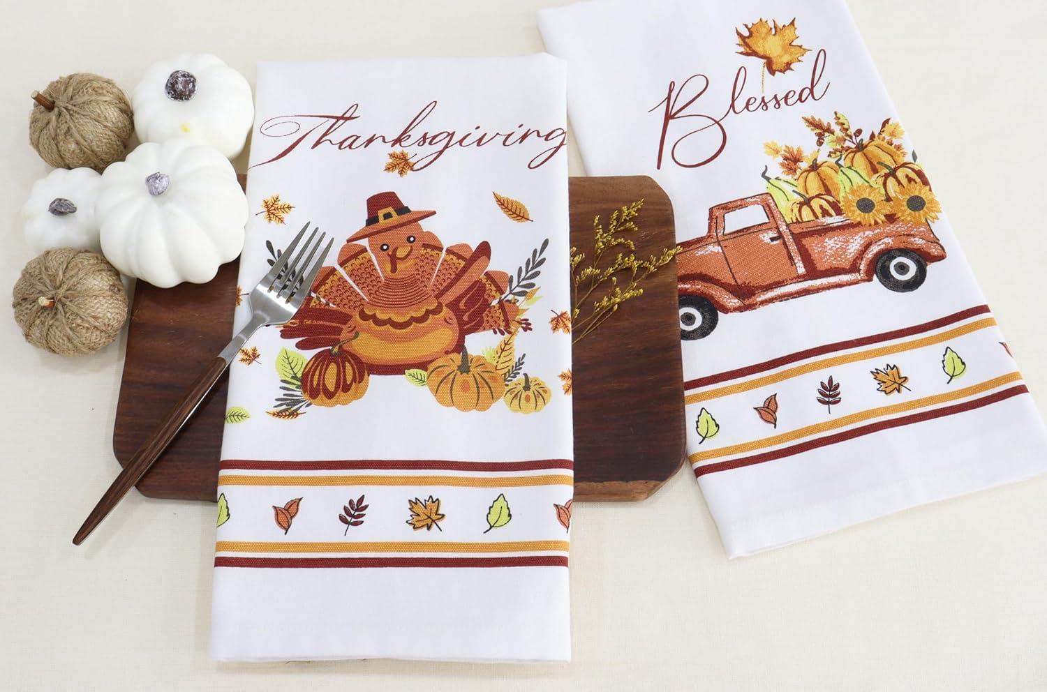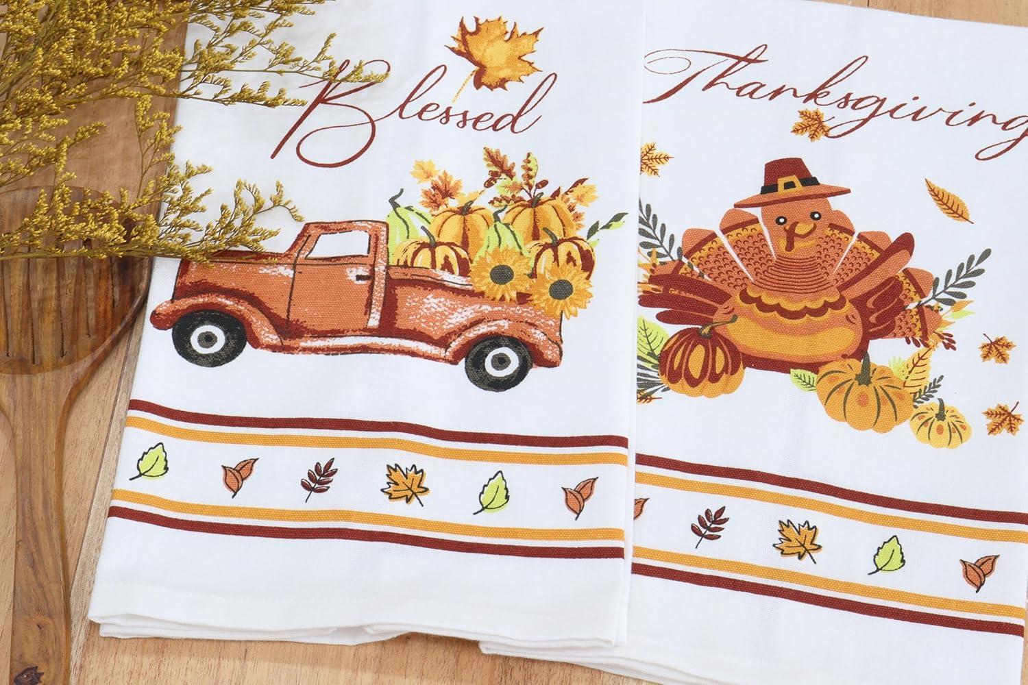 PurpleEssences Fall Cotton Kitchen Towels Set of 2 – Absorbent Dish Towels Set Tea Towels Bar Towels Multi Purpose Kitchen Linen, Drying Dish Hand Towels 16 x 28 Inch (Turky & Truck)(Turky & Truck)