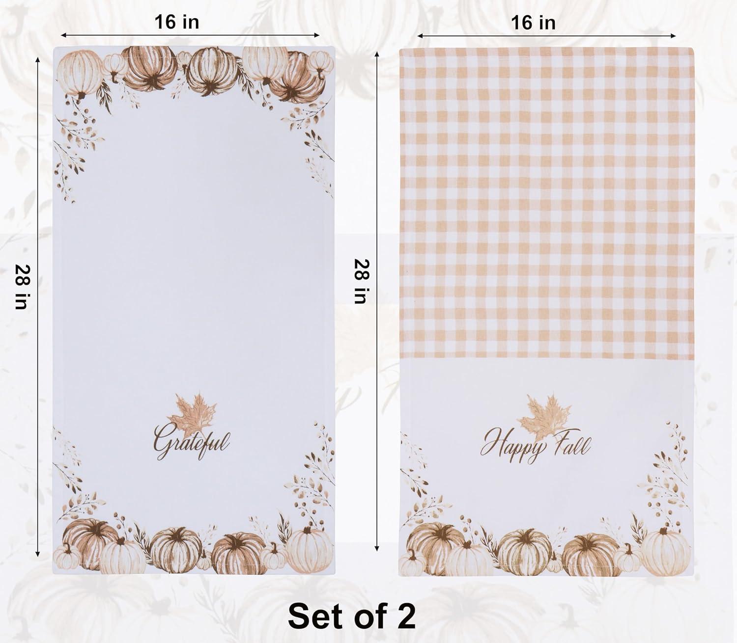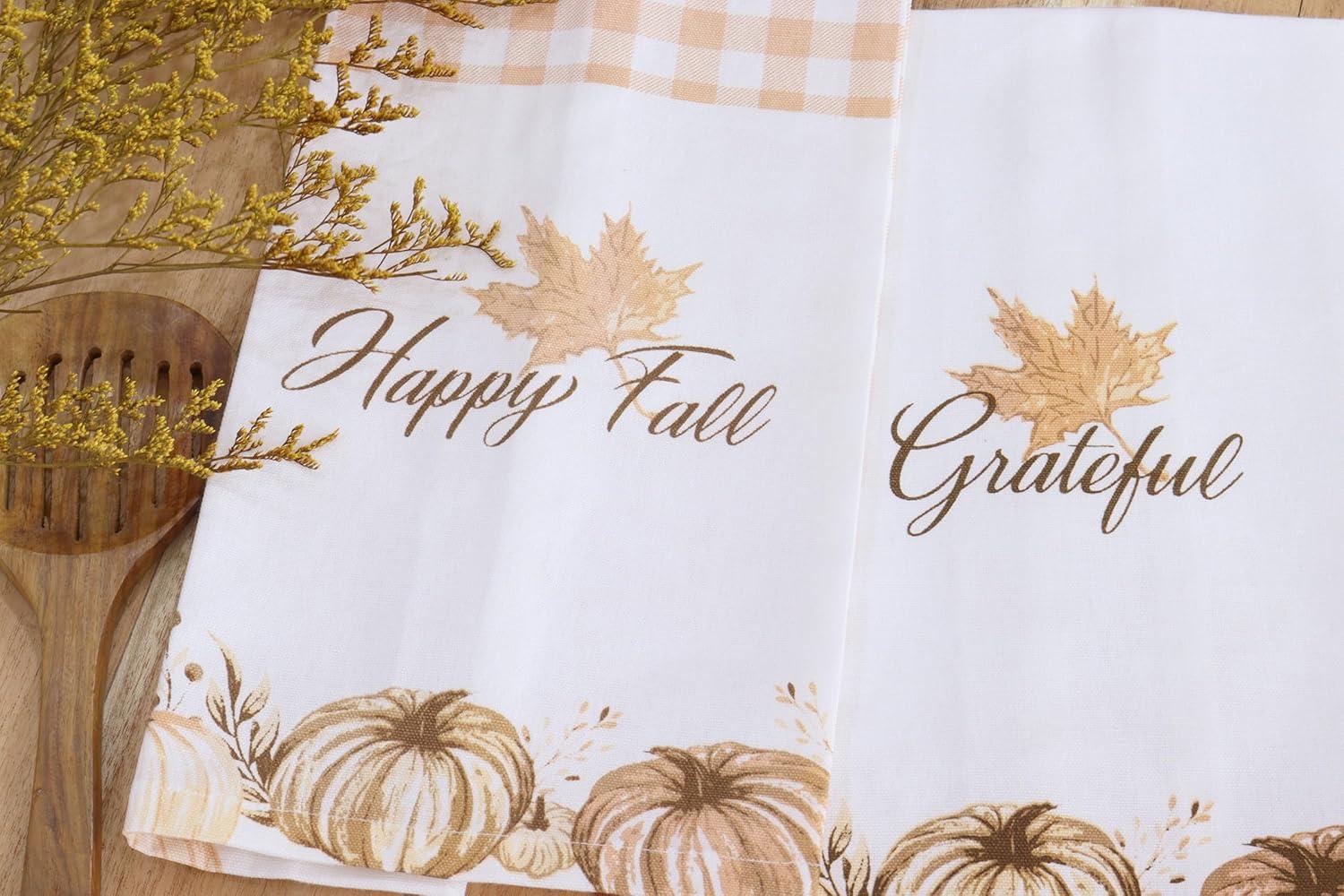 PurpleEssences Fall Cotton Kitchen Towels Set of 2 – Absorbent Dish Towels Set Tea Towels Bar Towels Multi Purpose Kitchen Linen, Drying Dish Hand Towels 16 x 28 Inch (Turky & Truck)(Happy Fall Checks & Grateful)