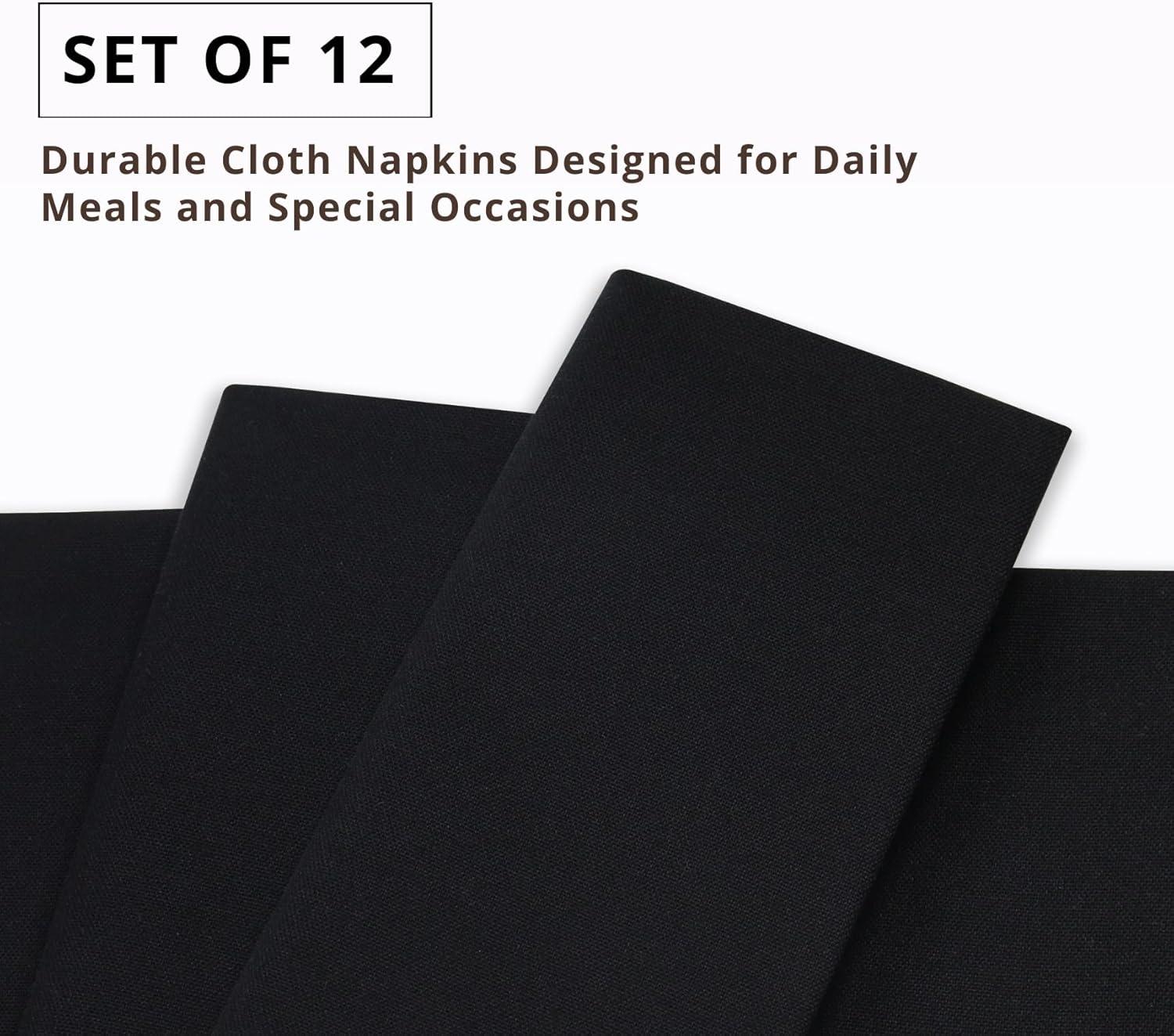 PurpleEssences Set of 12 Cloth Dinner Napkins 100% Cotton 18×18 Inch – Soft Durable Washable – Ideal for Farmhouse Party Fall Thanksgiving – Perfect Everyday Use Table Linen – Burgundy(Black)