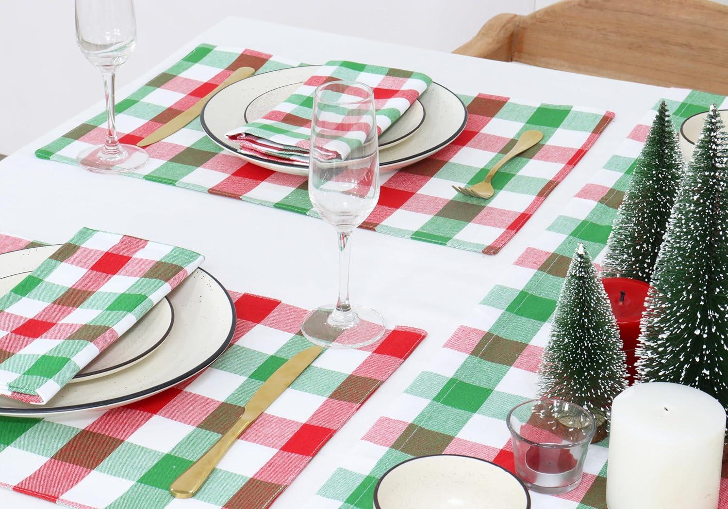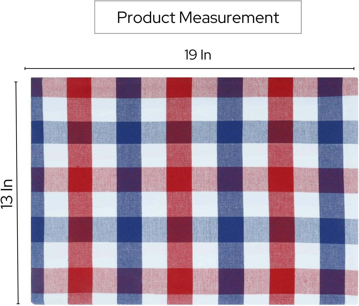 - Get your hands on our exclusive PurpleEssences 4th of July Buffalo Plaid Placemats, Set of 4, Washable Spill Proof Double Layer Woven Checkered placemat for Dining Table and Kitchen - 13 x 19 Inch - Labor Day - Red Blue and White(Red Green and White) collection, now at a discounted price.