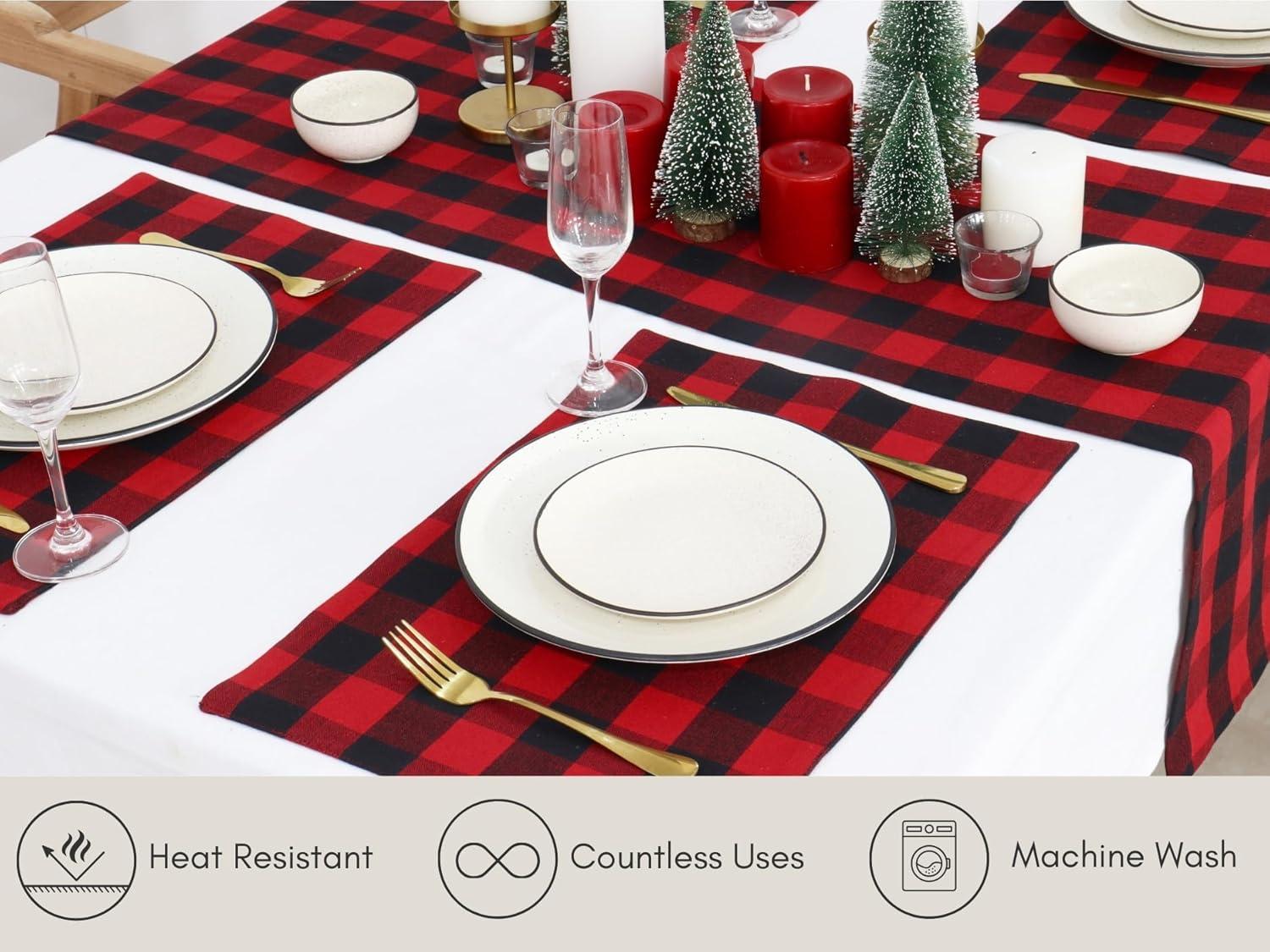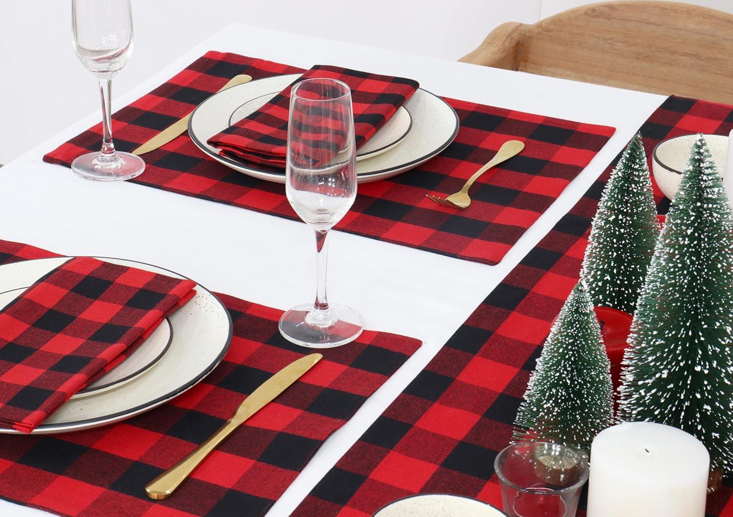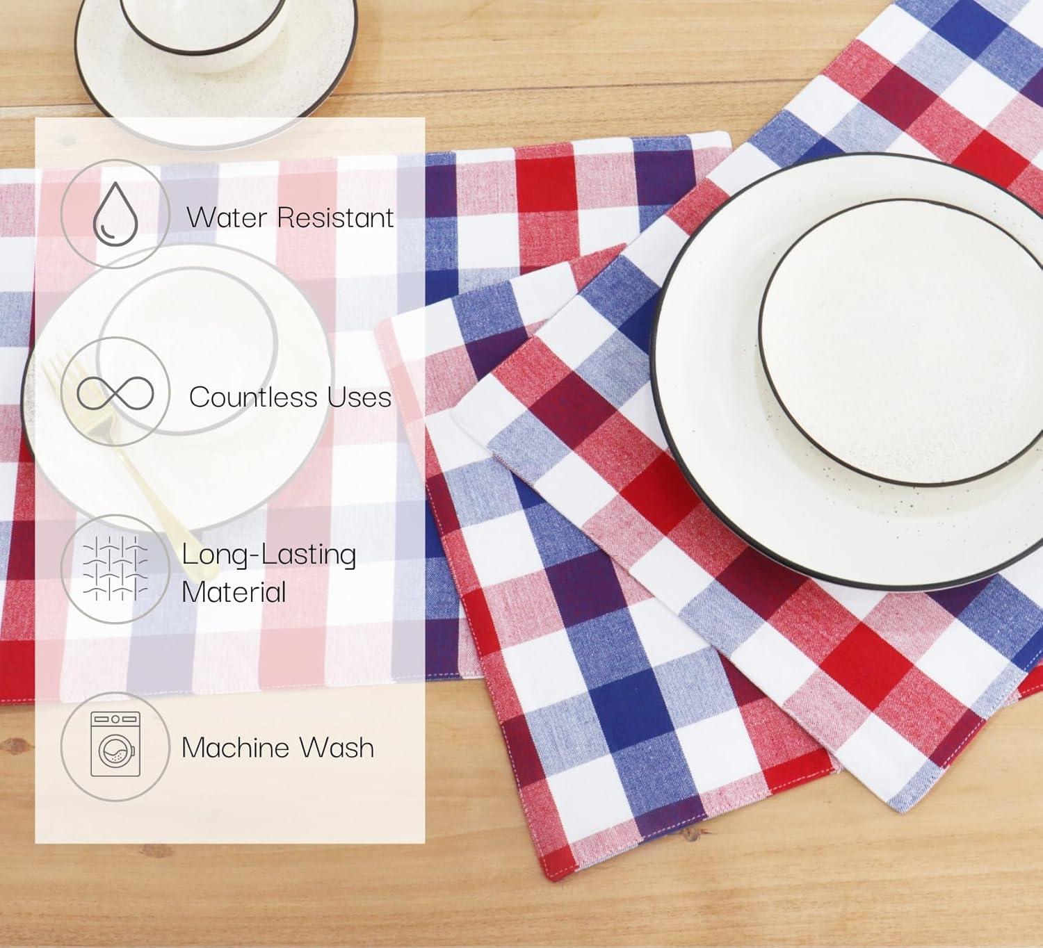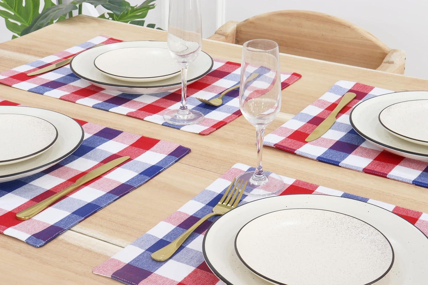 - Don't break the bank! Get the PurpleEssences 4th of July Buffalo Plaid Placemats, Set of 4, Washable Spill Proof Double Layer Woven Checkered placemat for Dining Table and Kitchen - 13 x 19 Inch - Labor Day - Red Blue and White(Red and Black) you want at a price you can afford during our markdown sale.