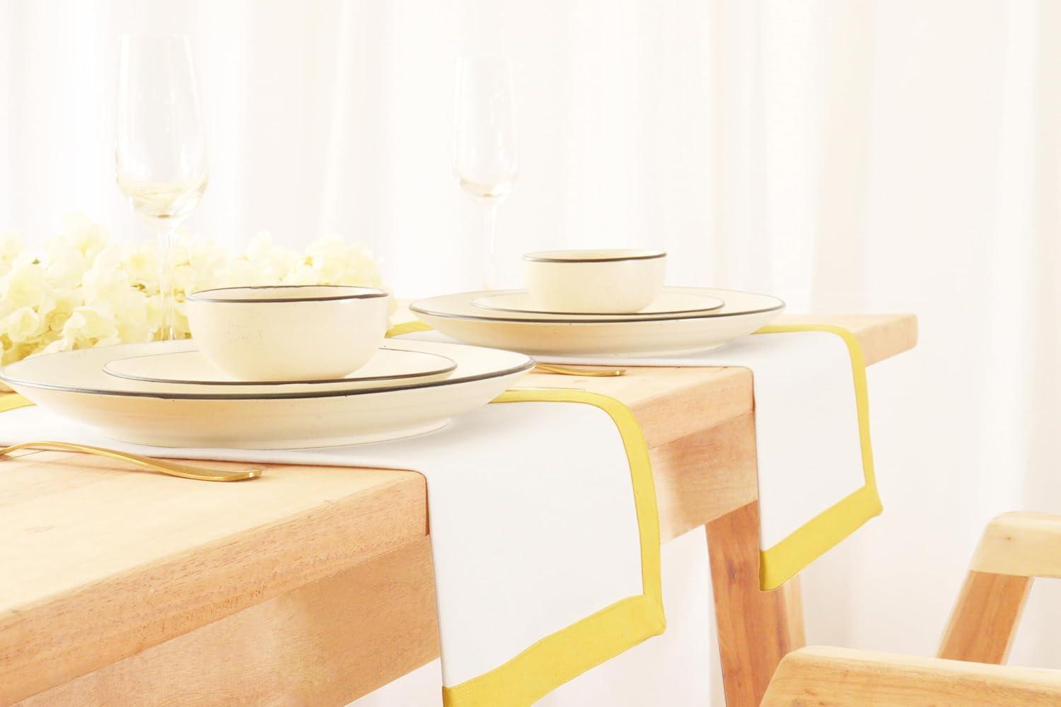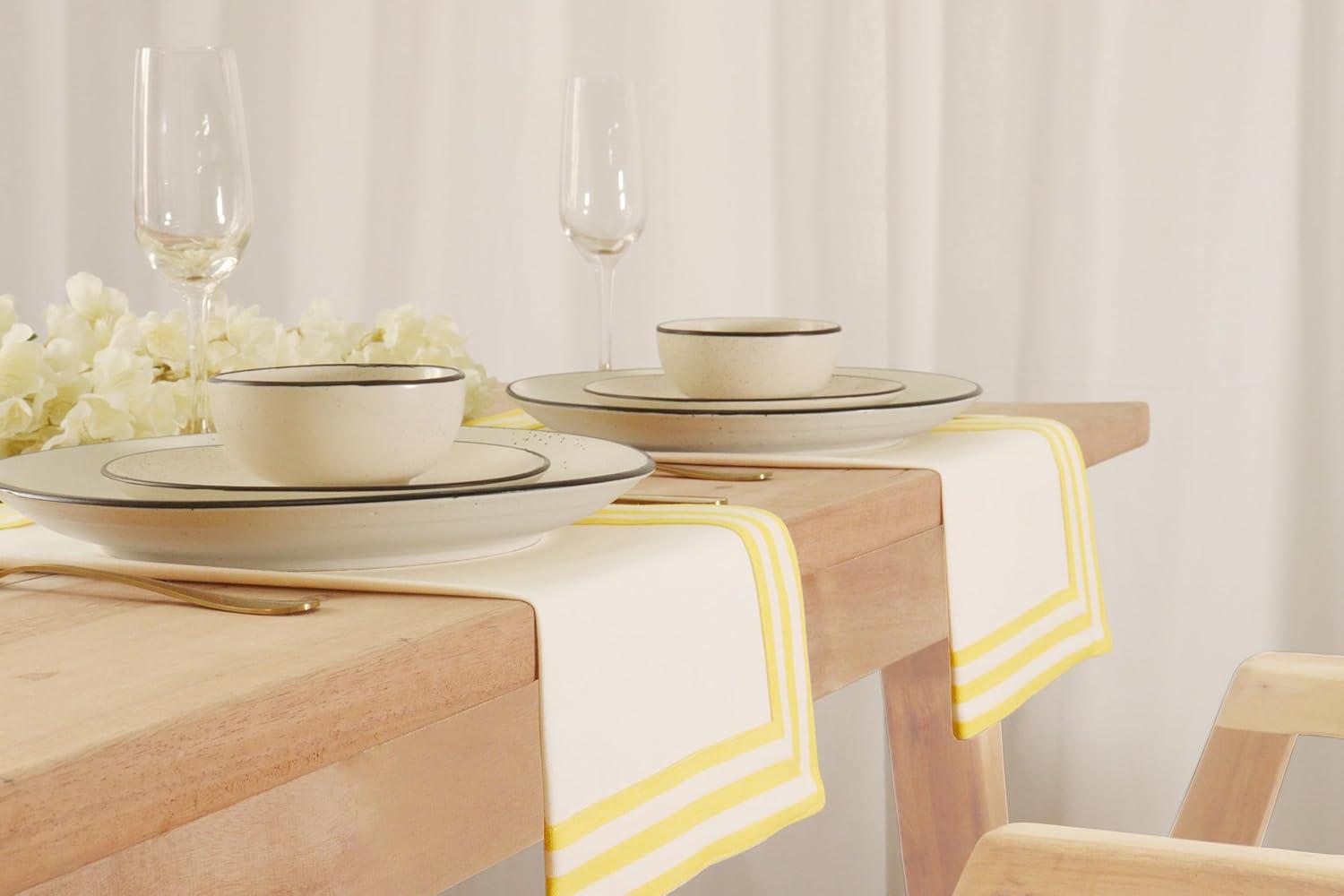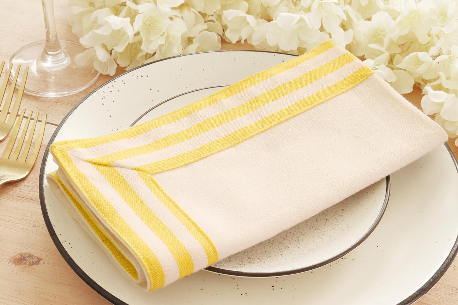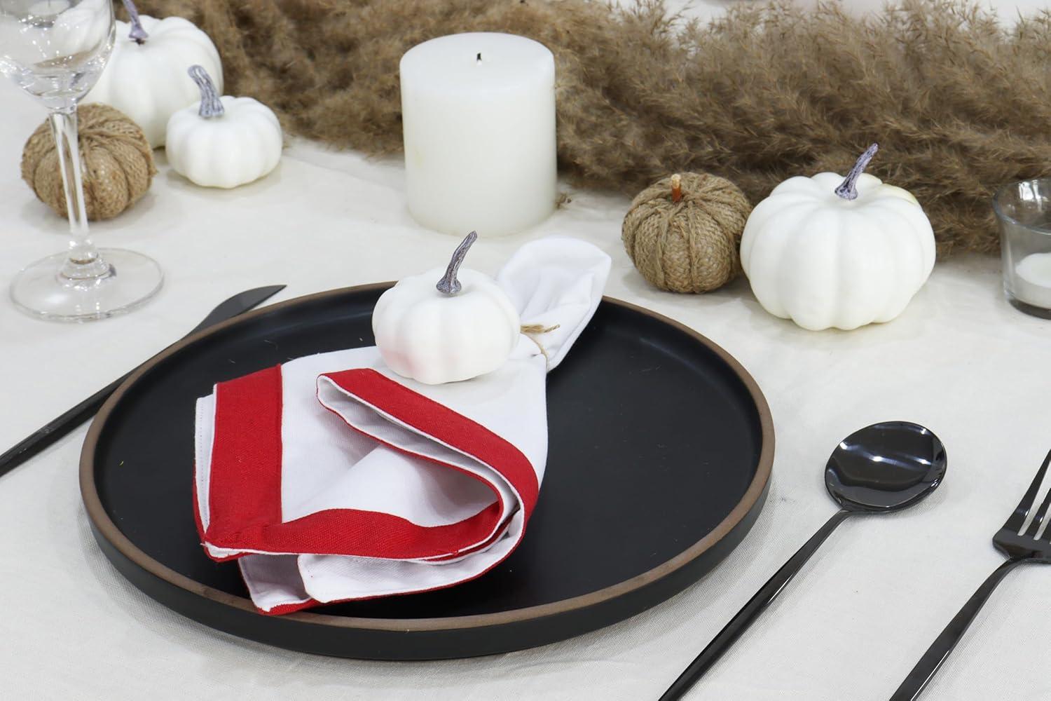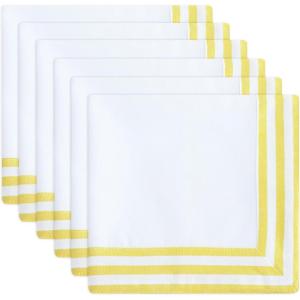 PurpleEssences Black and White Cloth Napkins – 18×18 Inch Set of 6-100% Cotton Elegant Hemstitch Dinner Napkins with 1.5″ Stripe Edges, Durable, Washable – Fall Thanksgiving Halloween Table Décor(Yellow)