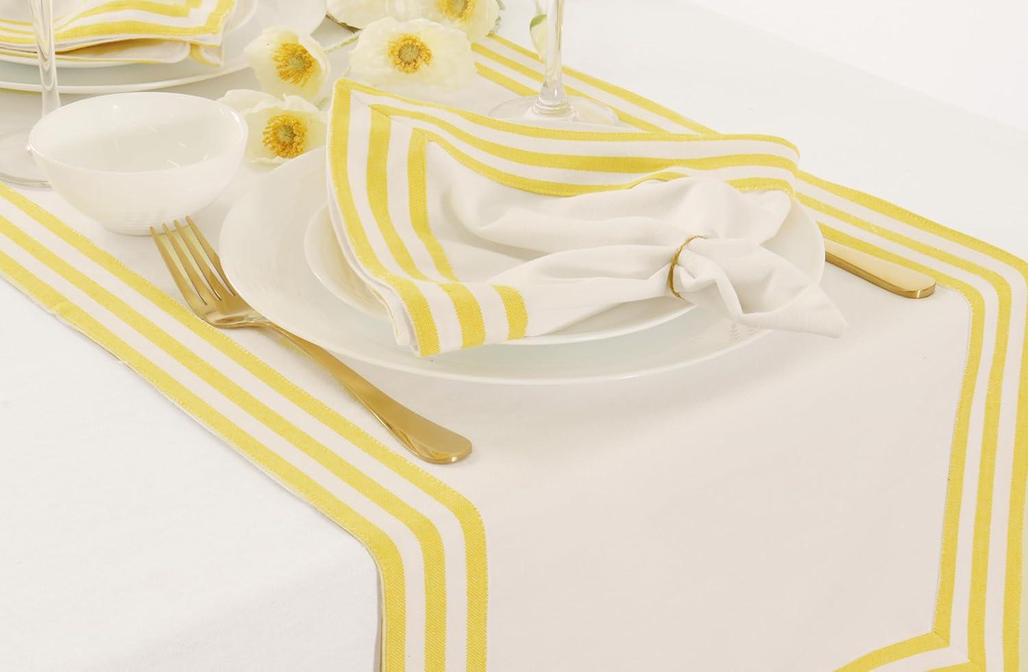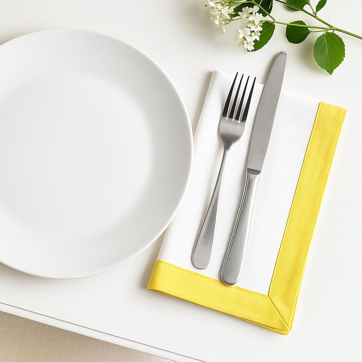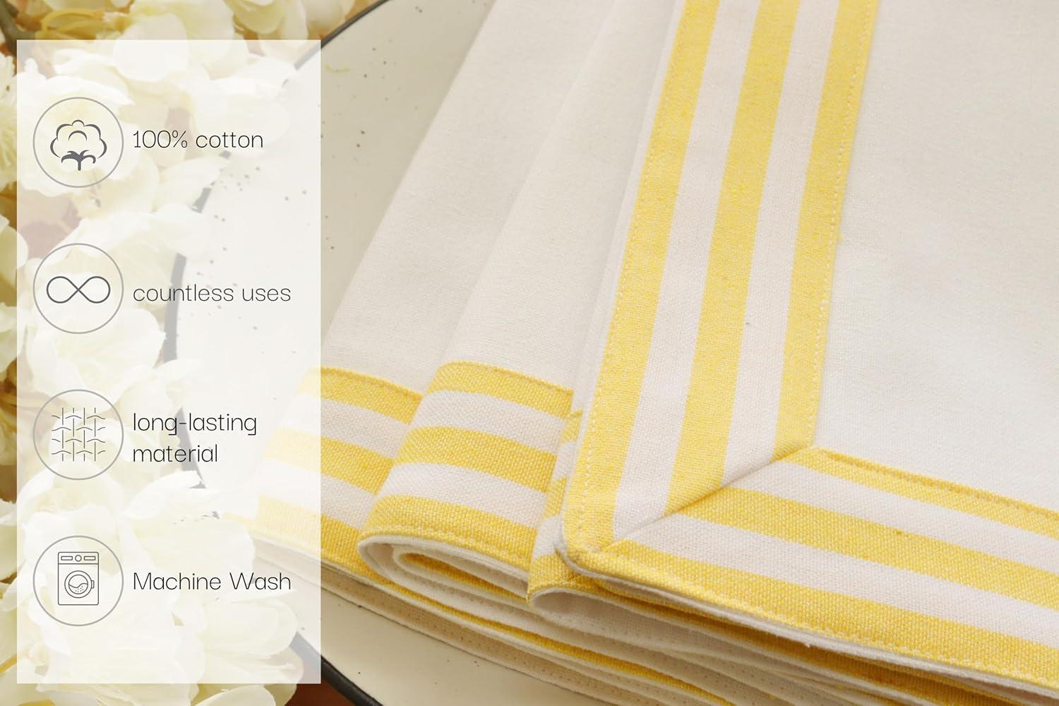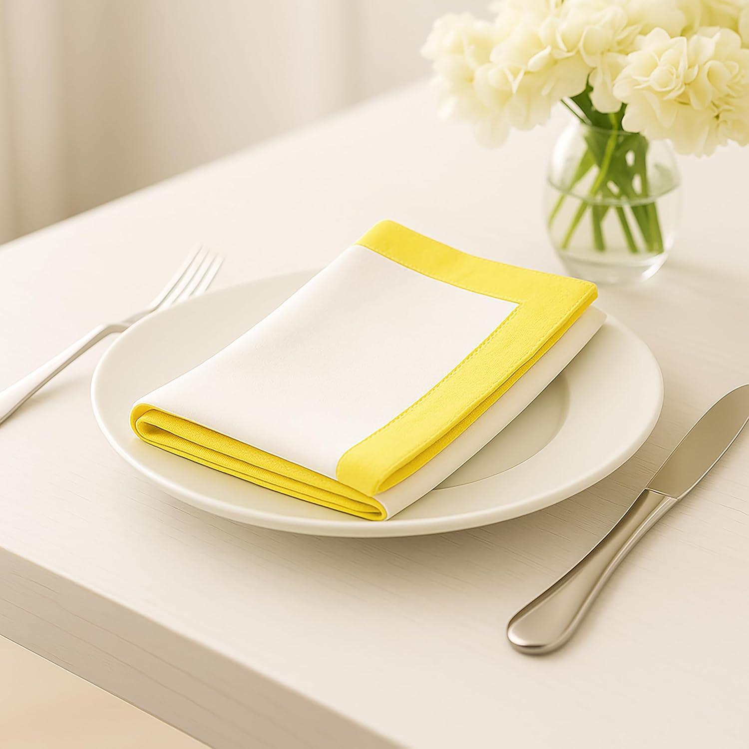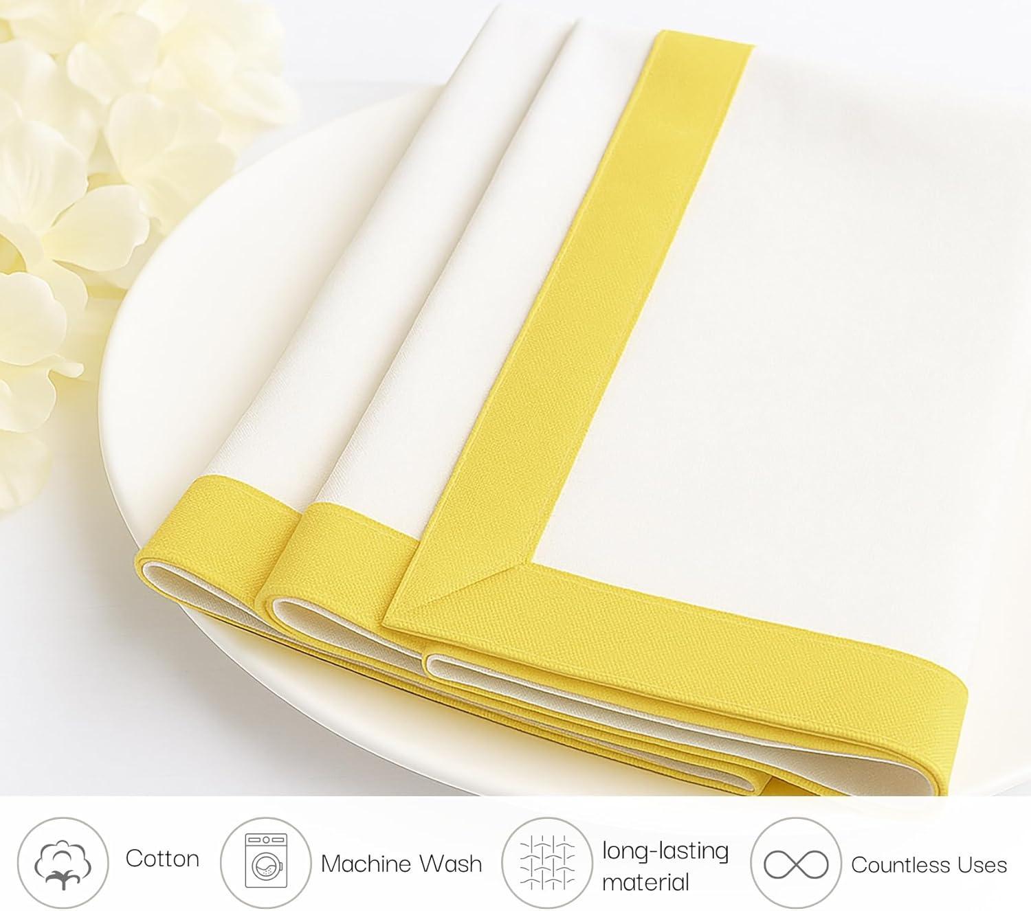 PurpleEssences Aqua Blue and White Cloth Napkins – 18×18 Set of 6-100% Cotton Elegant Hemstitch Dinner Napkins with 1″ Solid Edges, Durable, Washable – Fall Thanksgiving Table Décor(Yellow White)