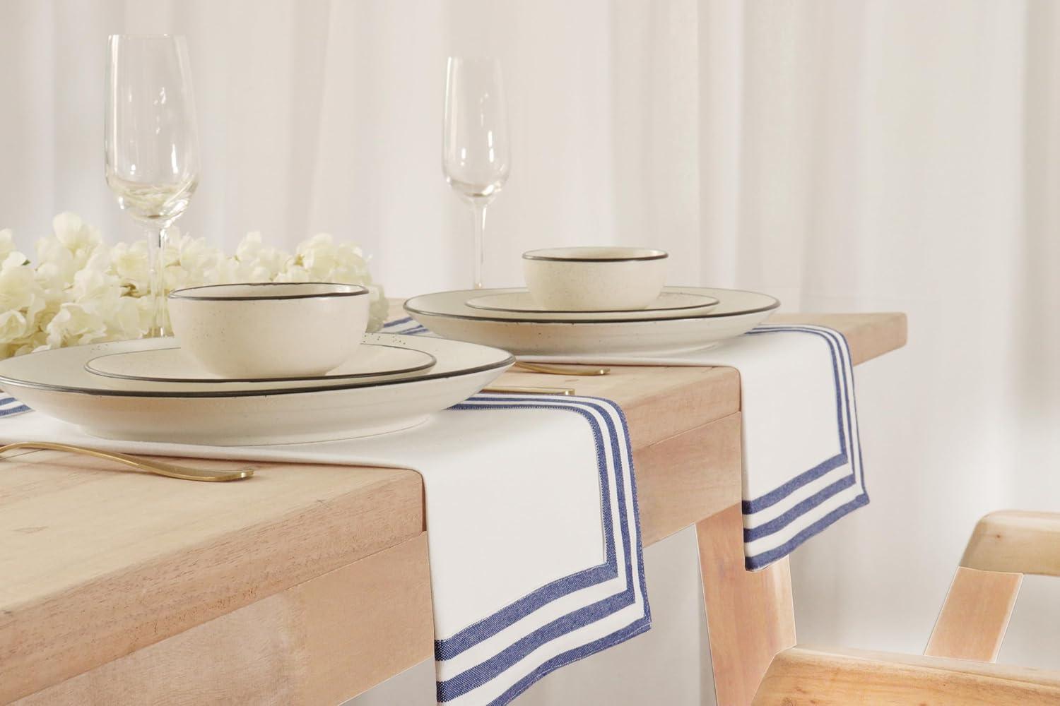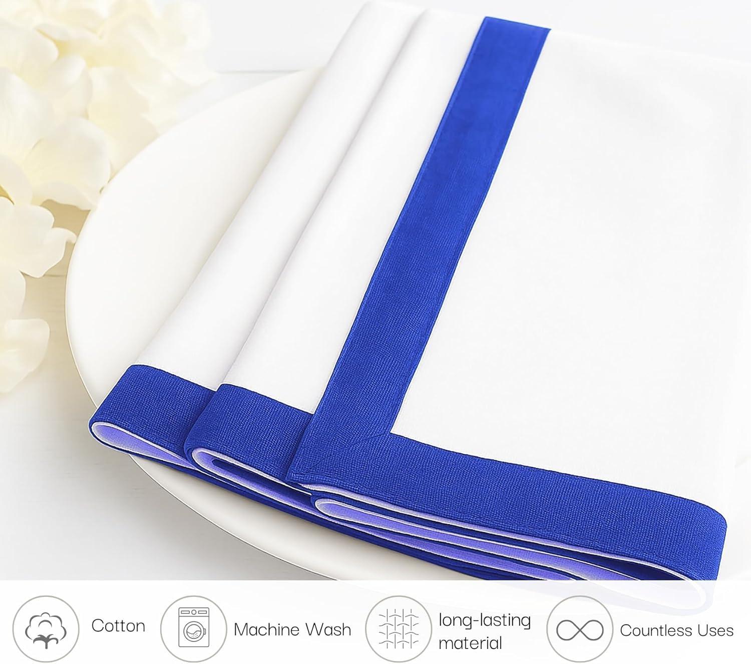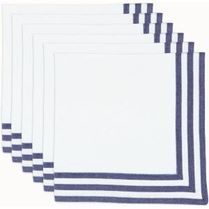 PurpleEssences Black and White Cloth Napkins – 18×18 Inch Set of 6-100% Cotton Elegant Hemstitch Dinner Napkins with 1.5″ Stripe Edges, Durable, Washable – Fall Thanksgiving Halloween Table Décor(Blue)