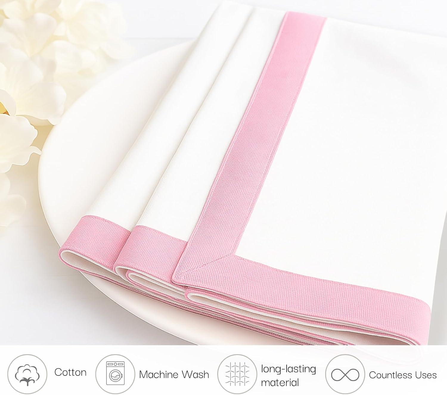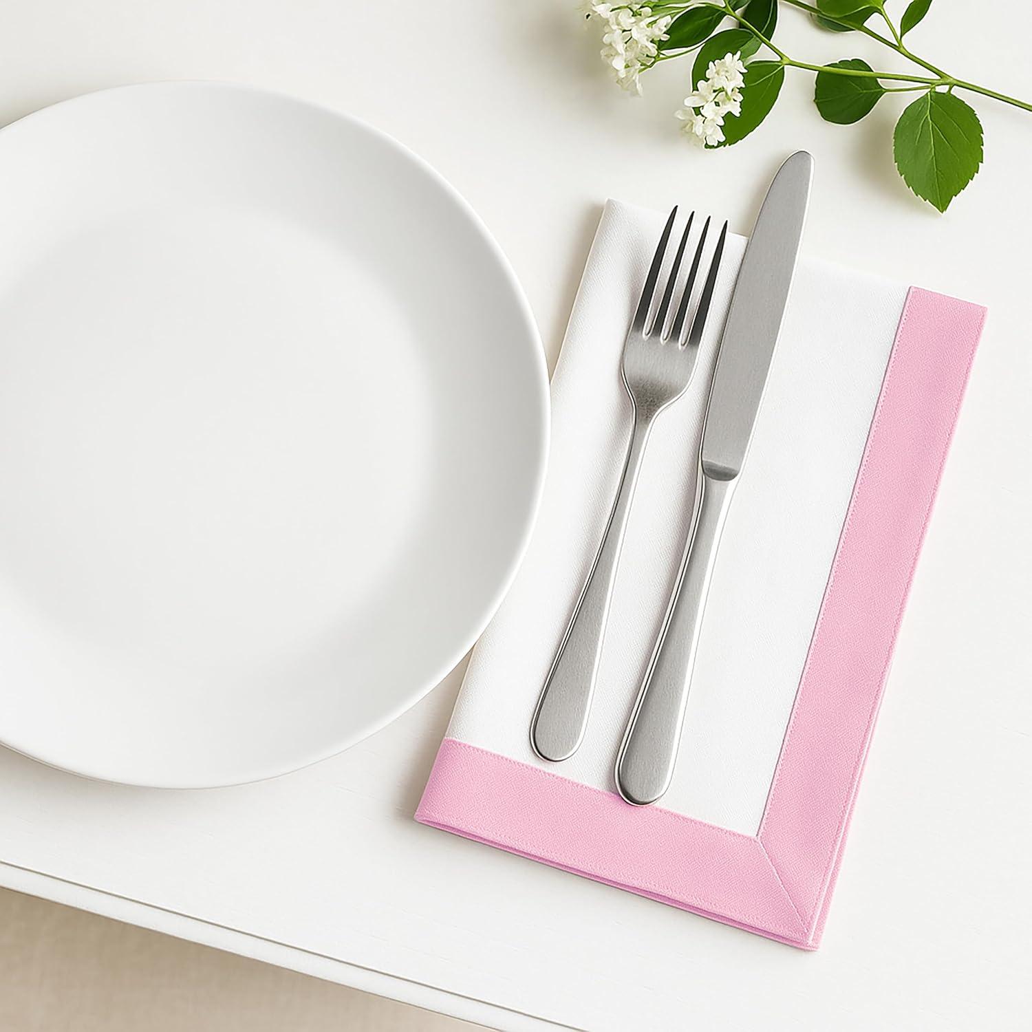 PurpleEssences Aqua Blue and White Cloth Napkins – 18×18 Set of 6-100% Cotton Elegant Hemstitch Dinner Napkins with 1″ Solid Edges, Durable, Washable – Fall Thanksgiving Table Décor(Blush Pink White)