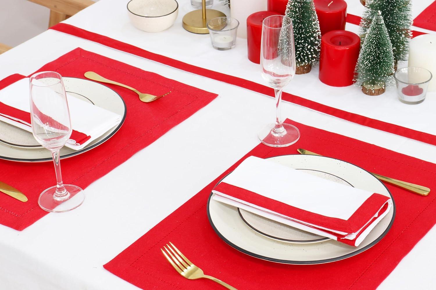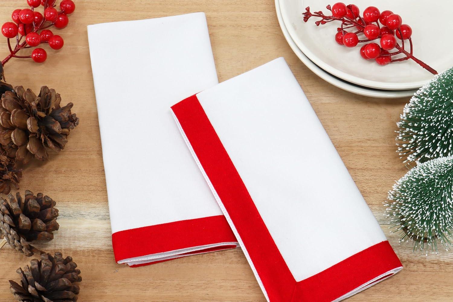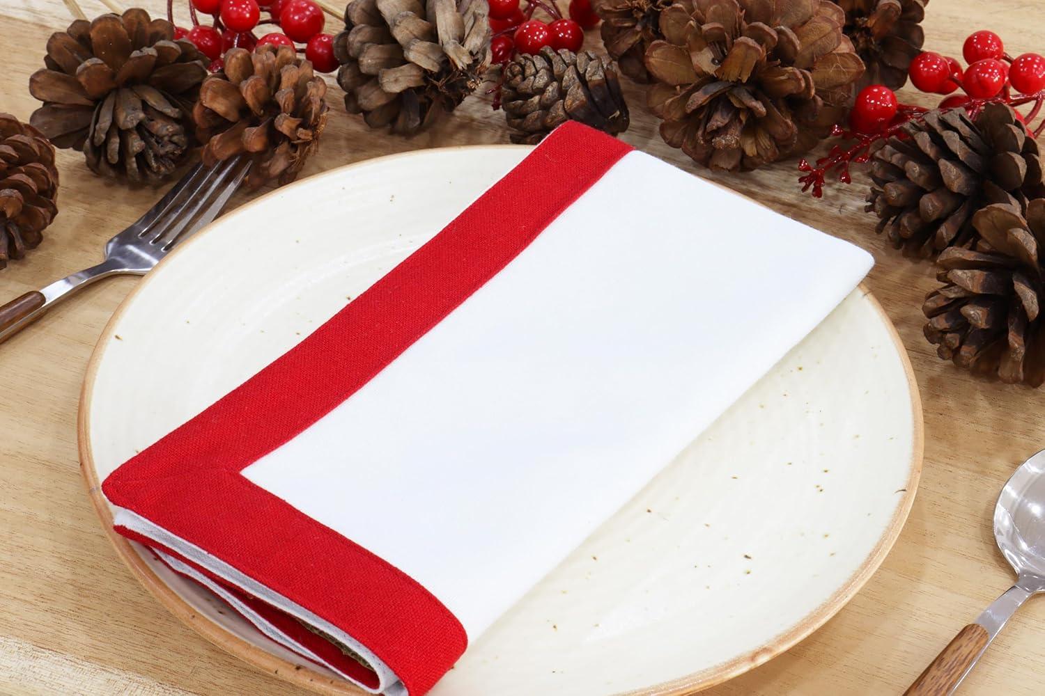 PurpleEssences Aqua Blue and White Cloth Napkins – 18×18 Set of 6-100% Cotton Elegant Hemstitch Dinner Napkins with 1″ Solid Edges, Durable, Washable – Fall Thanksgiving Table Décor(Red White)