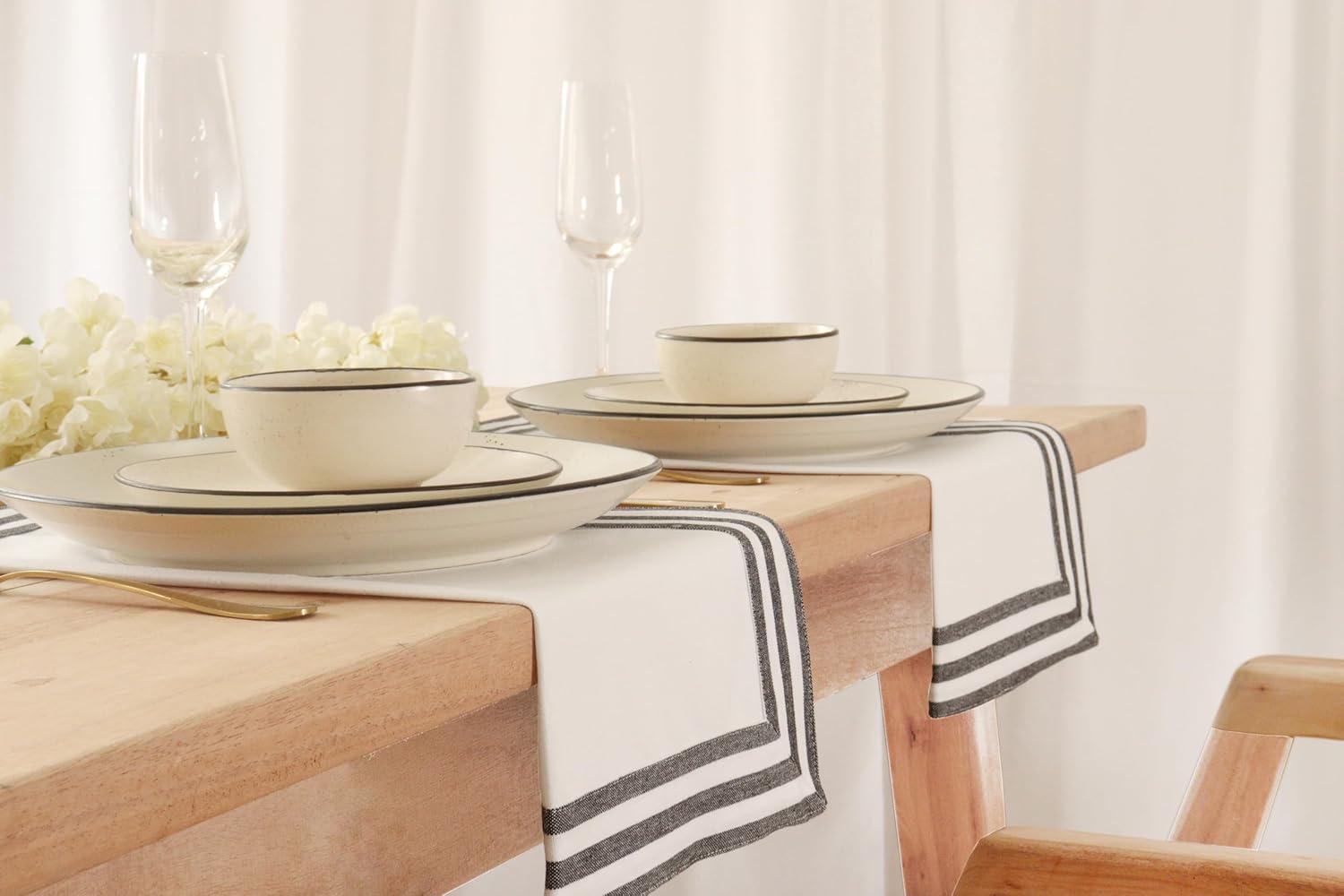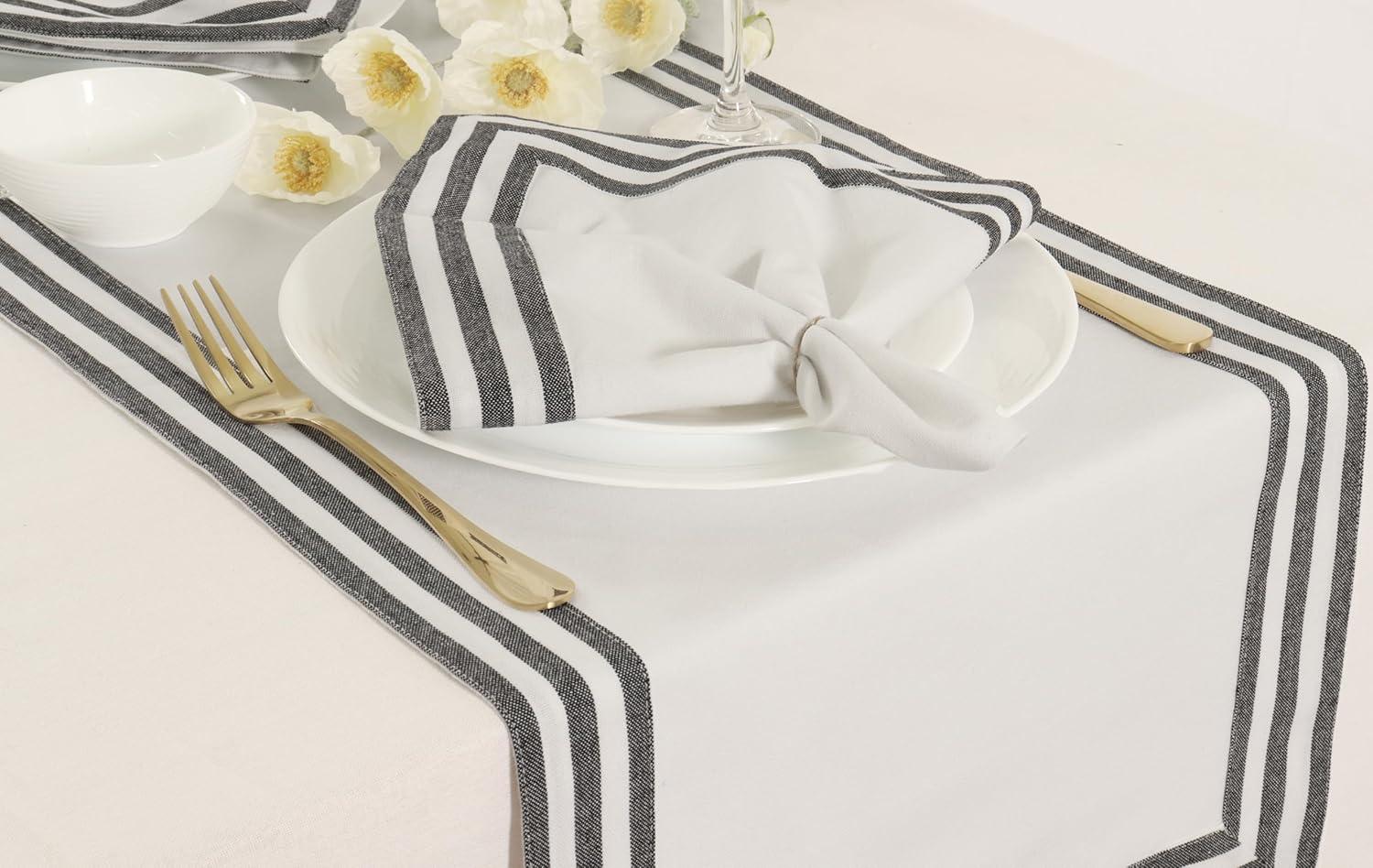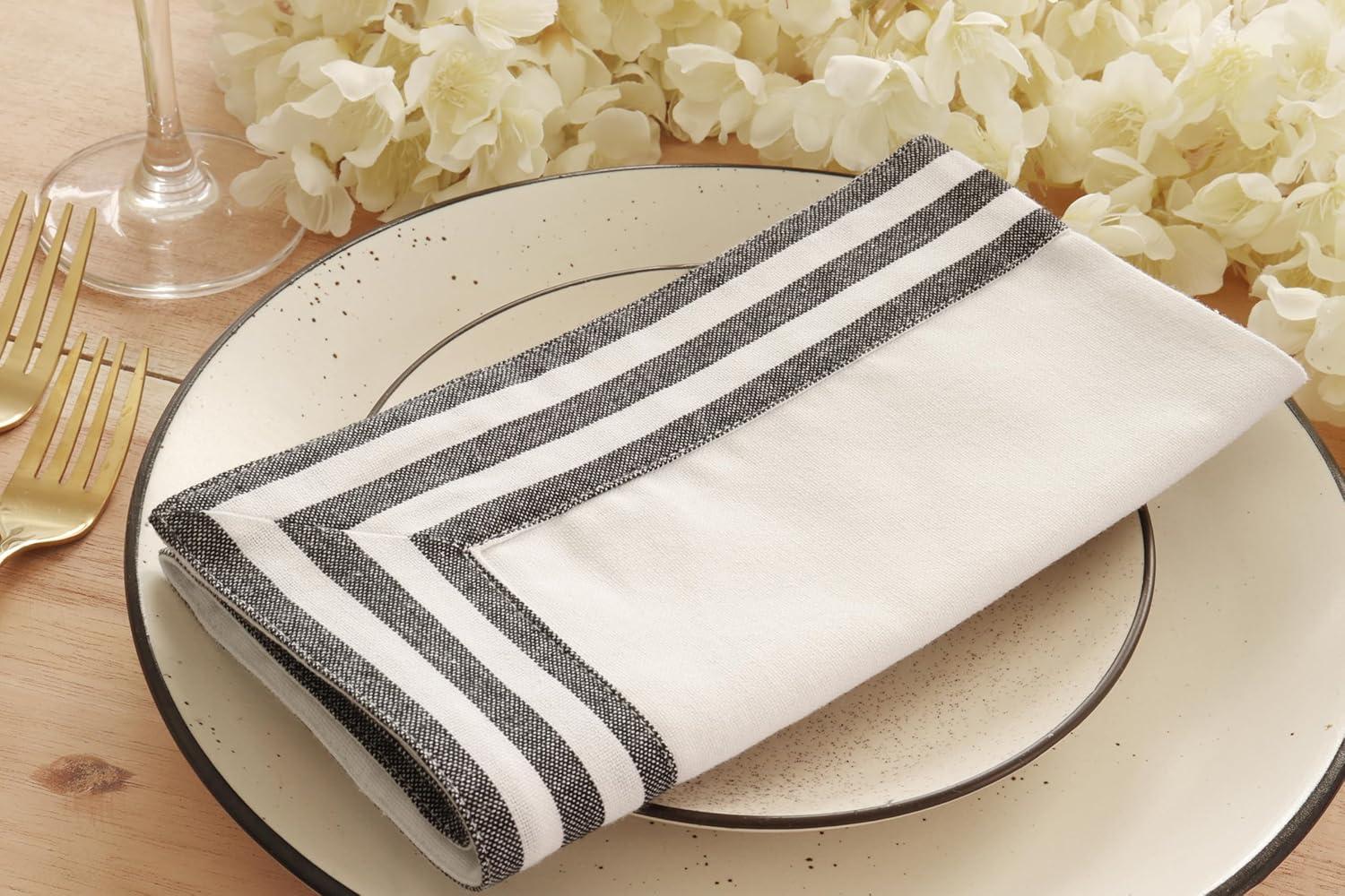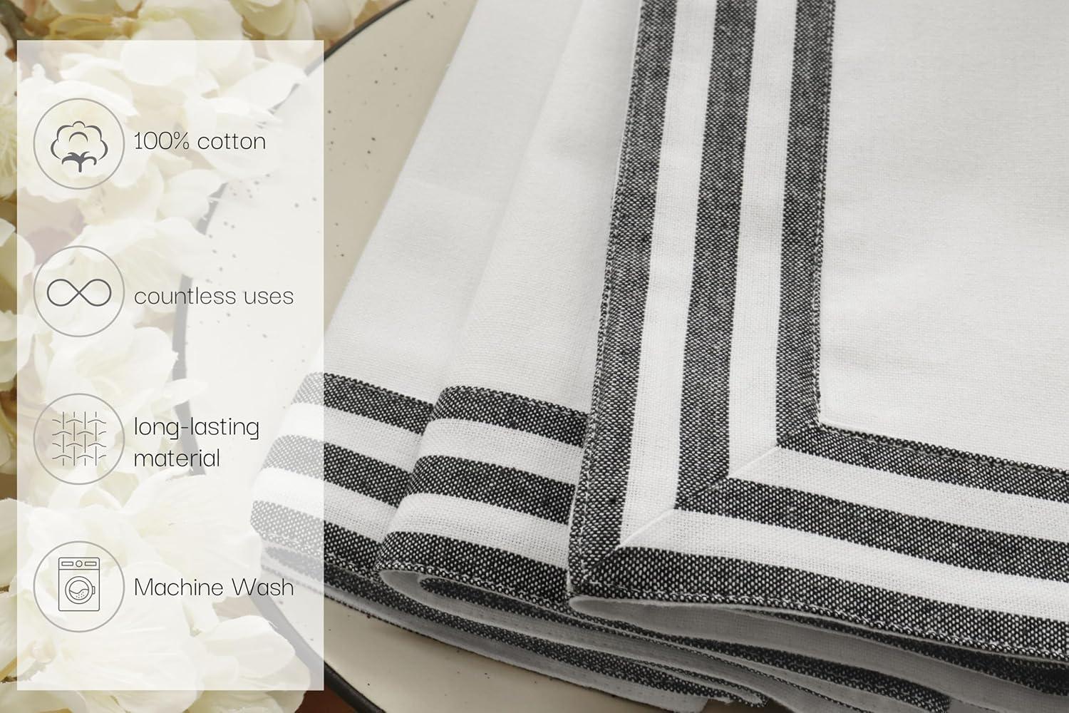 PurpleEssences Black and White Cloth Napkins – 18×18 Inch Set of 6-100% Cotton Elegant Hemstitch Dinner Napkins with 1.5″ Stripe Edges, Durable, Washable – Fall Thanksgiving Halloween Table Décor(Black)