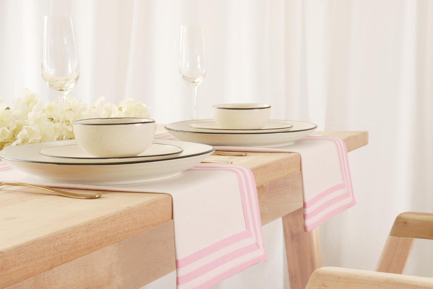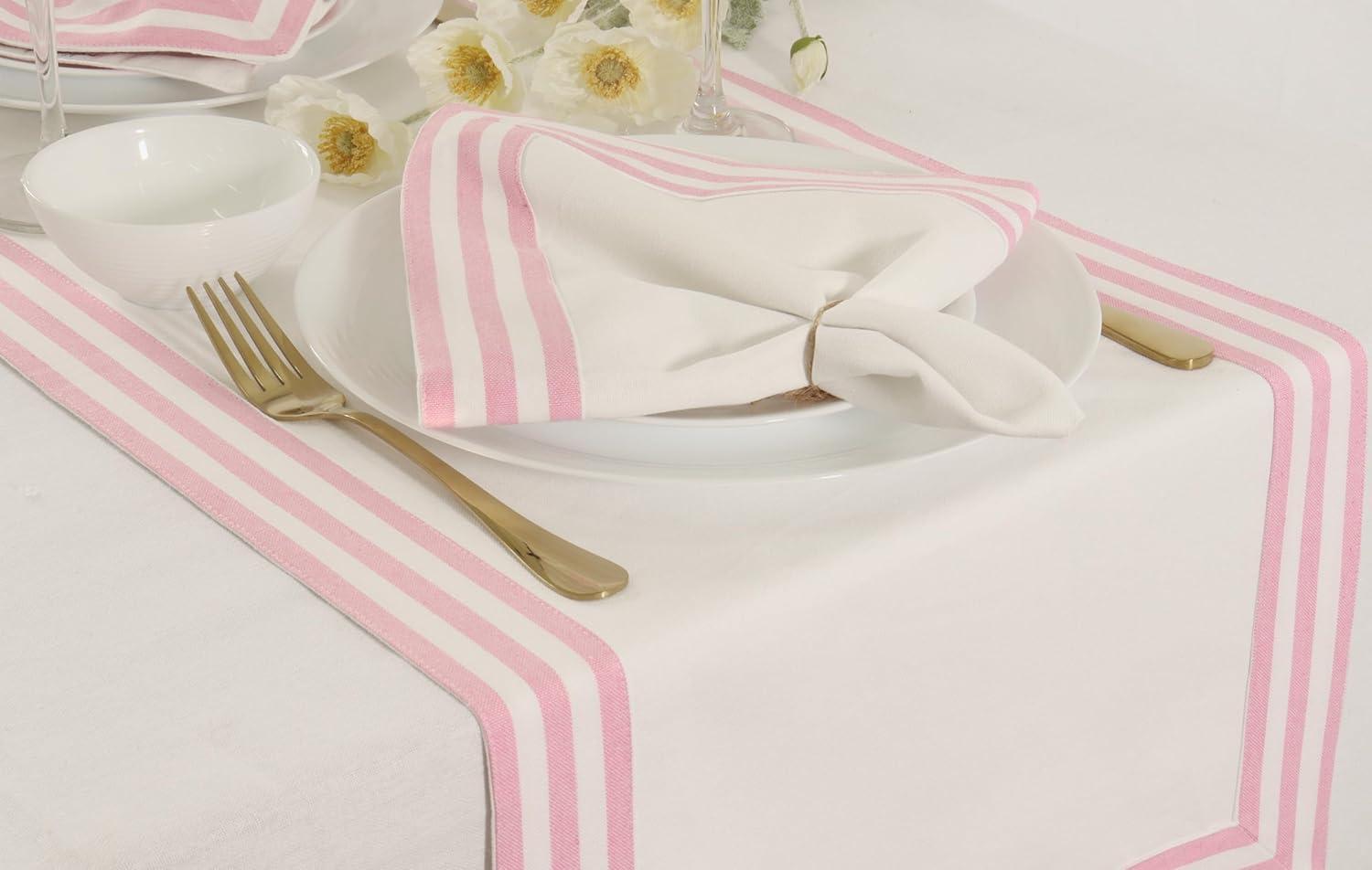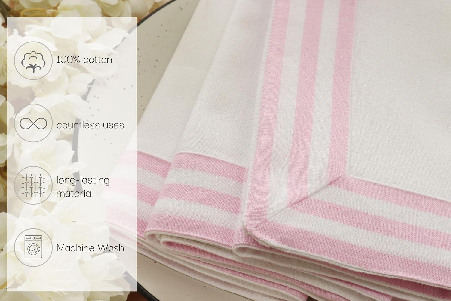 PurpleEssences Black and White Cloth Napkins – 18×18 Inch Set of 6-100% Cotton Elegant Hemstitch Dinner Napkins with 1.5″ Stripe Edges, Durable, Washable – Fall Thanksgiving Halloween Table Décor(Blush Pink)