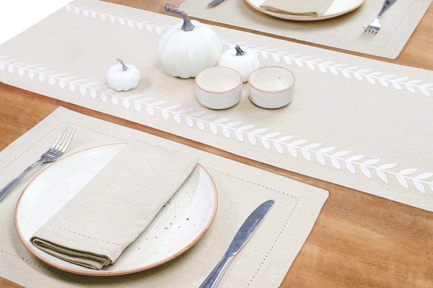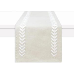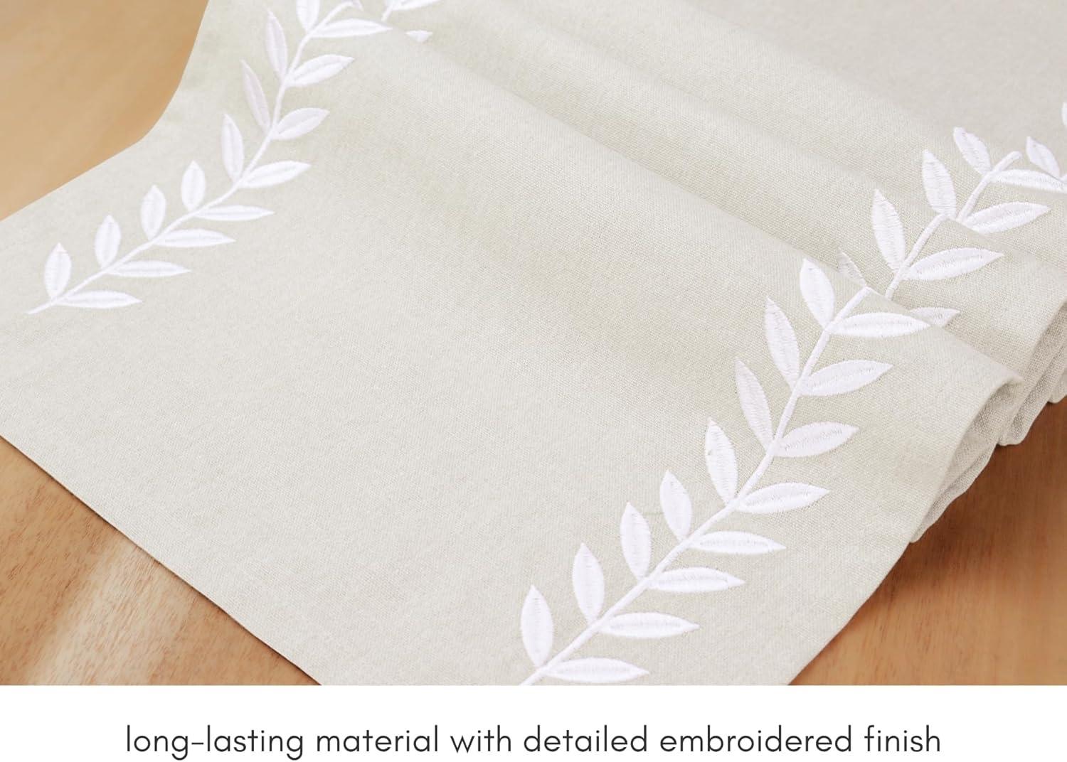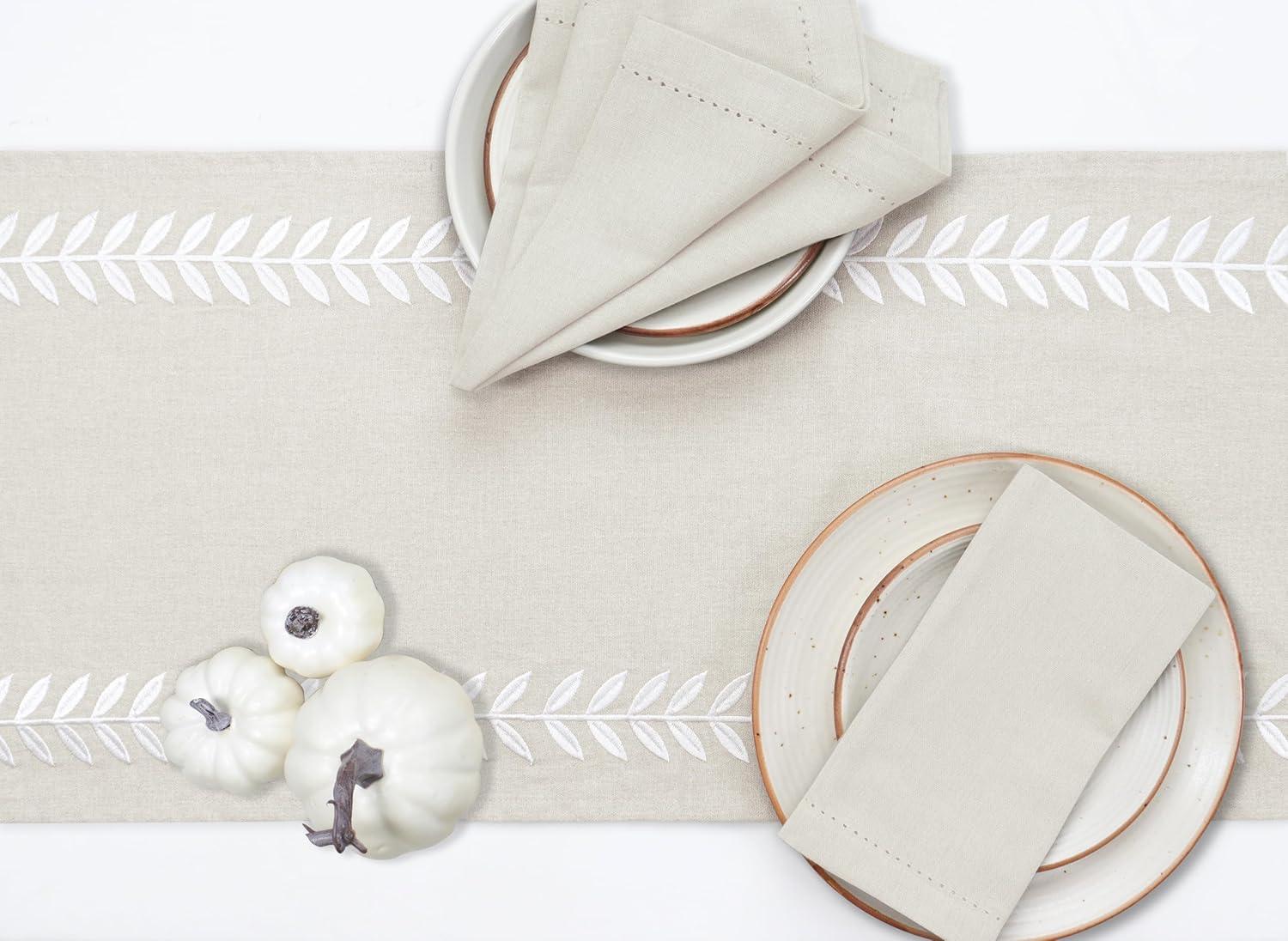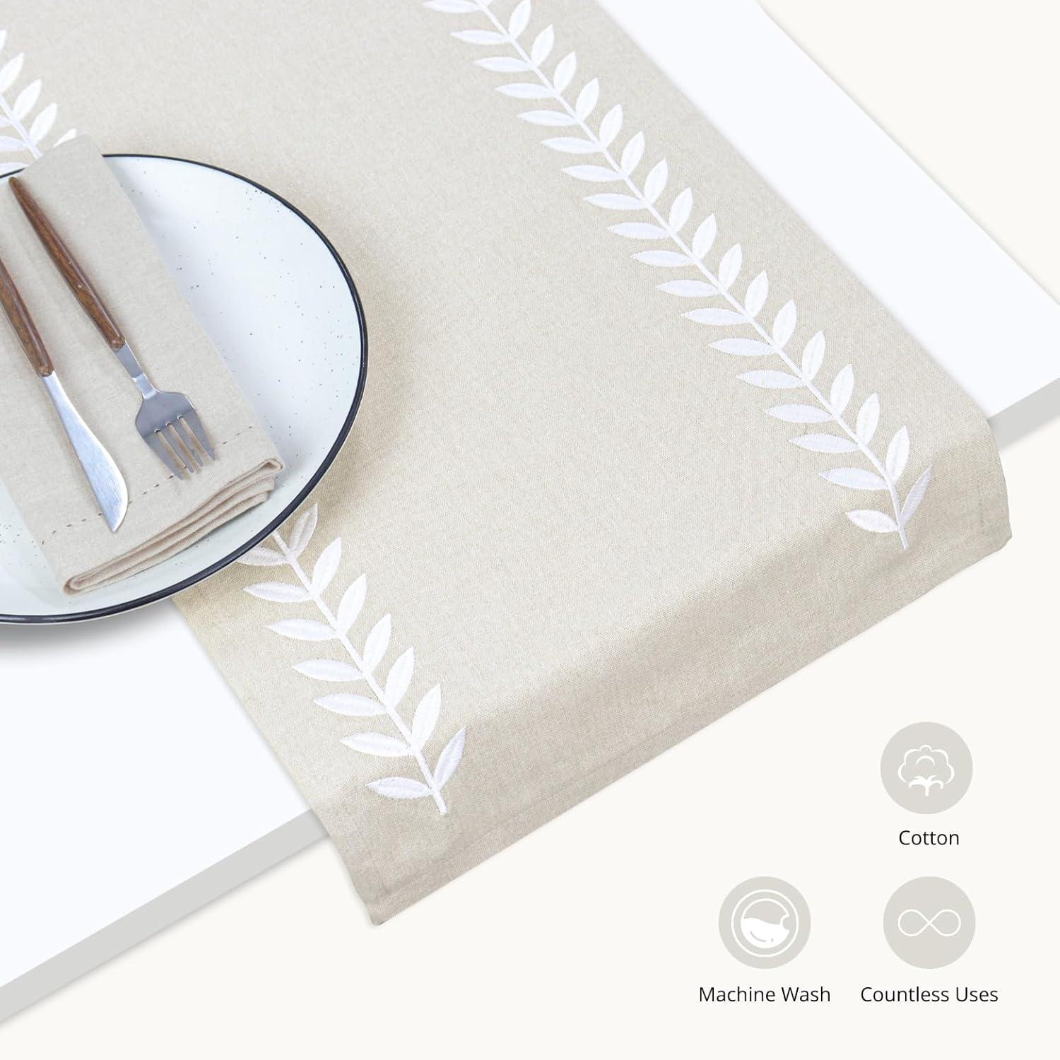 PurpleEssences 13×72 Inch Embroidered Willow Leaf Table Runner – Rustic Farmhouse Cotton Décor for Dining Table, Kitchen, or Dresser for Everyday – Christmas Holiday Winter – Royal Linen and White