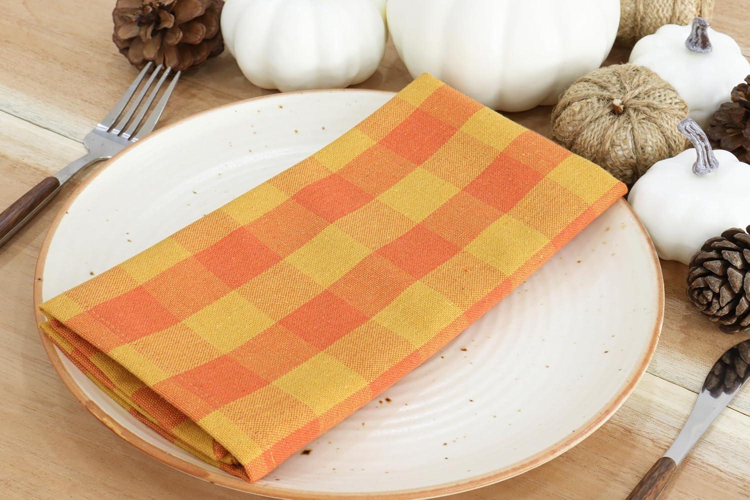 PurpleEssences Buffalo Plaid Cloth Napkins – Mitered Corners – 4th of July Gingham Check Dinner Napkin – Set of 12-100% Cotton – 18×18 Inch – Reusable Washable – Labor Day – Red White Blue(Orange Golden Yellow)