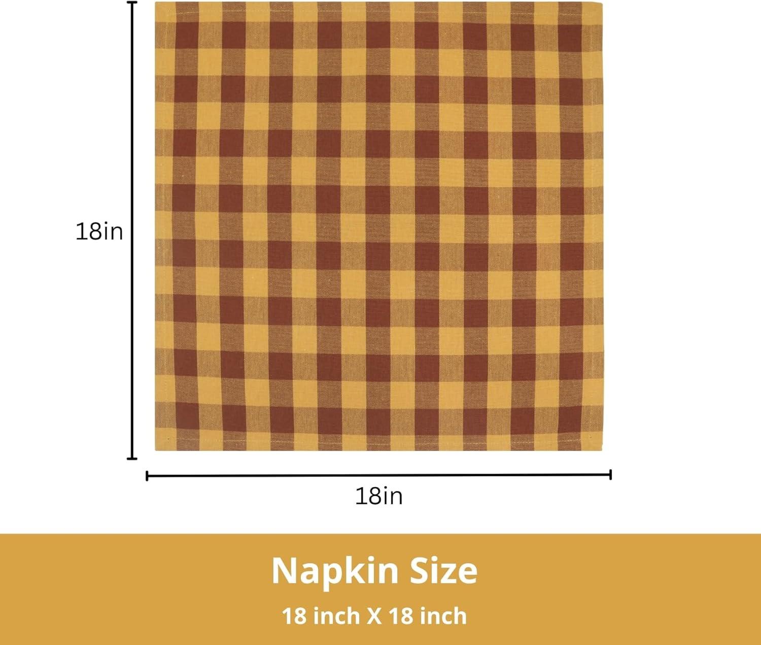 PurpleEssences Buffalo Plaid Cloth Napkins – Mitered Corners – 4th of July Gingham Check Dinner Napkin – Set of 12-100% Cotton – 18×18 Inch – Reusable Washable – Labor Day – Red White Blue(Golden Yellow Nut Brown)