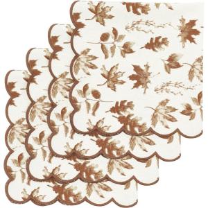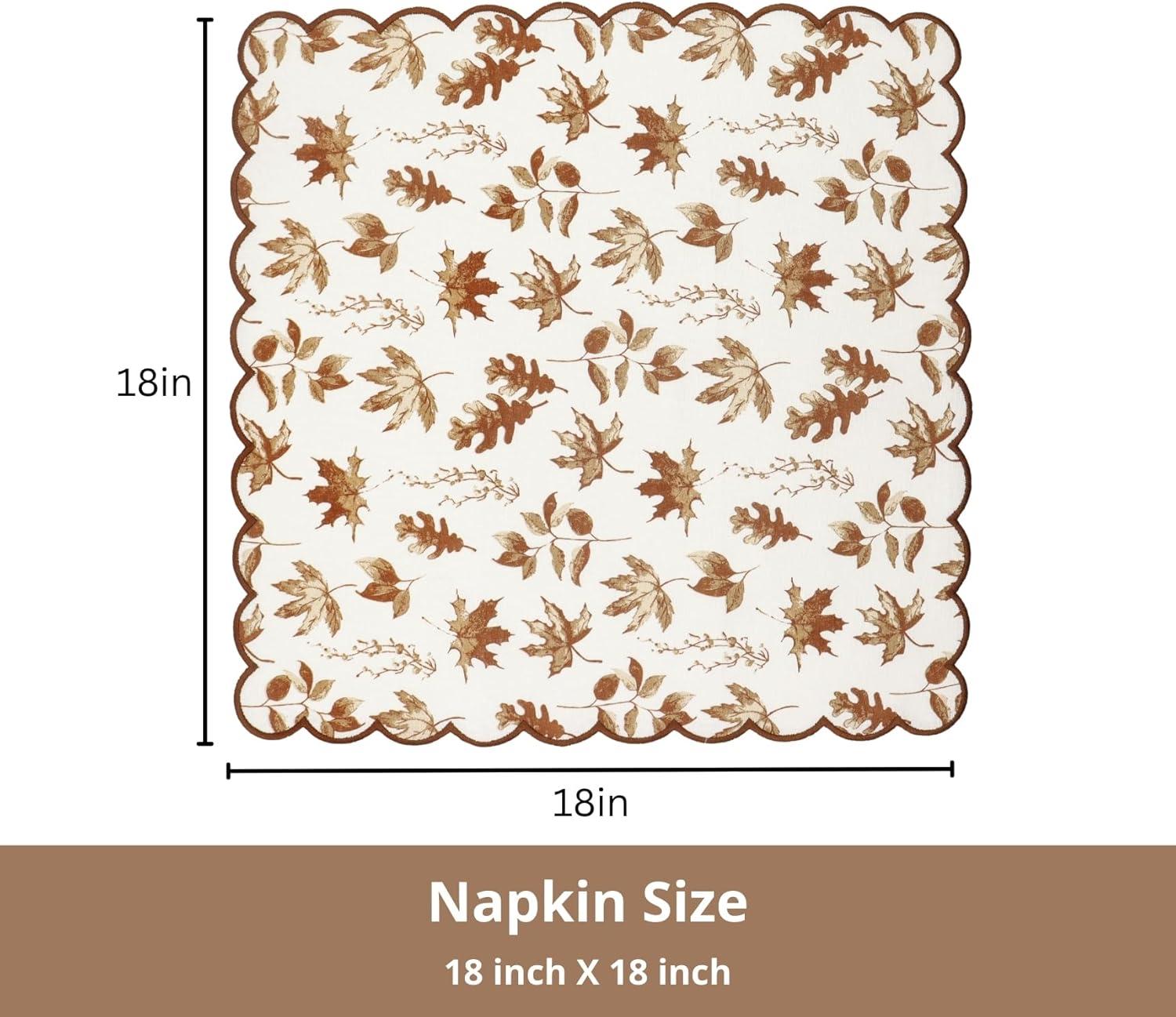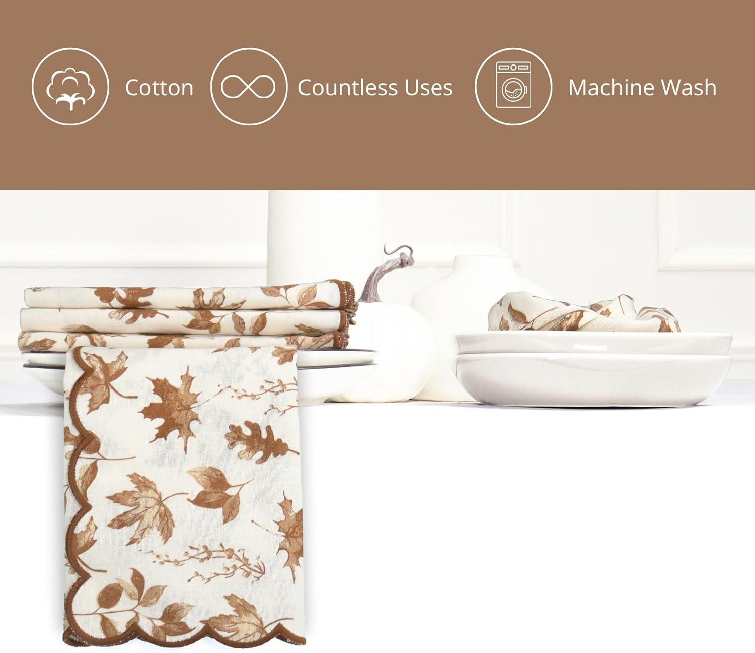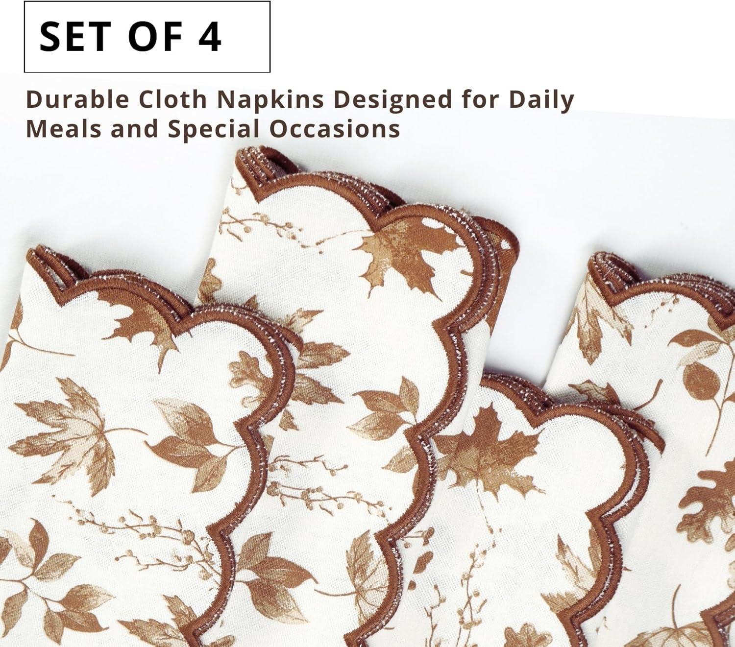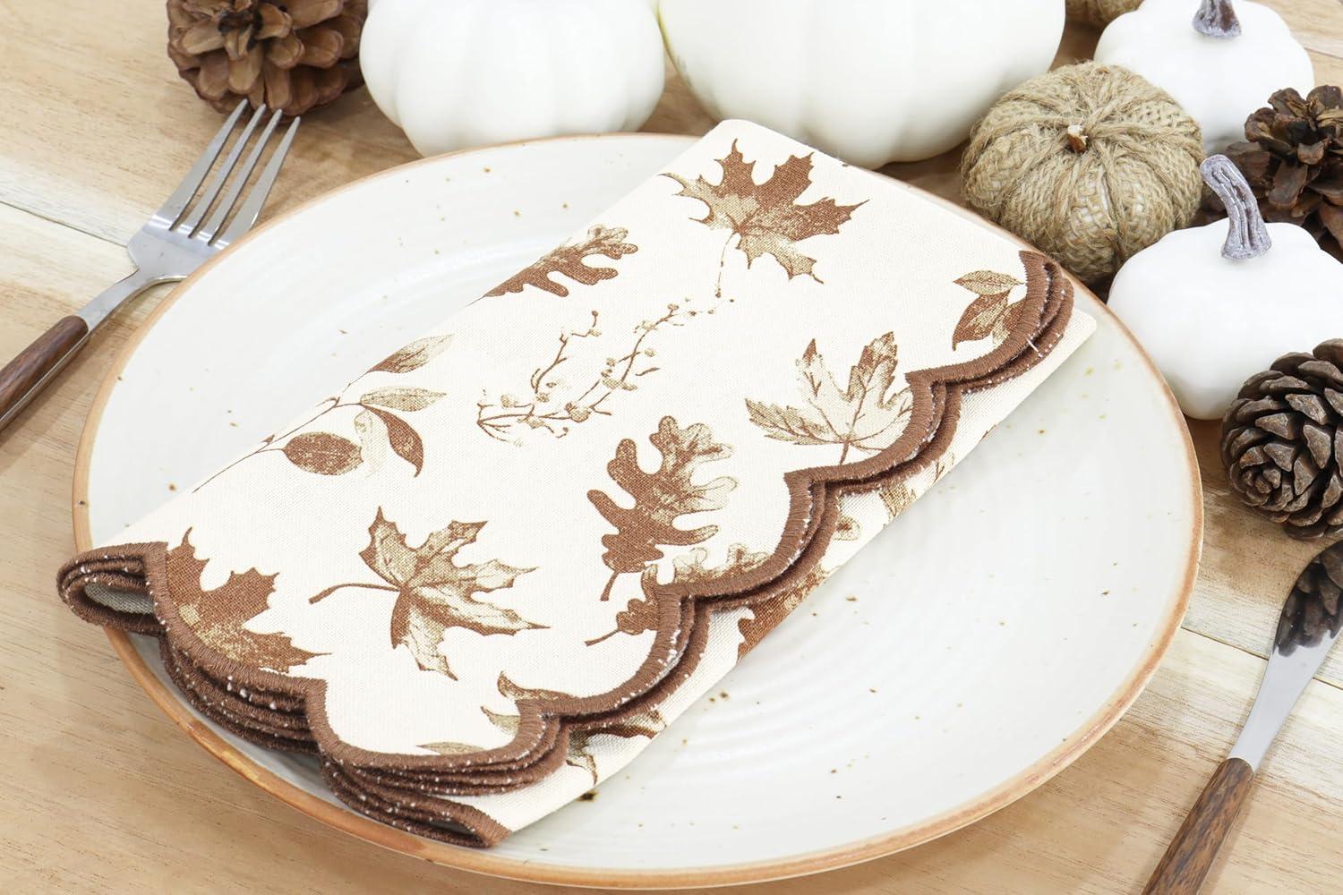 PurpleEssences Scalloped Embroidery Cloth Napkins Table Decor Fall Thanksgiving 100% Cotton Set of 4-18 x 18 inch – Aurelia Edges – Rust(Beige(edges- Brown))