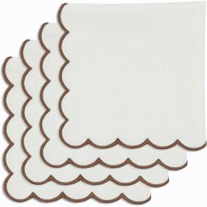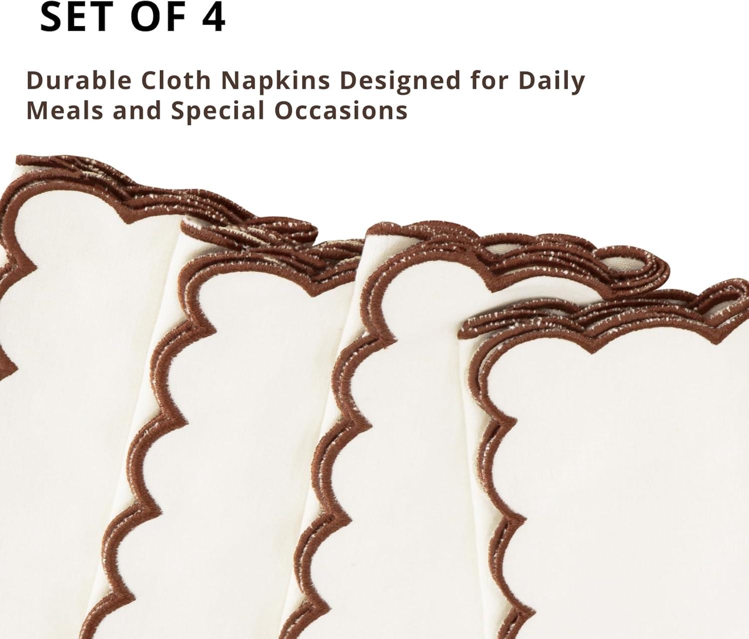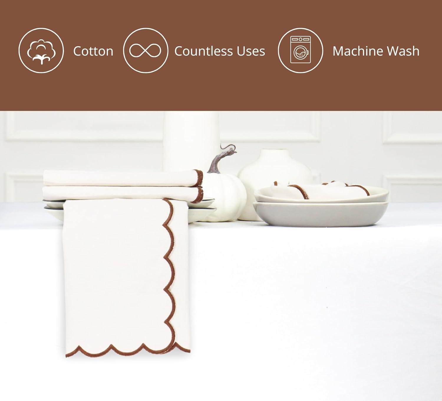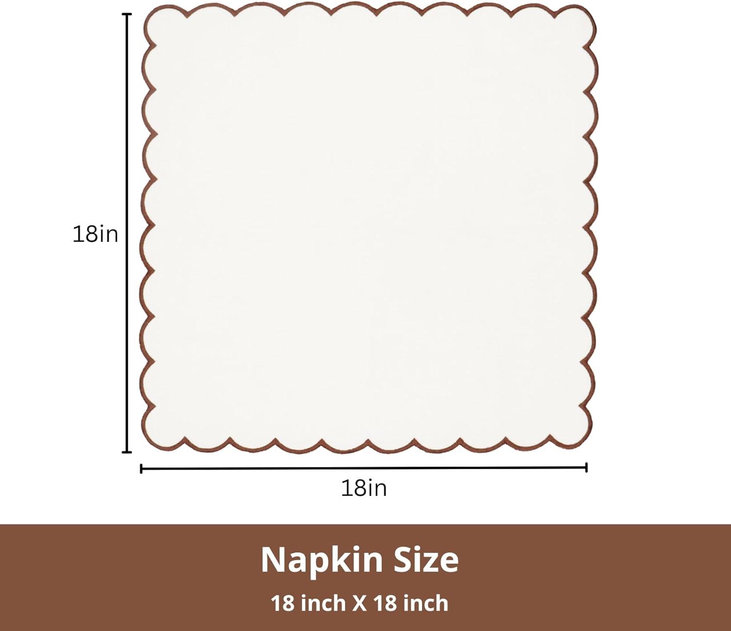 PurpleEssences Scalloped Embroidery Cloth Napkins Table Decor Fall Thanksgiving 100% Cotton Set of 4-18 x 18 inch – Aurelia Edges – Rust(Beige(edges- Brown))