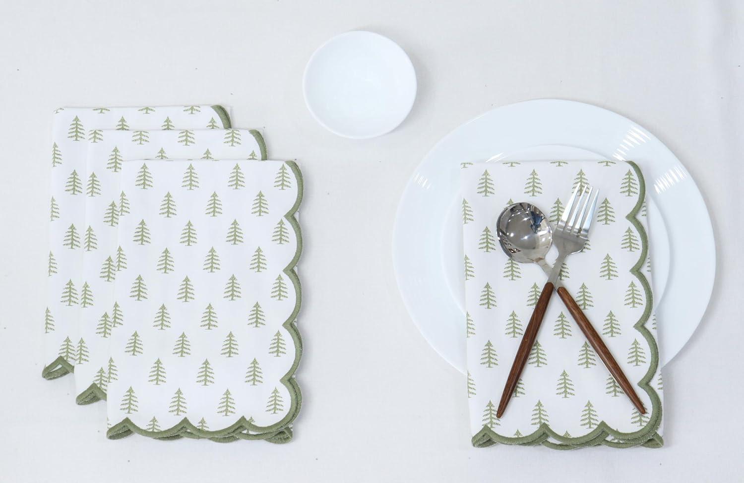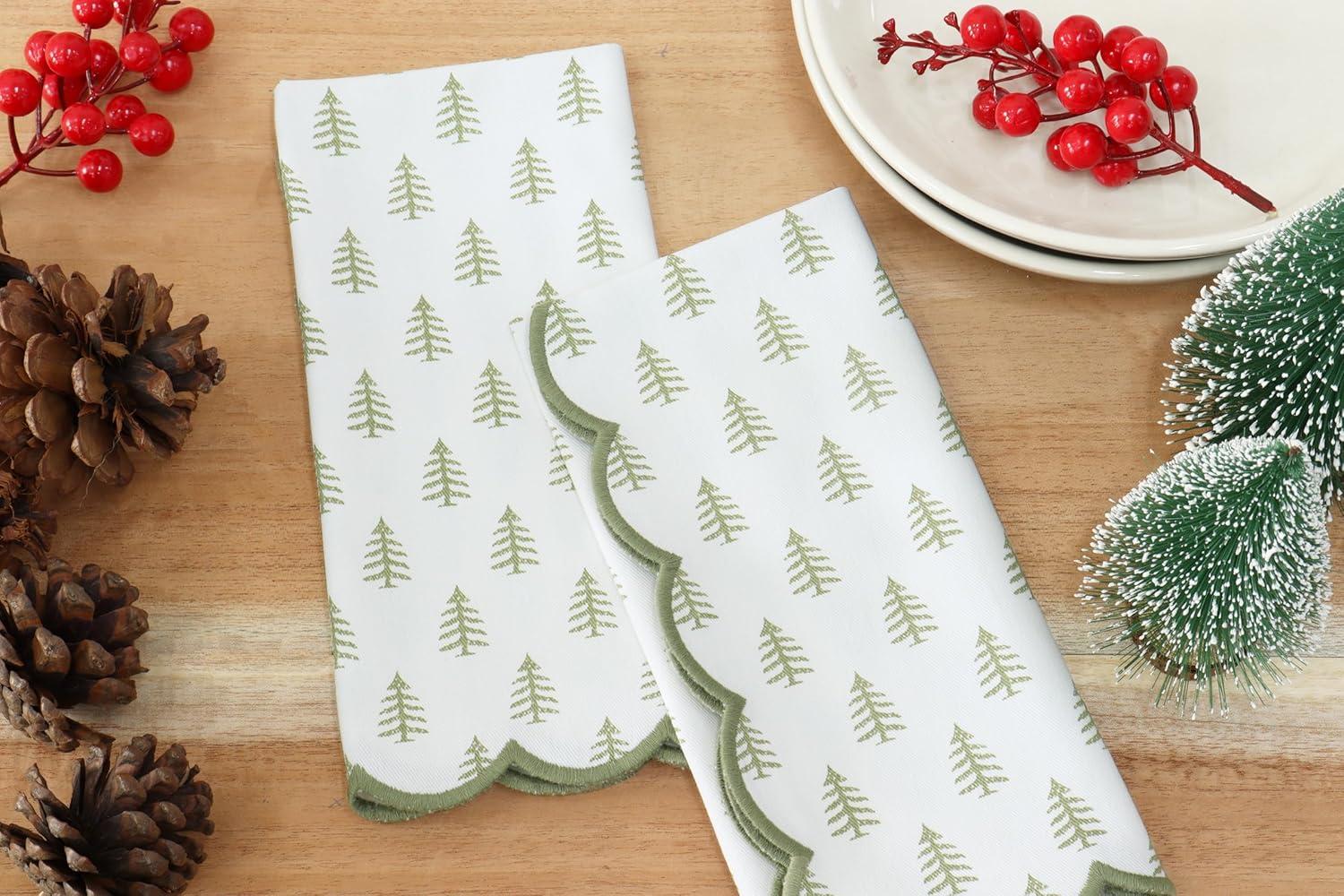 PurpleEssences Scalloped Embroidery Cloth Napkins Table Decor Fall Thanksgiving 100% Cotton Set of 4-18 x 18 inch – Aurelia Edges – Rust(Christmas Tree)