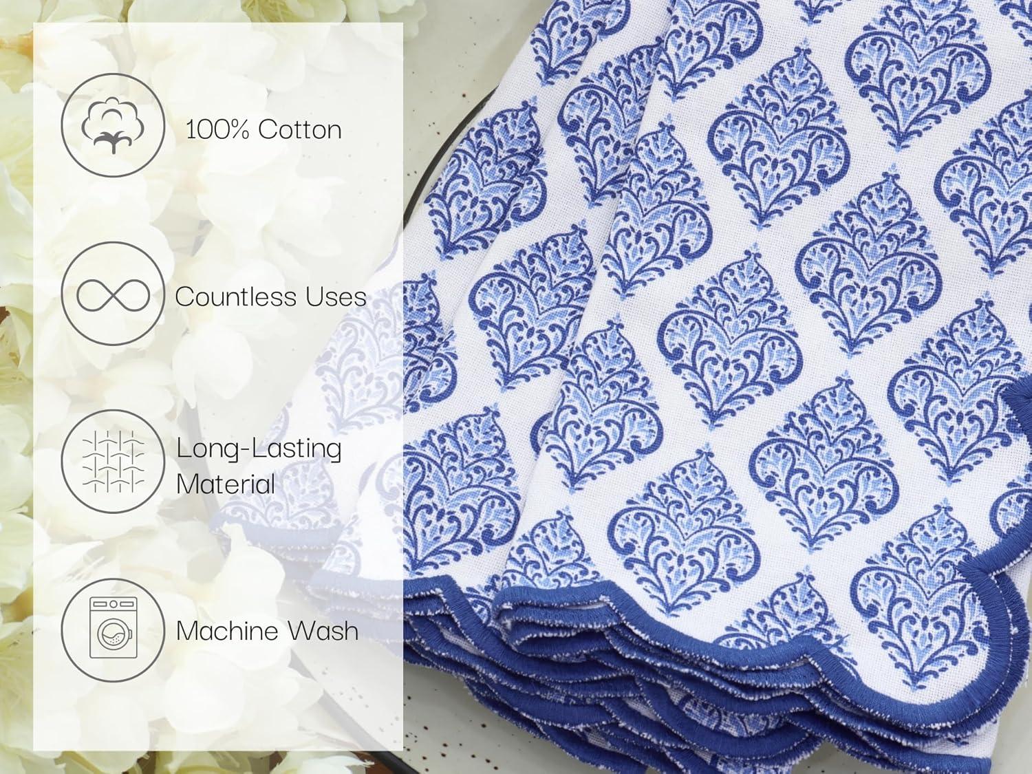• Get more for your money with our exclusive bundle deals on PurpleEssences Scalloped Embroidery Cloth Napkins Table Decor Fall Thanksgiving 100% Cotton Set of 4-18 x 18 inch - Aurelia Edges - Rust(White(edges- Light Blue)) and accessories.
