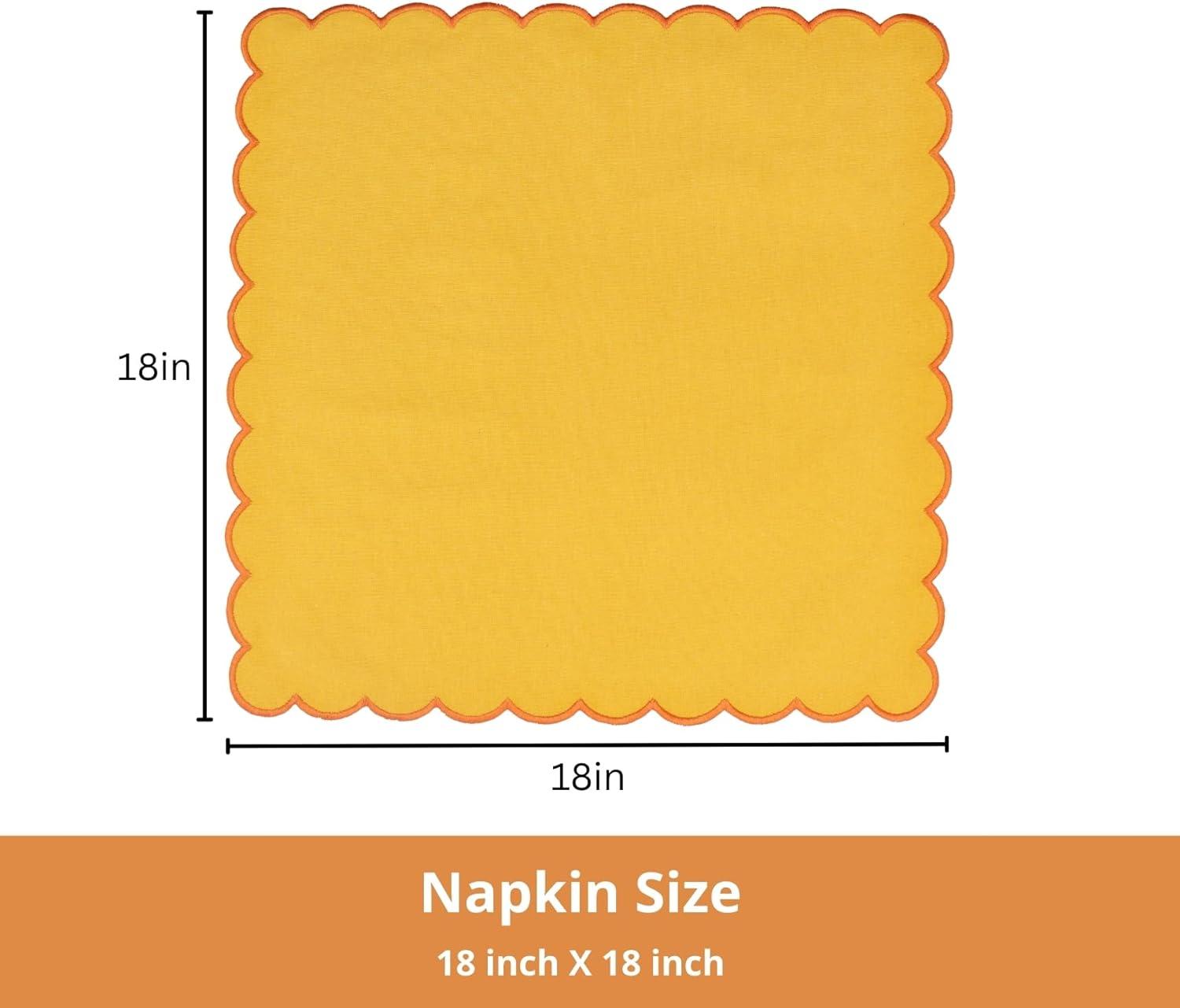 • PurpleEssences Scalloped Embroidery Cloth Napkins Table Decor Fall Thanksgiving 100% Cotton Set of 4-18 x 18 inch – Aurelia Edges – Rust(Orange(edges- Golden Yellow))