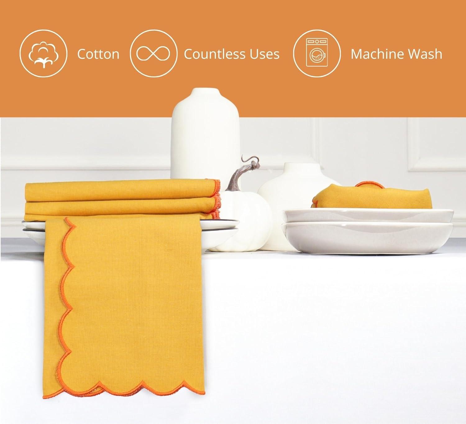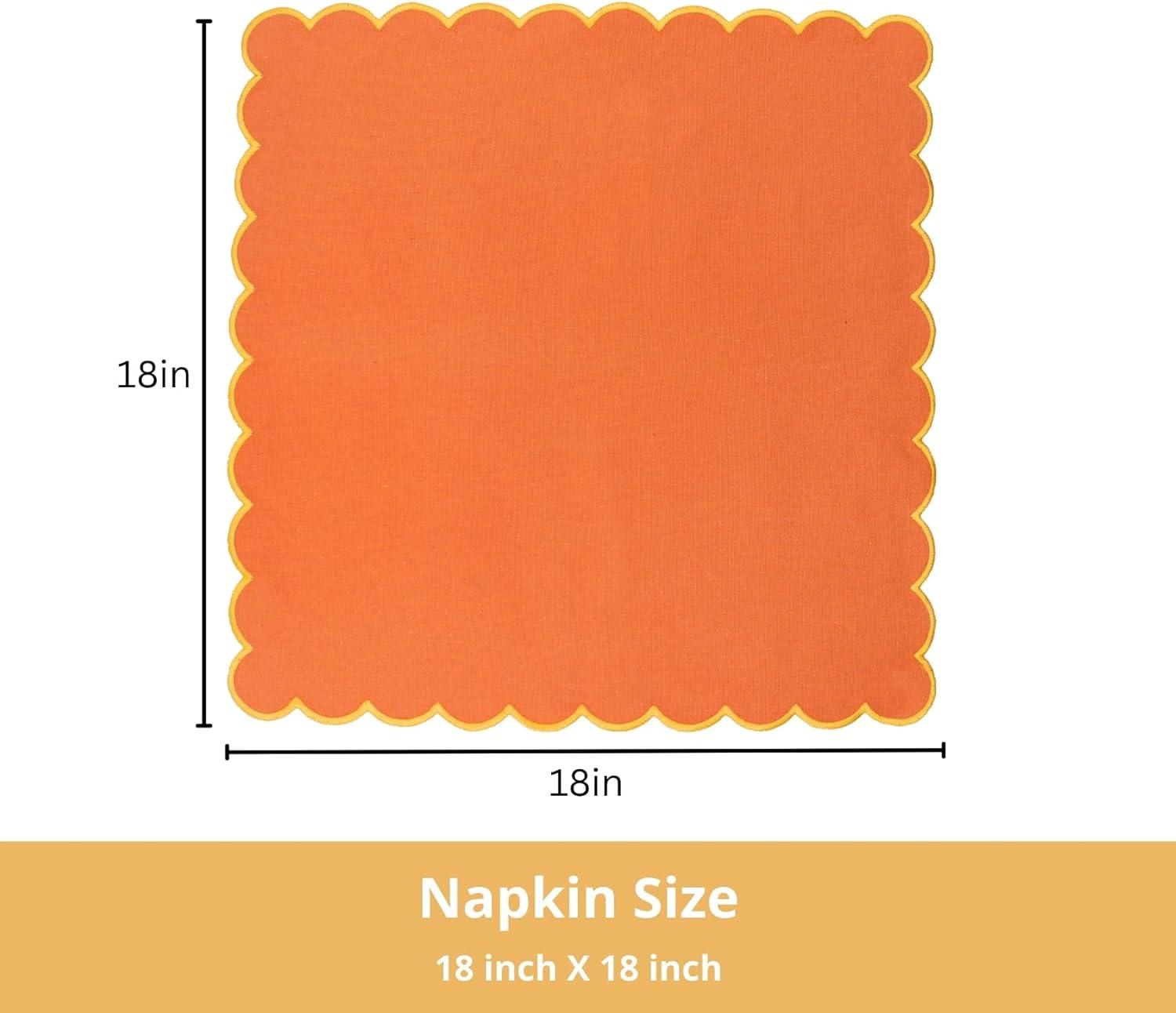 PurpleEssences Scalloped Embroidery Cloth Napkins Table Decor Fall Thanksgiving 100% Cotton Set of 4-18 x 18 inch – Aurelia Edges – Rust(Orange(edges- Golden Yellow))