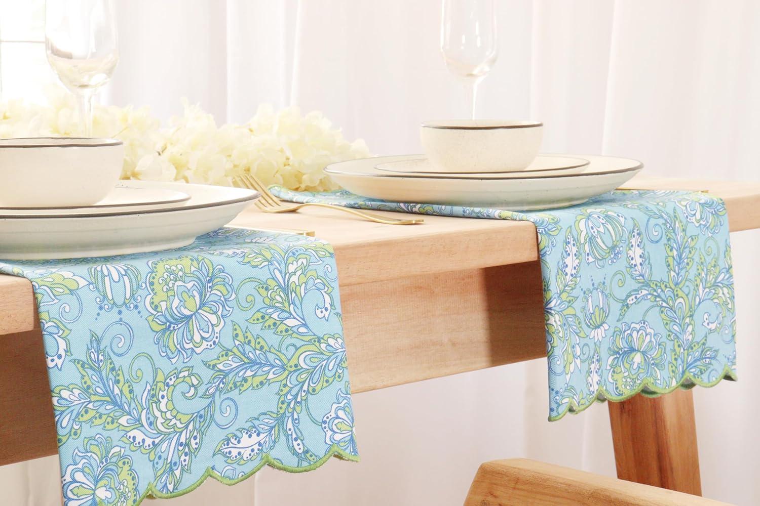 • PurpleEssences Scalloped Embroidery Cloth Napkins Table Decor Fall Thanksgiving 100% Cotton Set of 4-18 x 18 inch – Aurelia Edges – Rust(Floral Paisley Edges – Blue)