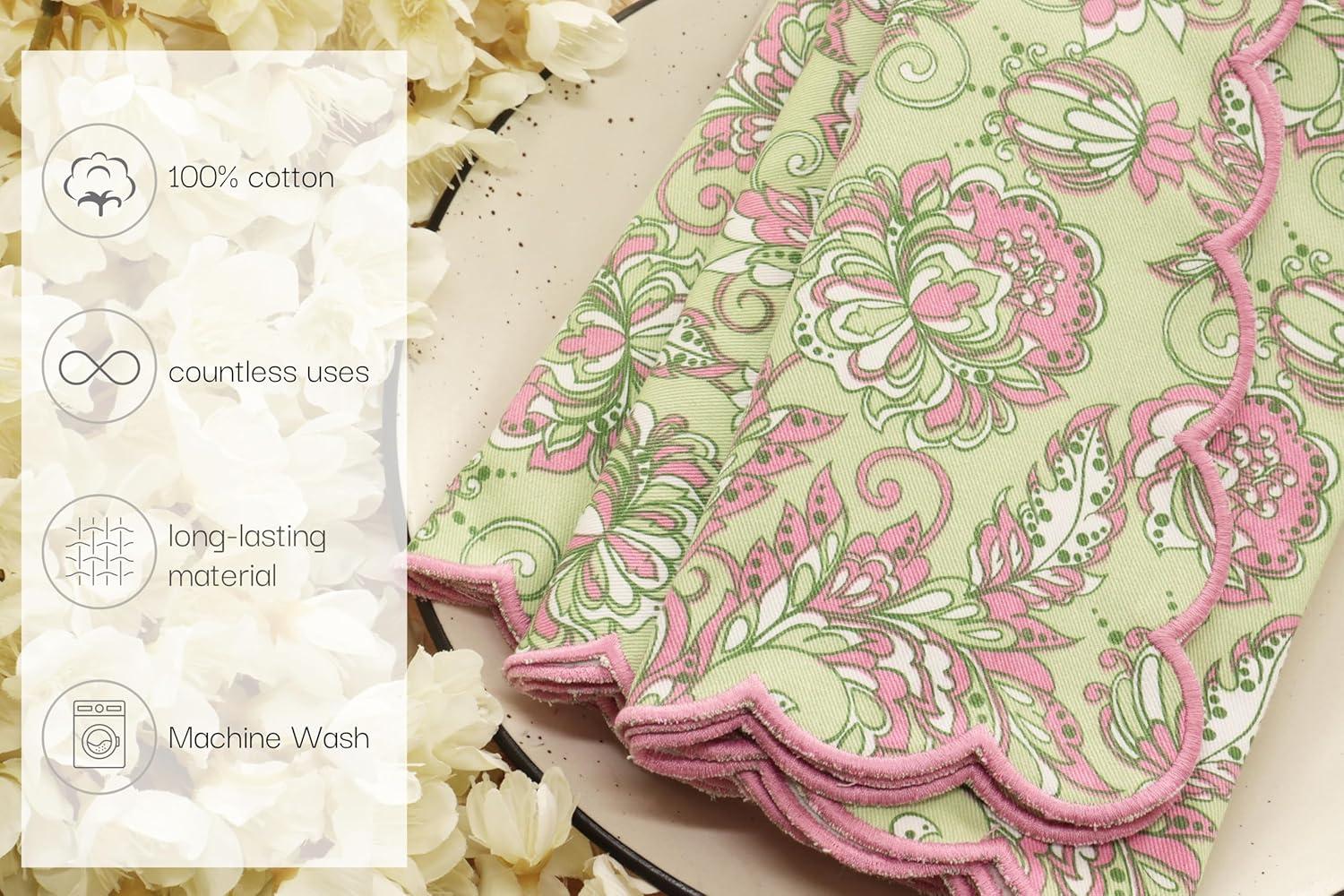 PurpleEssences Scalloped Embroidery Cloth Napkins Table Decor Fall Thanksgiving 100% Cotton Set of 4-18 x 18 inch – Aurelia Edges – Rust(Sage Green Edges – Blush Pink)