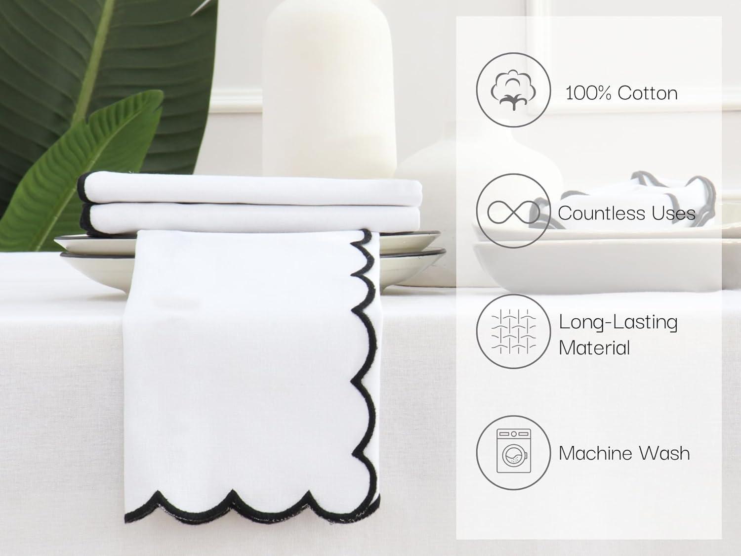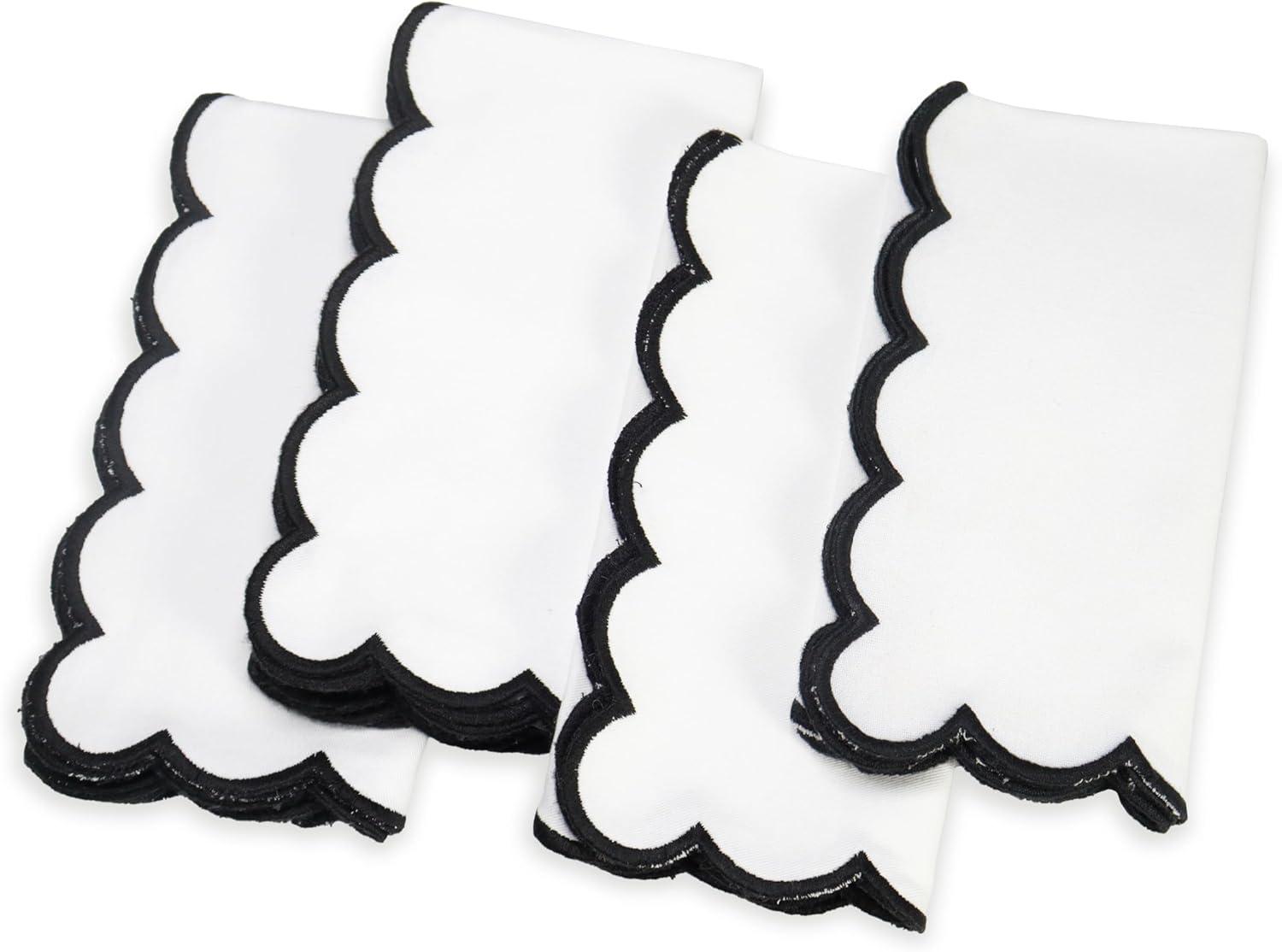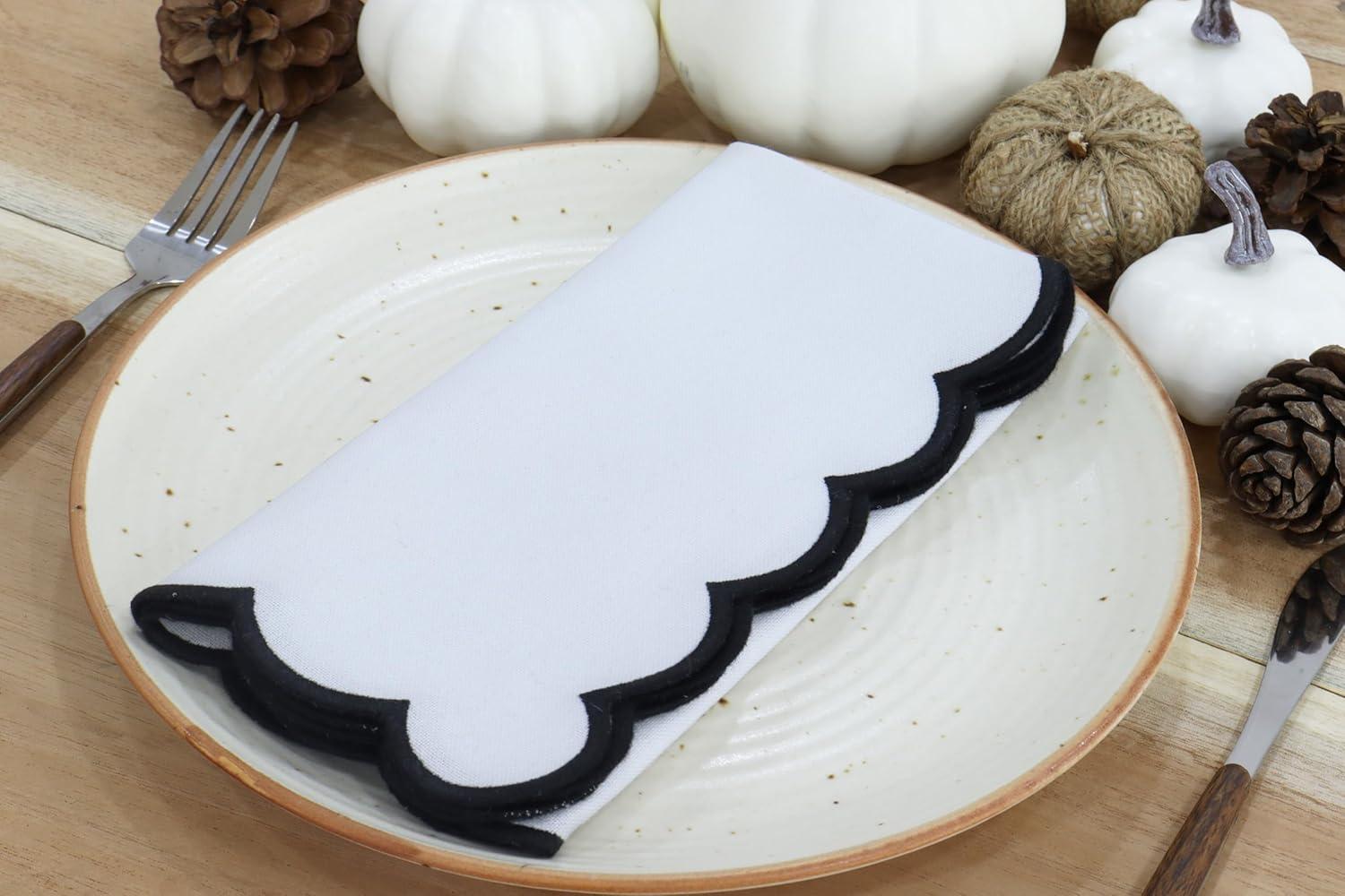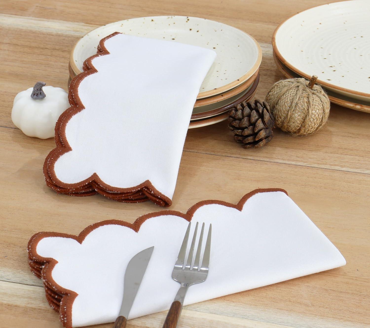PurpleEssences Scalloped Embroidery Cloth Napkins Table Decor Fall Thanksgiving 100% Cotton Set of 4-18 x 18 inch – Aurelia Edges – Rust(White(edges- Black))