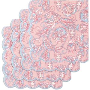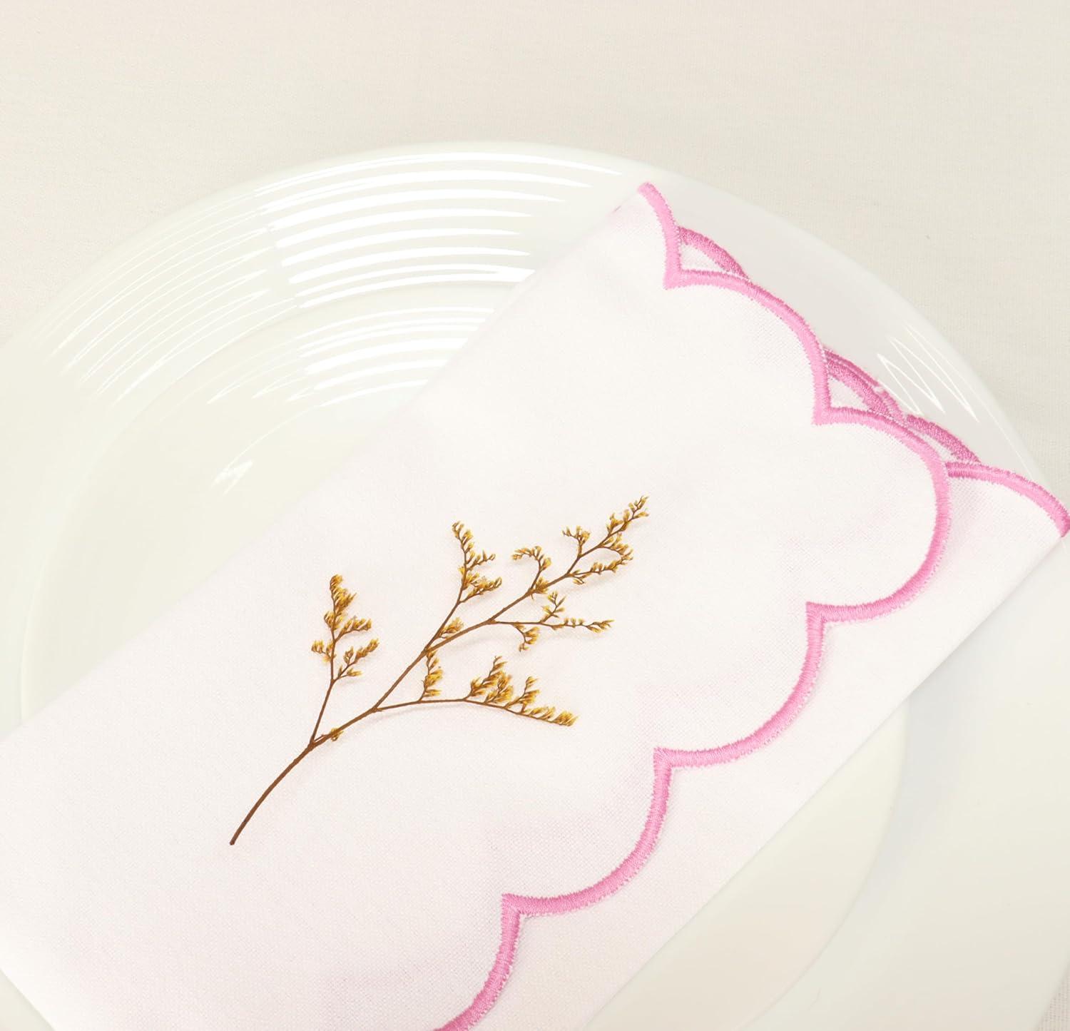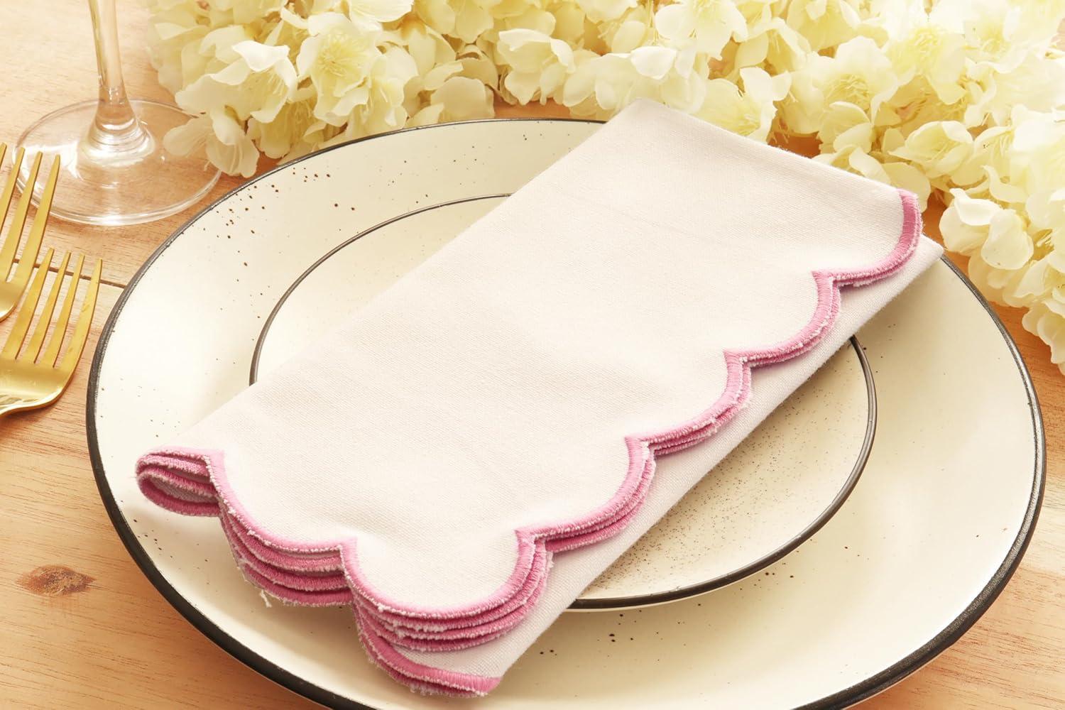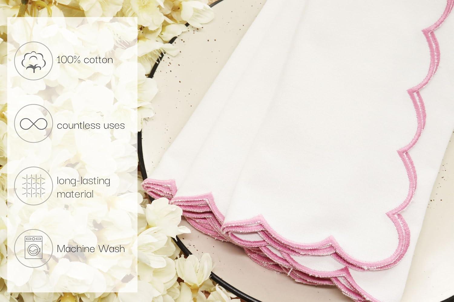 PurpleEssences Scalloped Embroidery Cloth Napkins Table Decor Fall Thanksgiving 100% Cotton Set of 4-18 x 18 inch – Aurelia Edges – Rust(White(edges- Blush Pink))